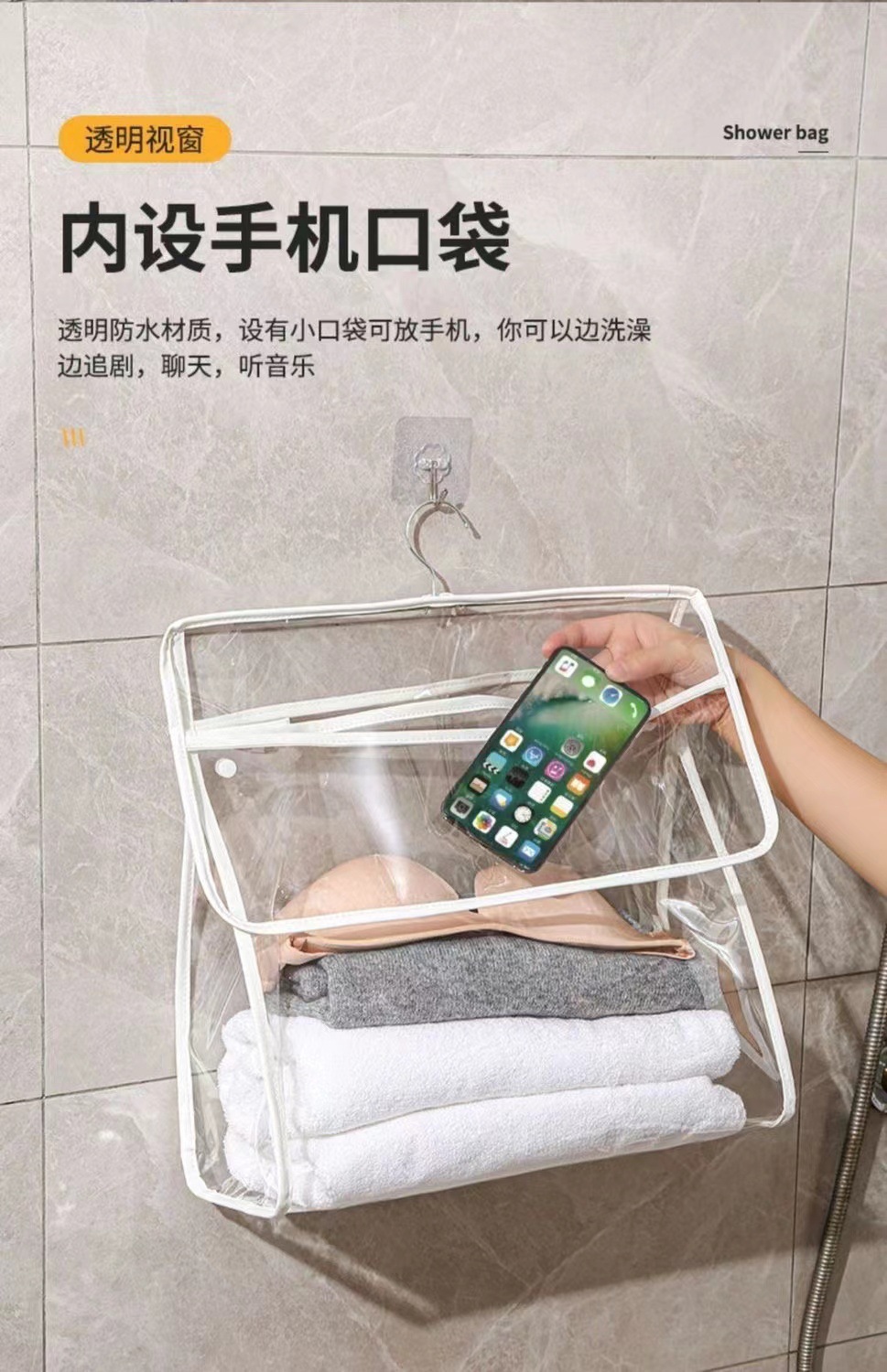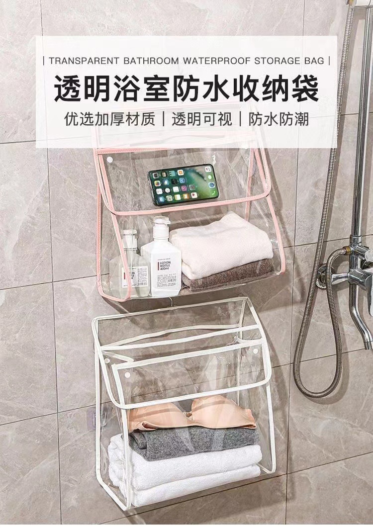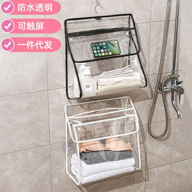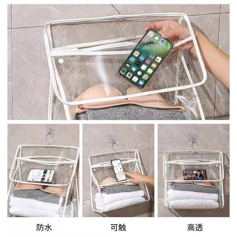 투명한 벽걸이형 욕실 수납 가방, 대용량 수납 가방, 기숙사용 터치스크린 방수 샤워 걸이형 가방, 휴대용스토어 가기