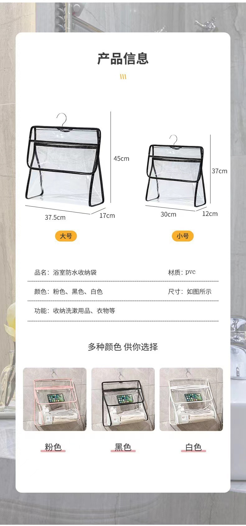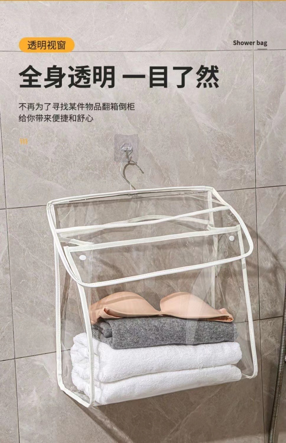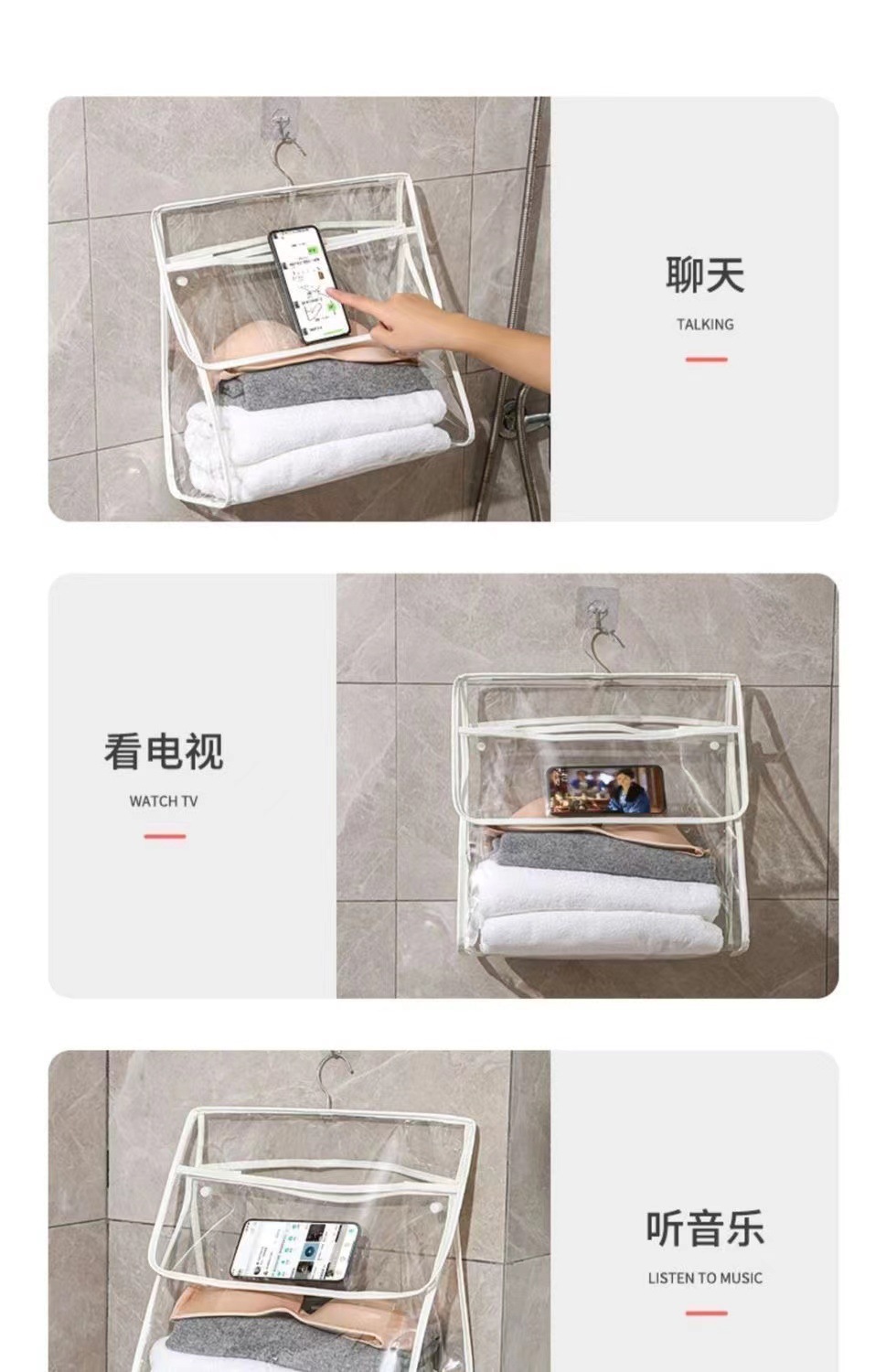투명한 벽걸이형 욕실 수납 가방, 대용량 수납 가방, 기숙사용 터치스크린 방수 샤워 걸이형 가방, 휴대용스토어 가기