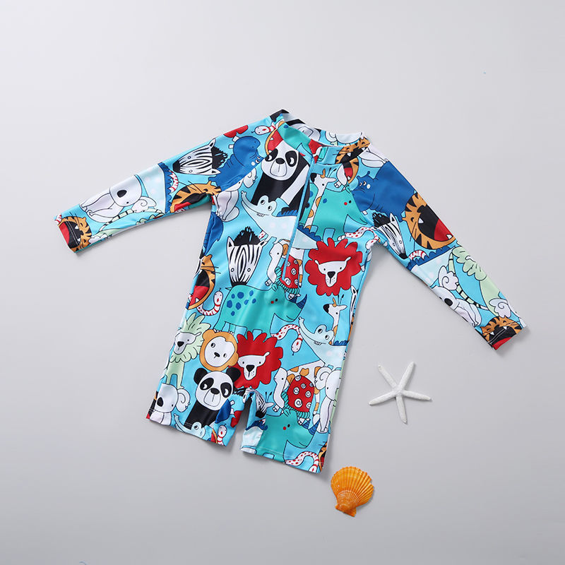 어린이 수영복 소년 원피스 2025 새로운 태양 보호 아기 수영 trunks 소형, 중형 및 대형 어린이 소년 전문 속건성 수영복