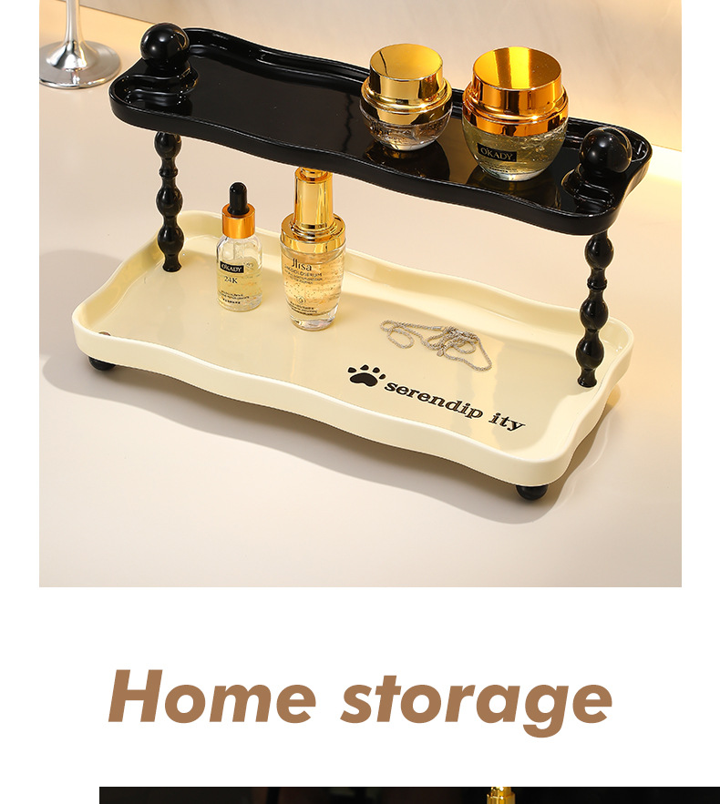 • 사다리꼴 수납선반 - 더블 레이어 [상단은 크림색 노란색, 하단은 검정색]