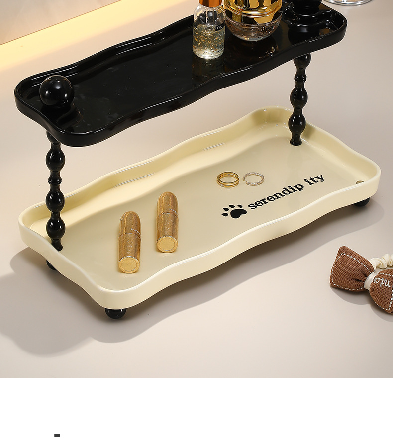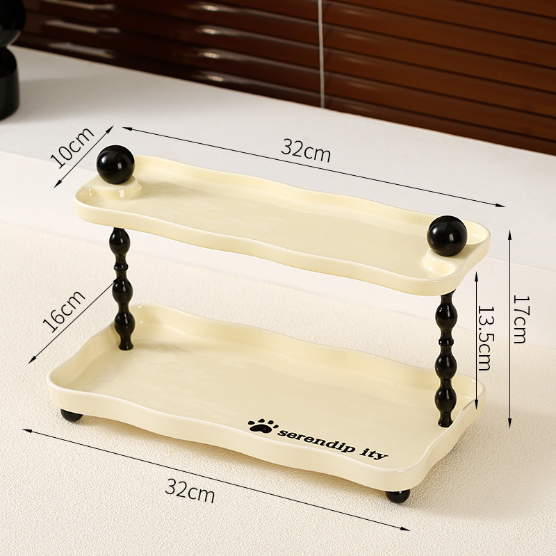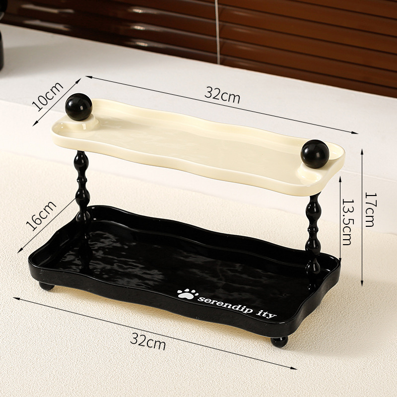 • 사다리꼴 구름수납선반 - 더블 레이어 [상단 검정색, 하단 크림색]