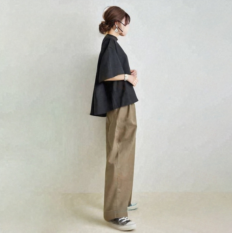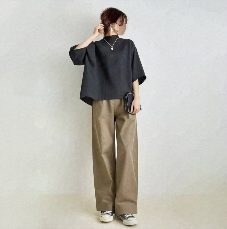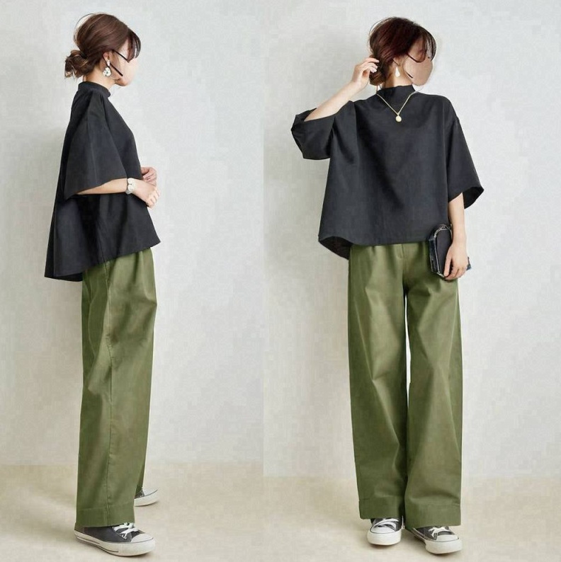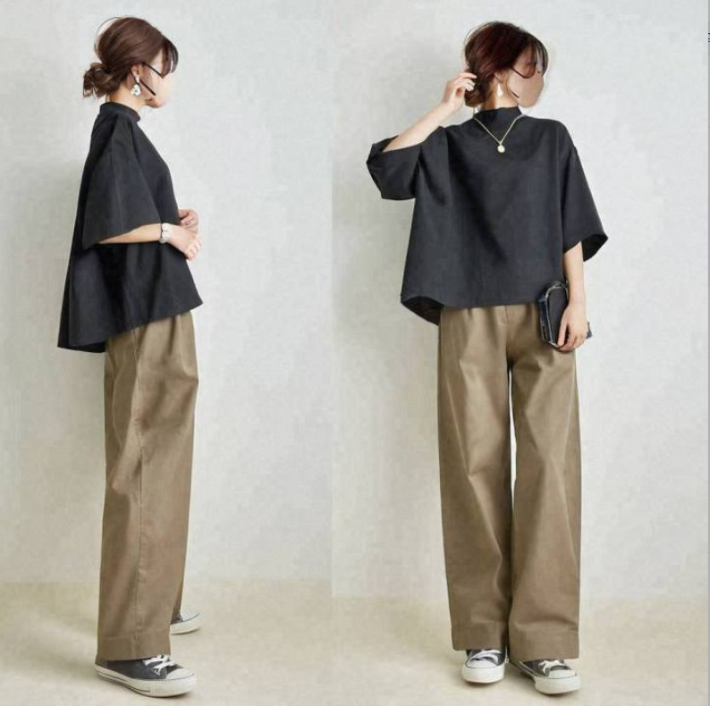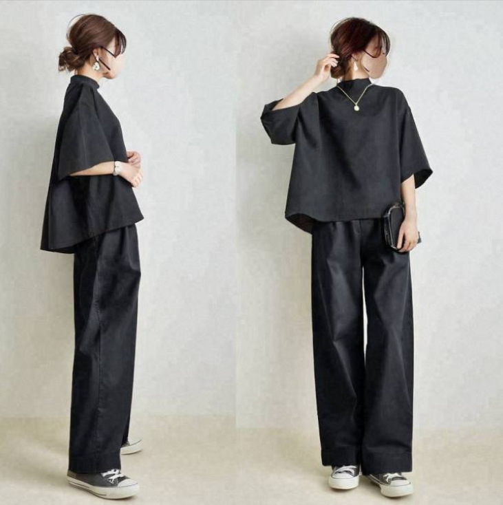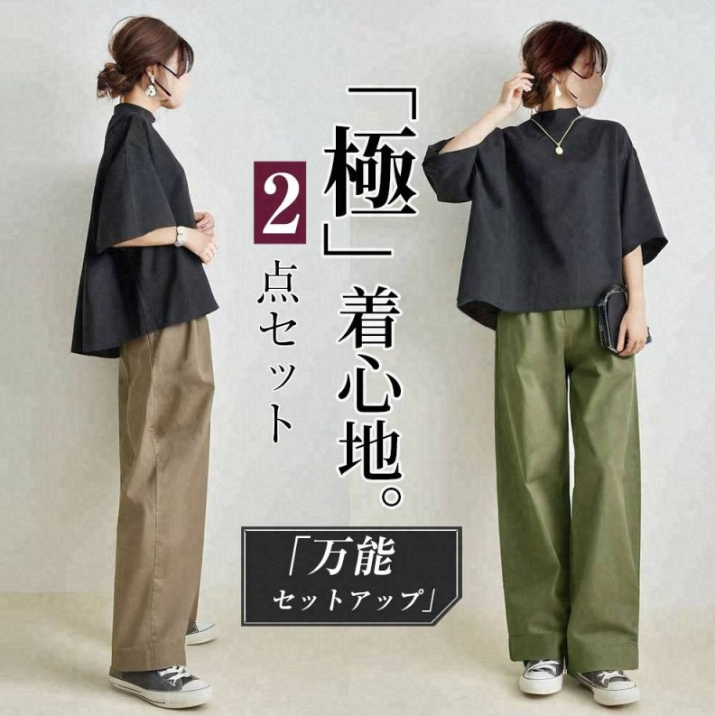 재고 있음 일본 신상 루즈한 미드슬리브 탑 + 루즈한 와이드 팬츠 투피스 세트스토어 가기