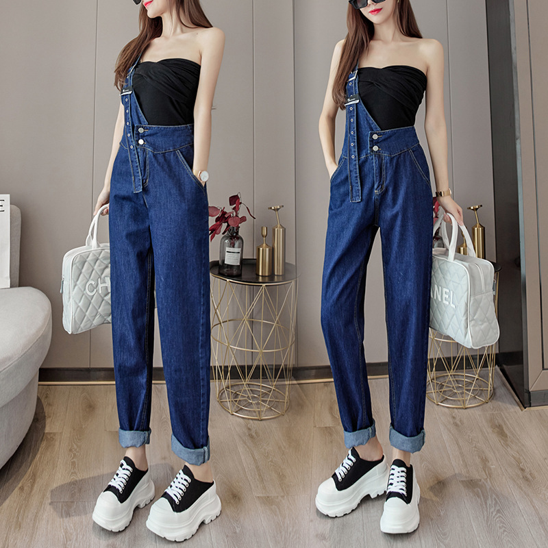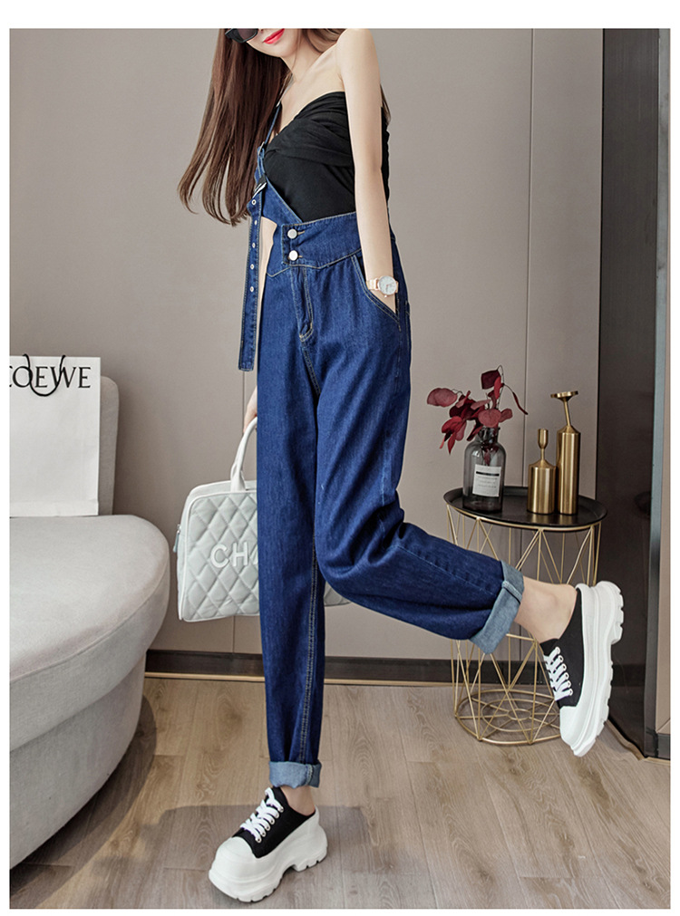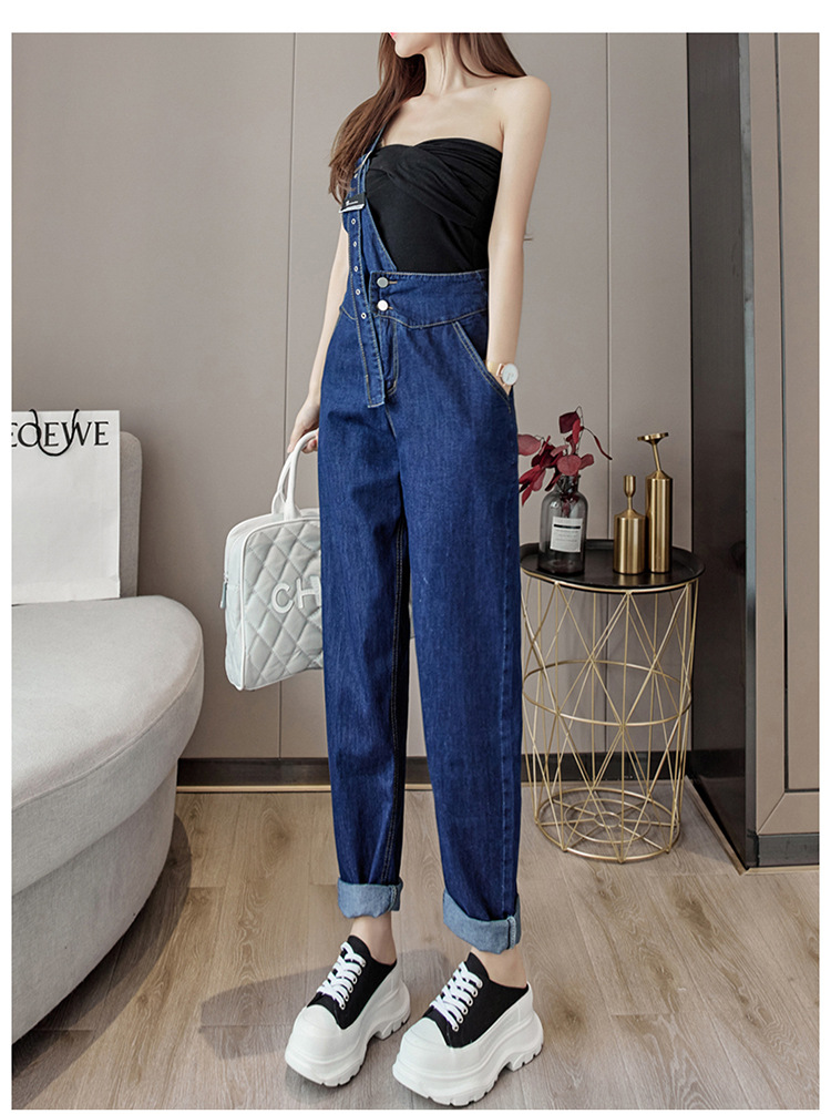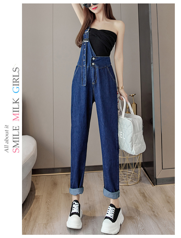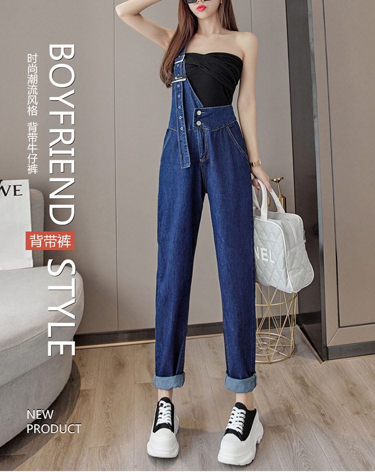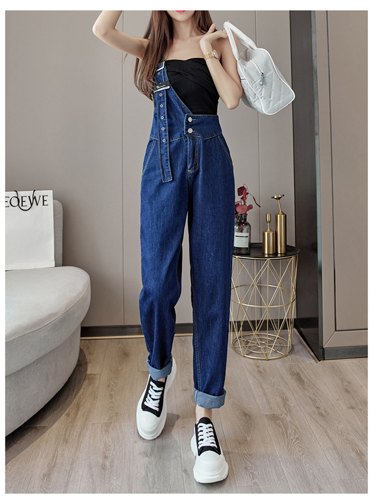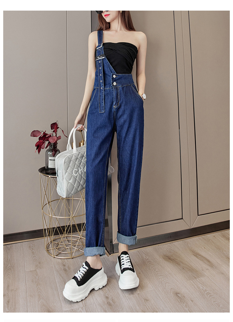 2025 봄과 가을 새로운 패션 캐주얼 하이 웨이스트 슬리밍 원 숄더 2 버튼 여성용 데님 작업복스토어 가기