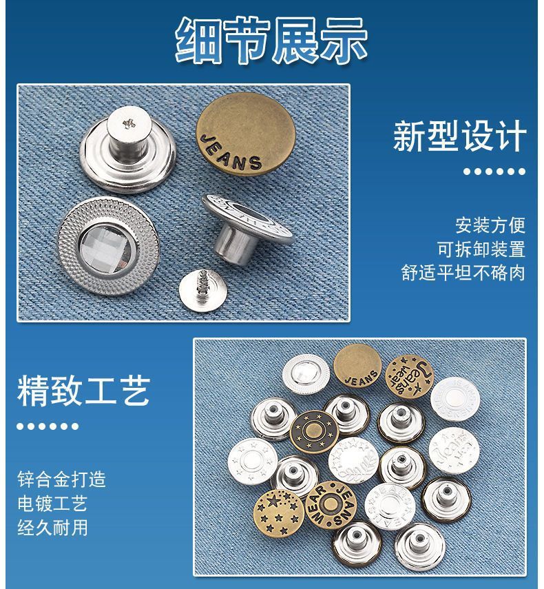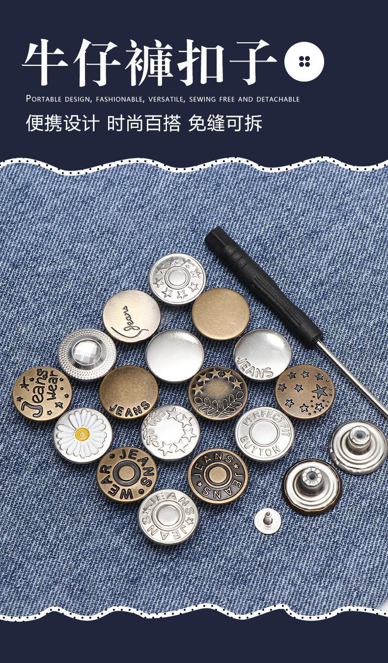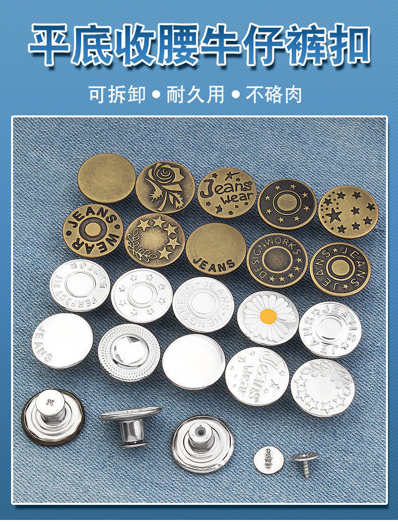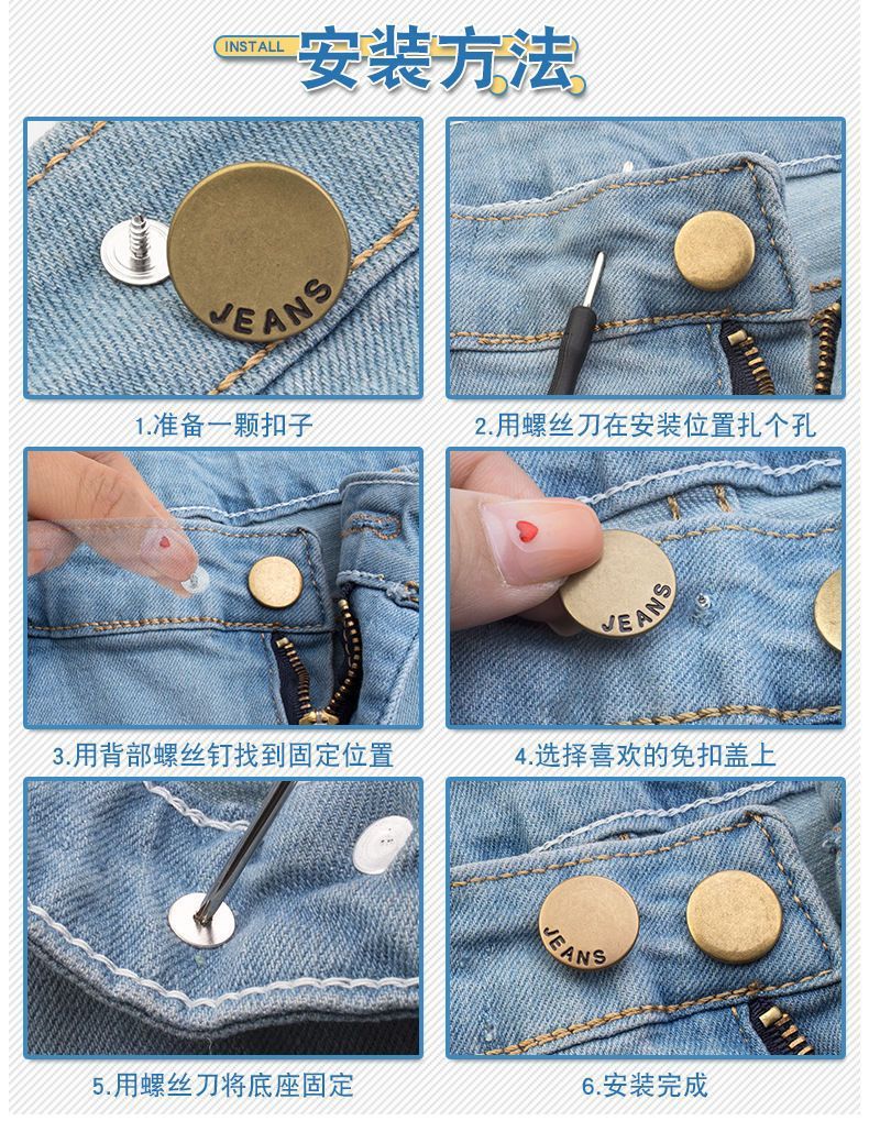 허리 버튼, 못이 없는 데님 버튼, 탈부착 가능한 바지 허리 사이즈 조절 가능, 청바지 버튼, 허리 조절 가능 버튼