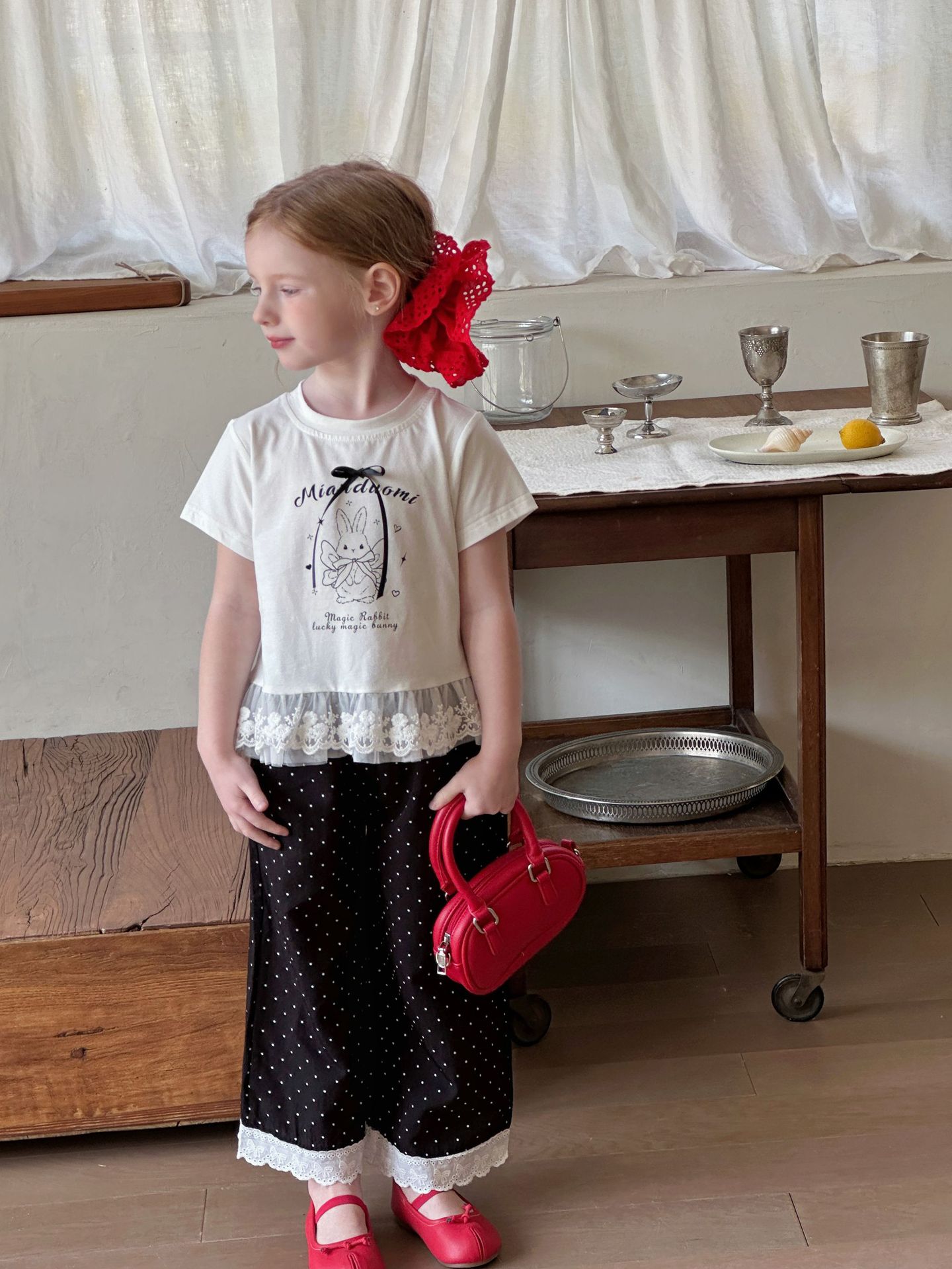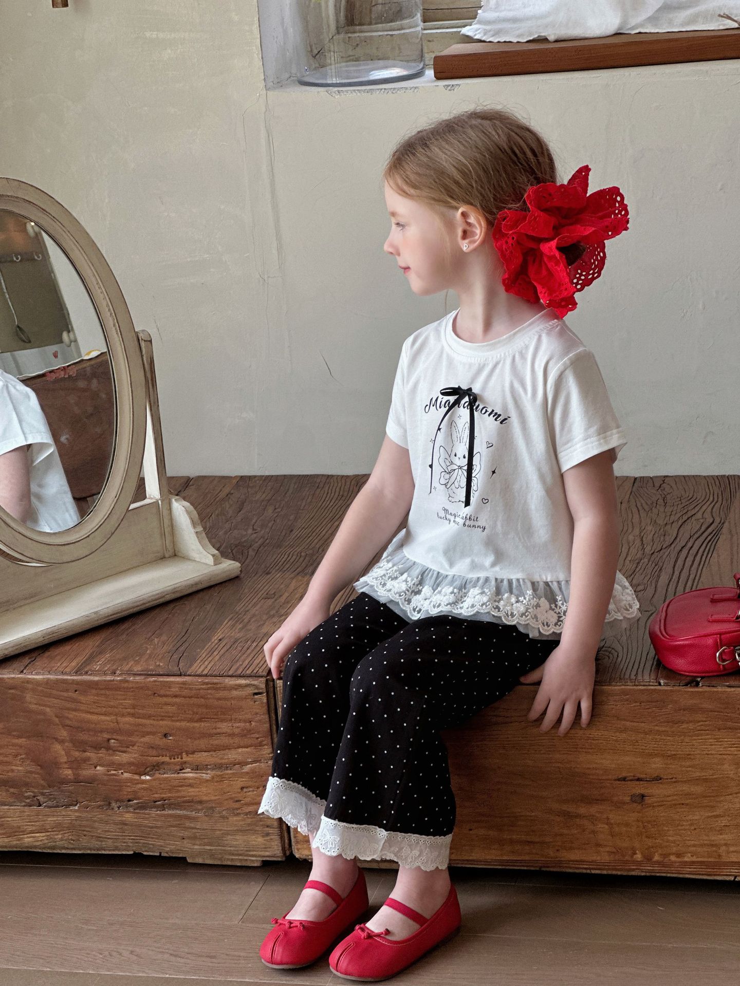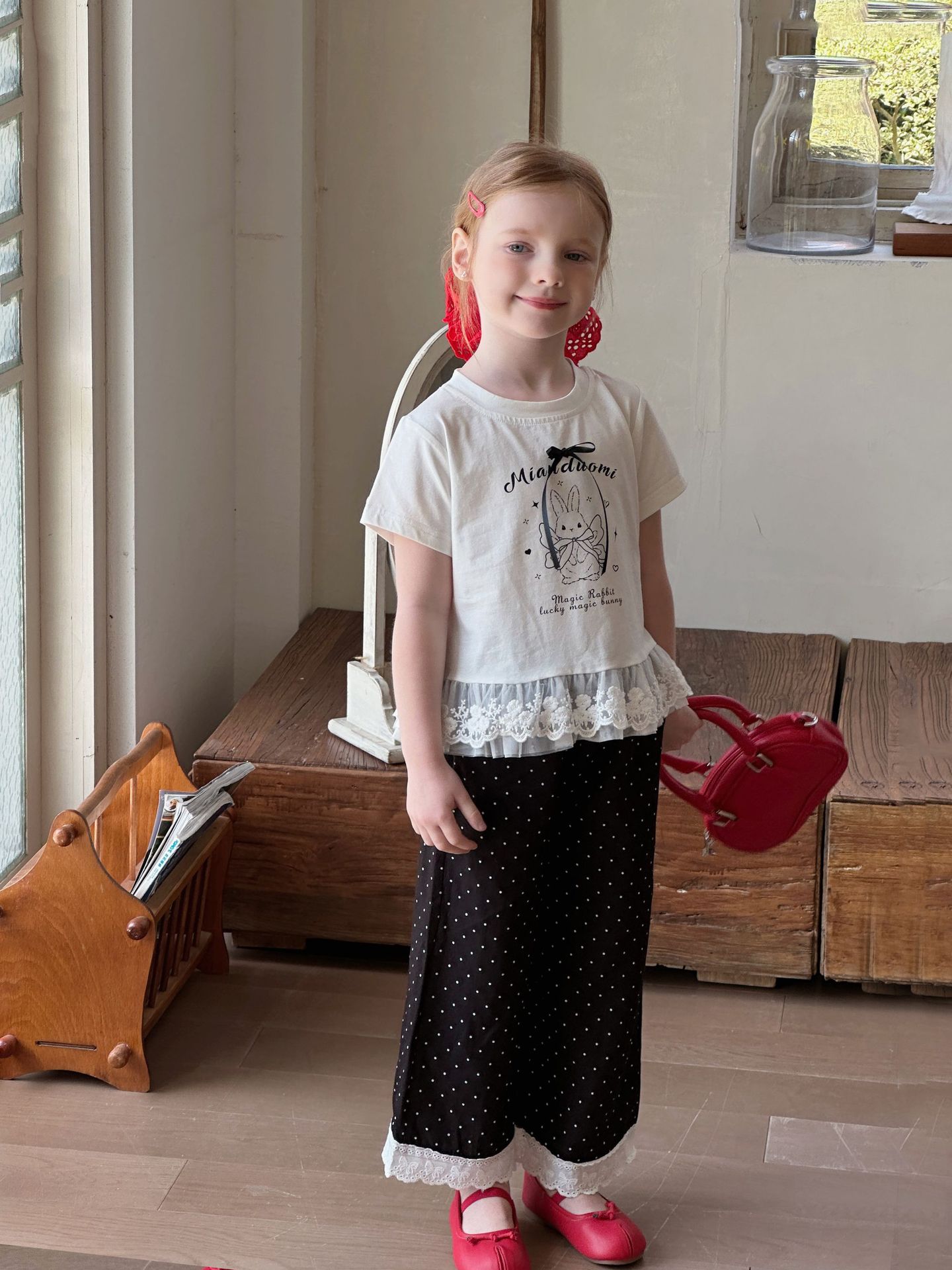 소녀의 인쇄 티셔츠 2025 여름 어린이 만화 토끼 짧은 소매 아기의 귀여운 레이스 바느질 탑