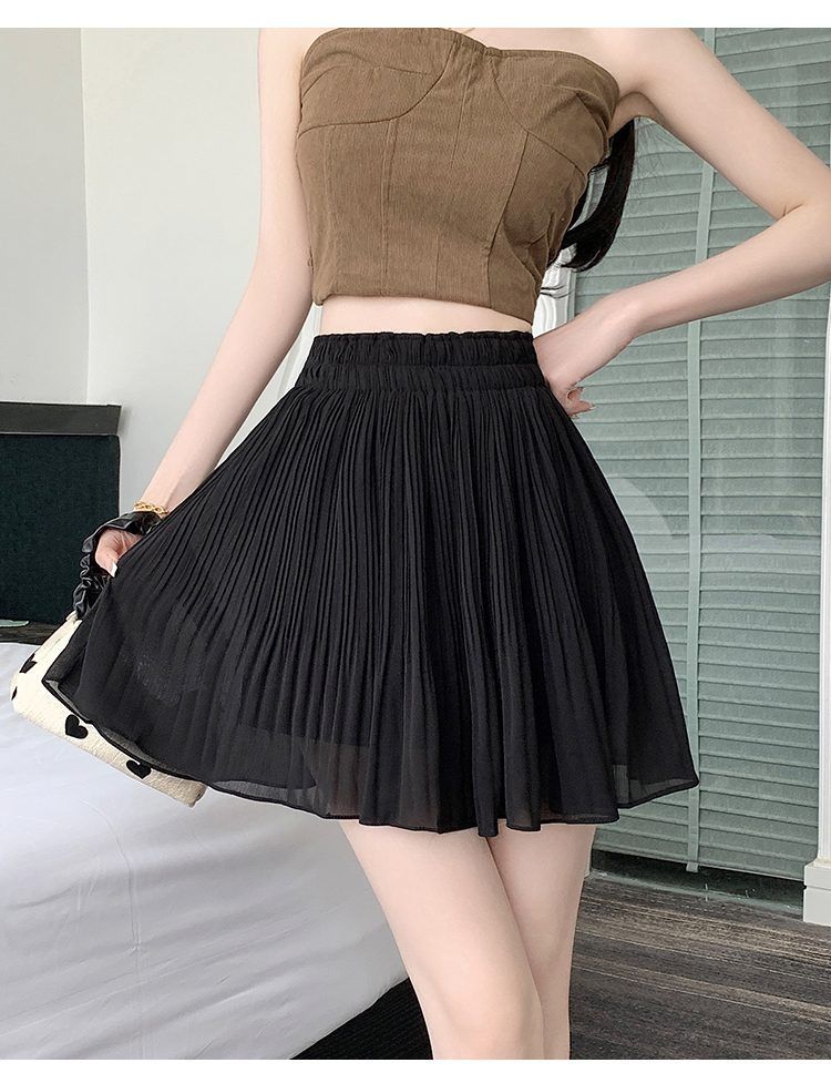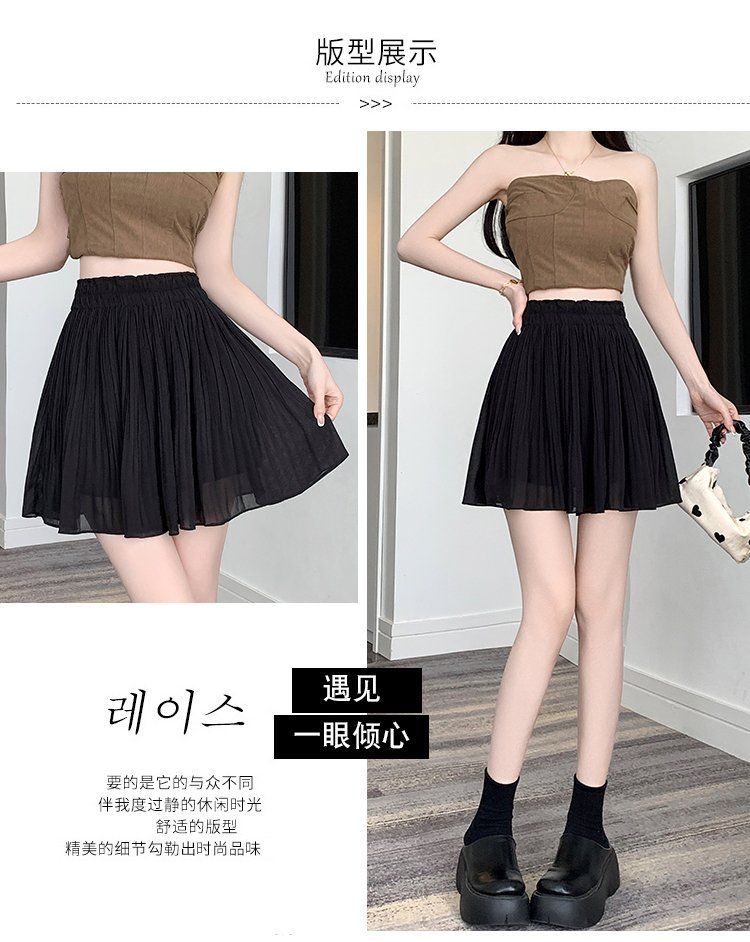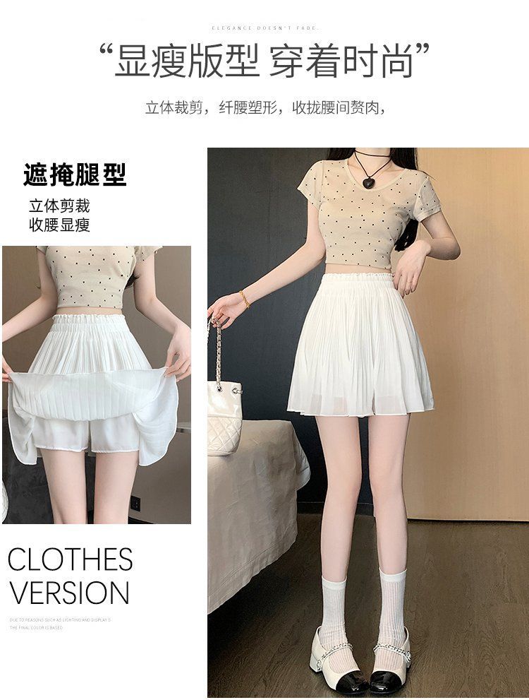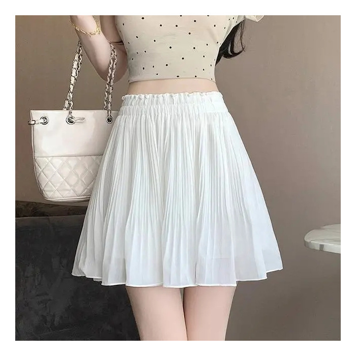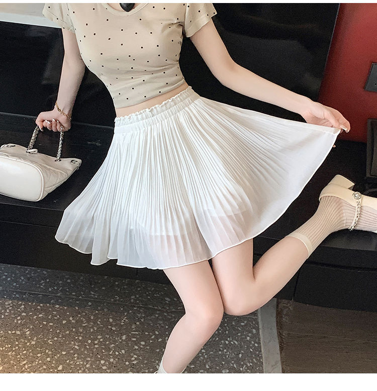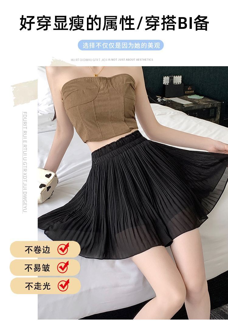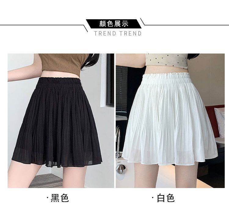 여성을 위한 크로스보더 쉬폰 플리츠 스커트, 노출 방지, 2025 여름 루즈, 슬리밍, 연령 감소, 다용도 캐주얼 스커트스토어 가기