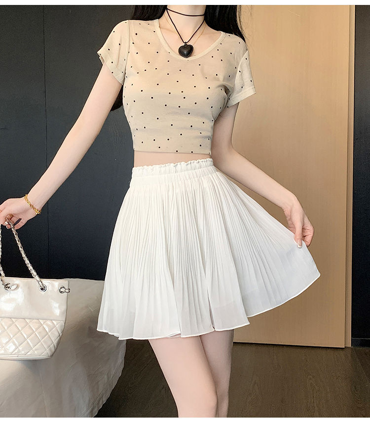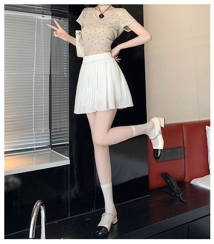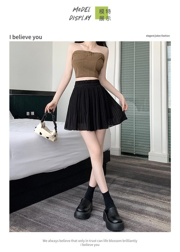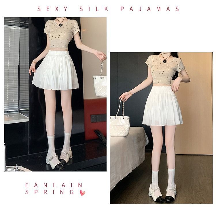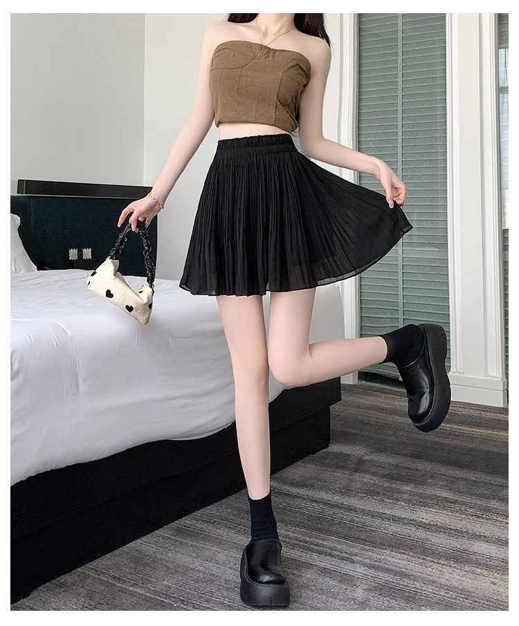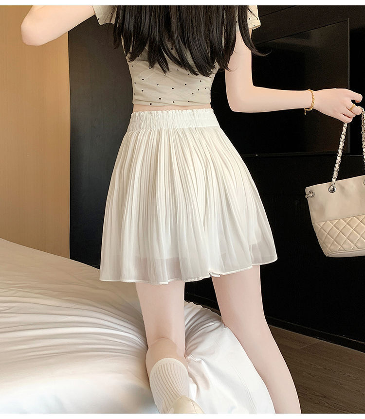 여성을 위한 크로스보더 쉬폰 플리츠 스커트, 노출 방지, 2025 여름 루즈, 슬리밍, 연령 감소, 다용도 캐주얼 스커트스토어 가기