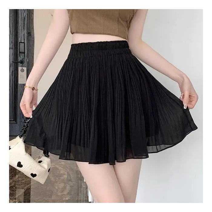 여성을 위한 크로스보더 쉬폰 플리츠 스커트, 노출 방지, 2025 여름 루즈, 슬리밍, 연령 감소, 다용도 캐주얼 스커트