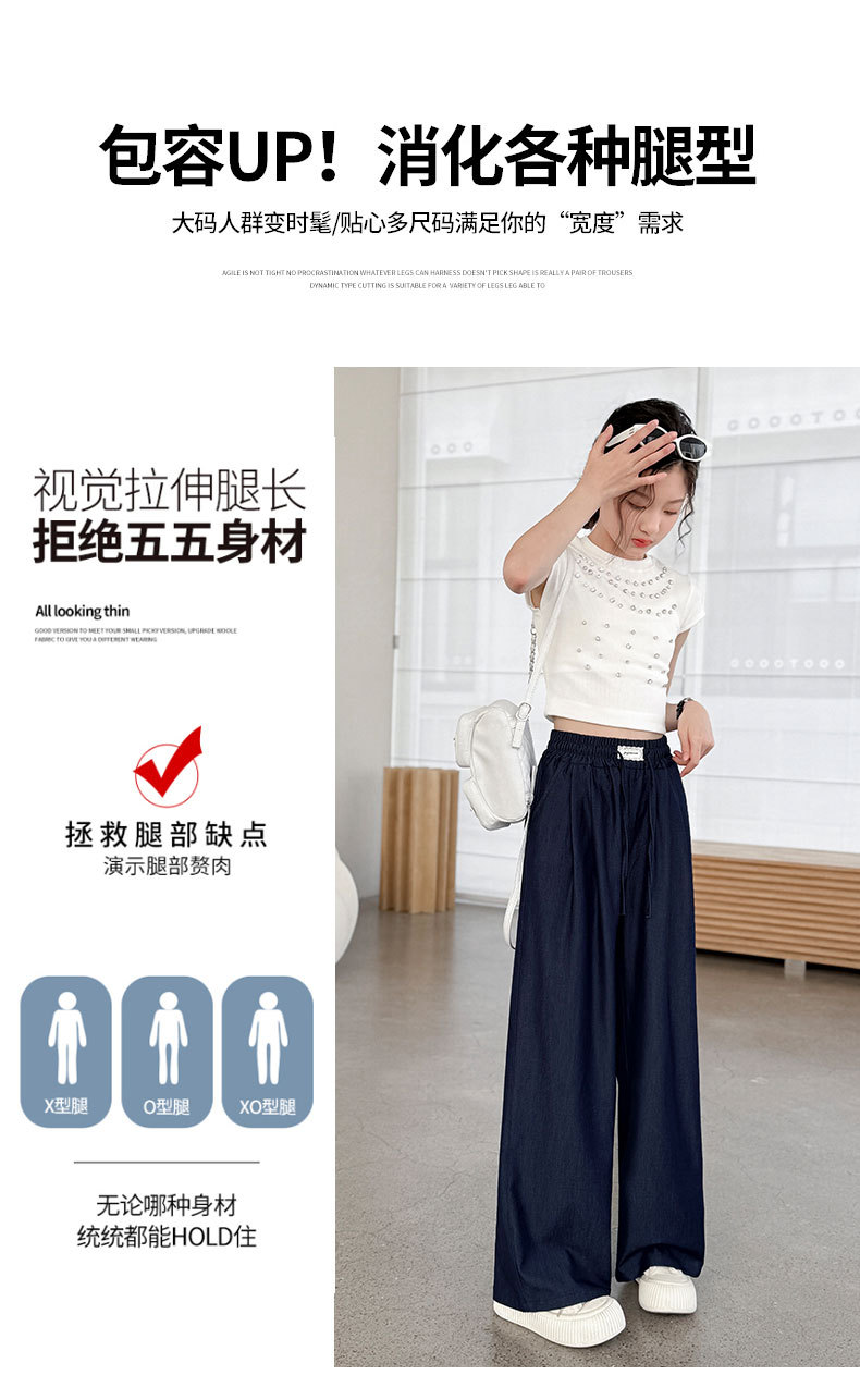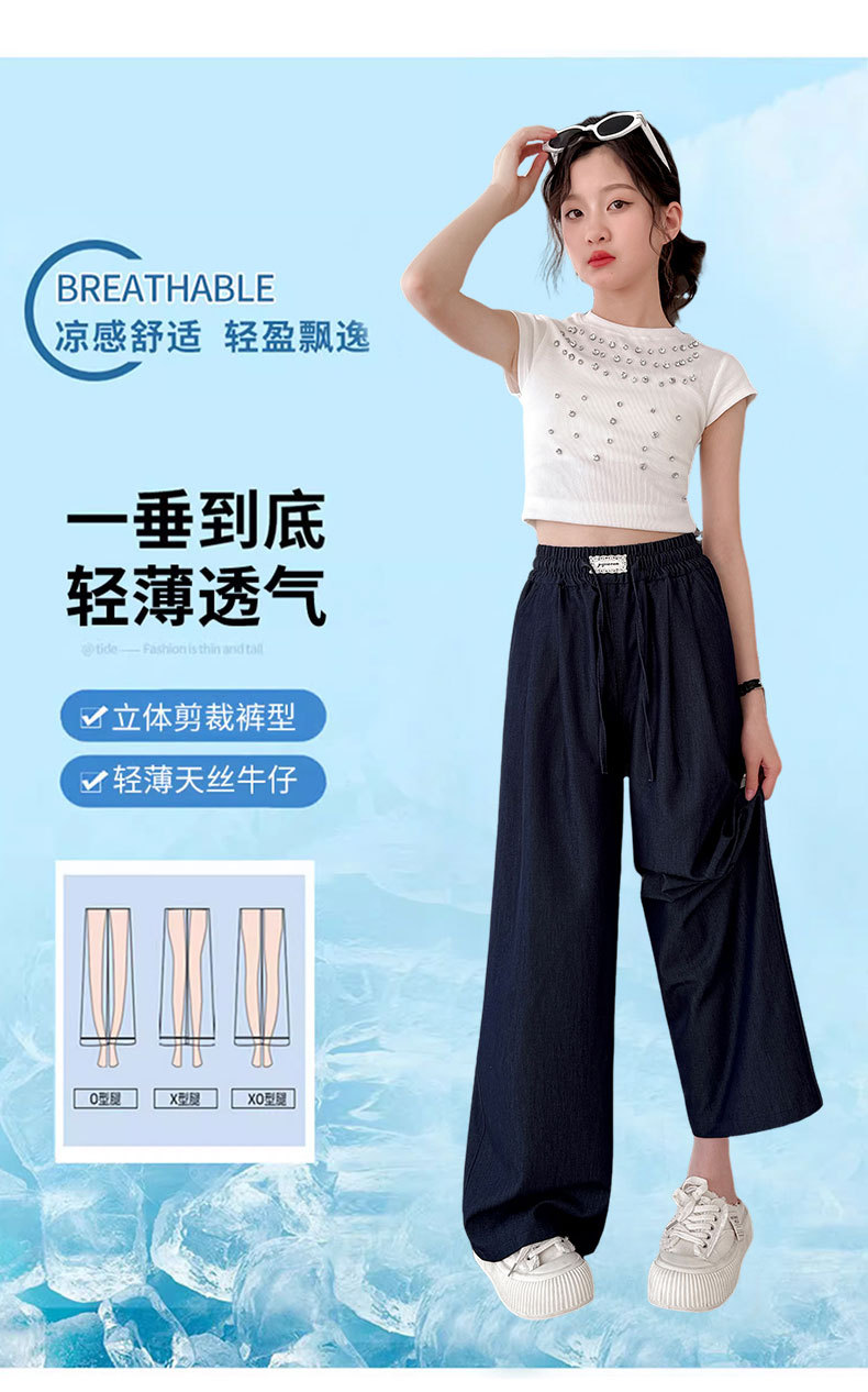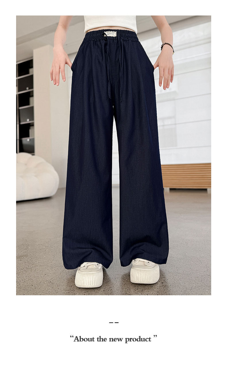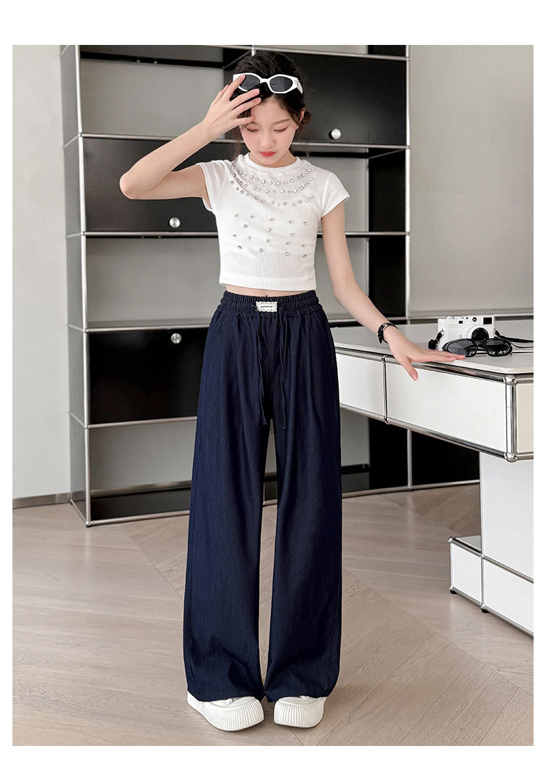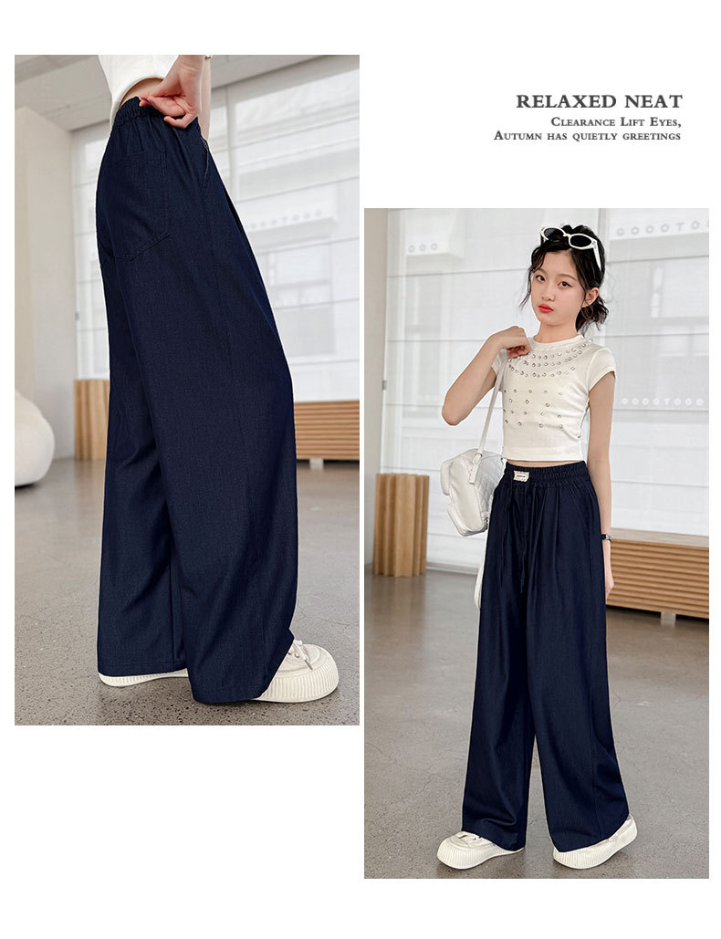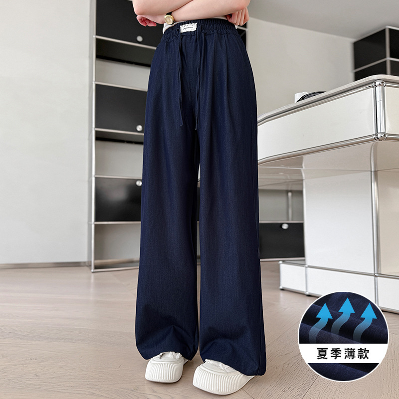 소녀 아이스 실크 청바지 여름 2025 새로운 소녀 다크 블루 캐주얼 바지 소녀 여름 안티 모기 바지스토어 가기