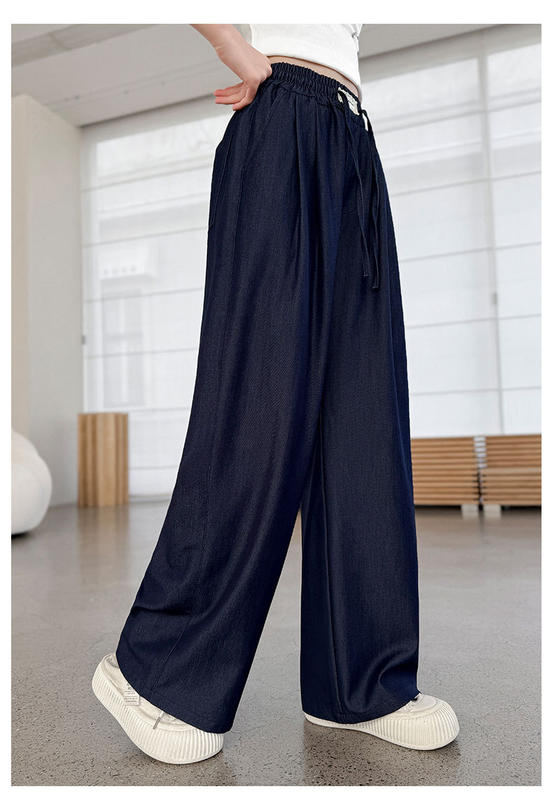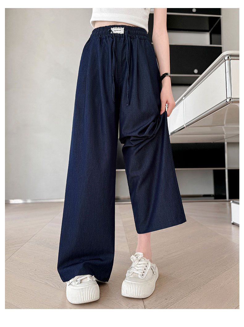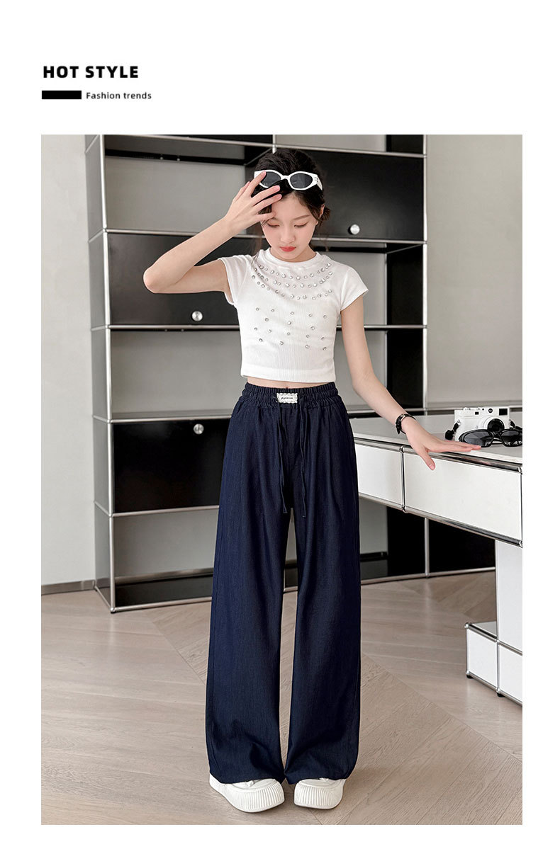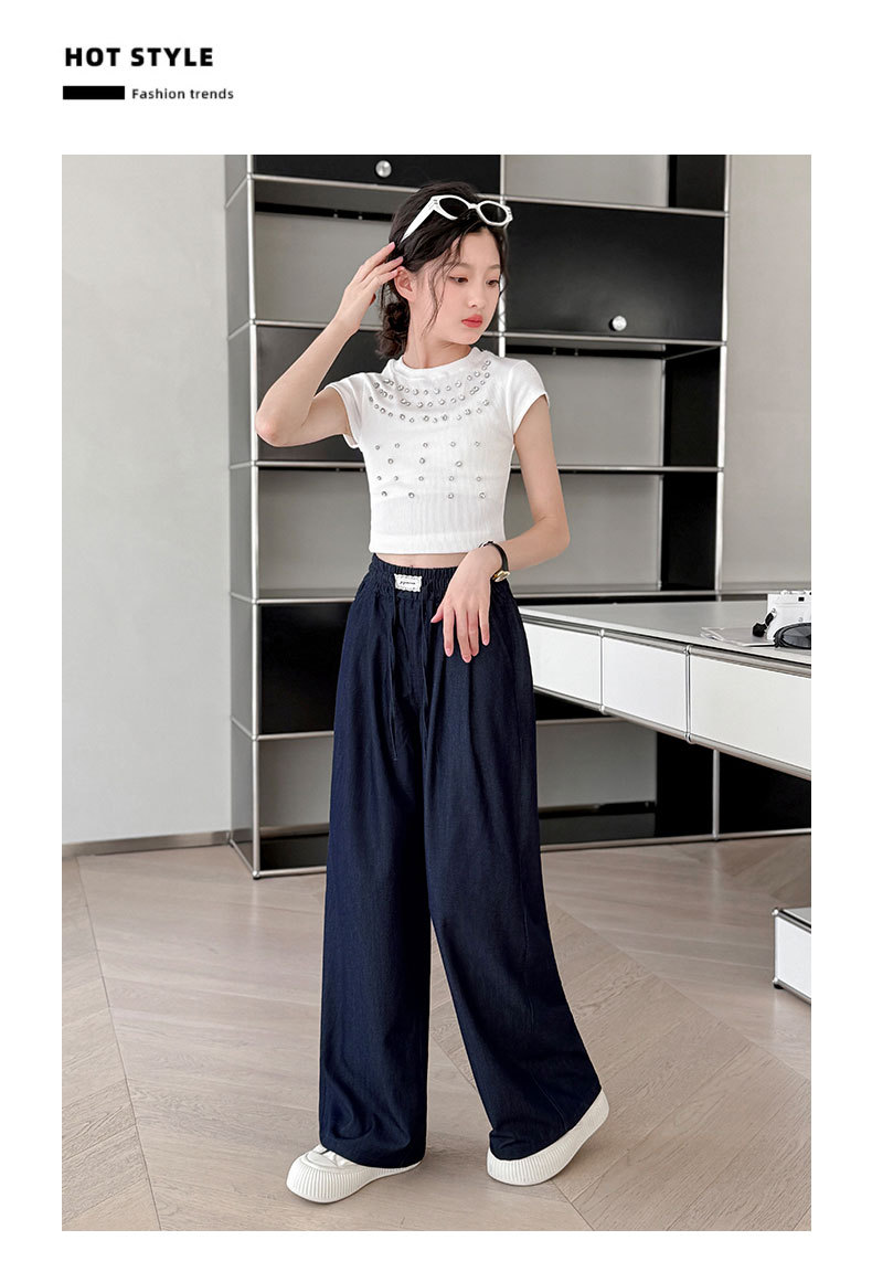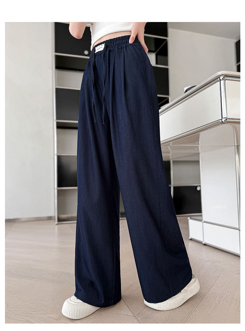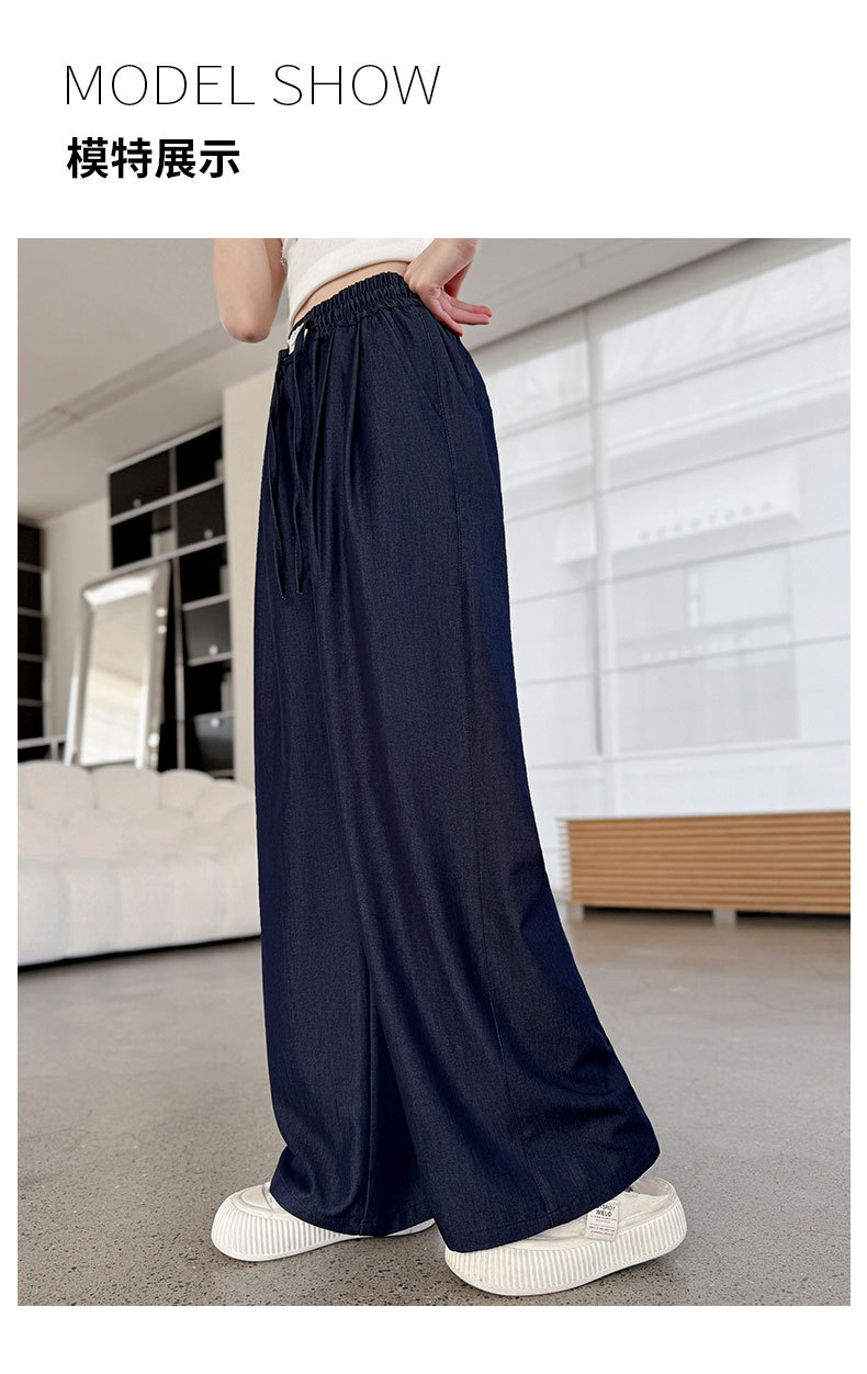 소녀 아이스 실크 청바지 여름 2025 새로운 소녀 다크 블루 캐주얼 바지 소녀 여름 안티 모기 바지스토어 가기