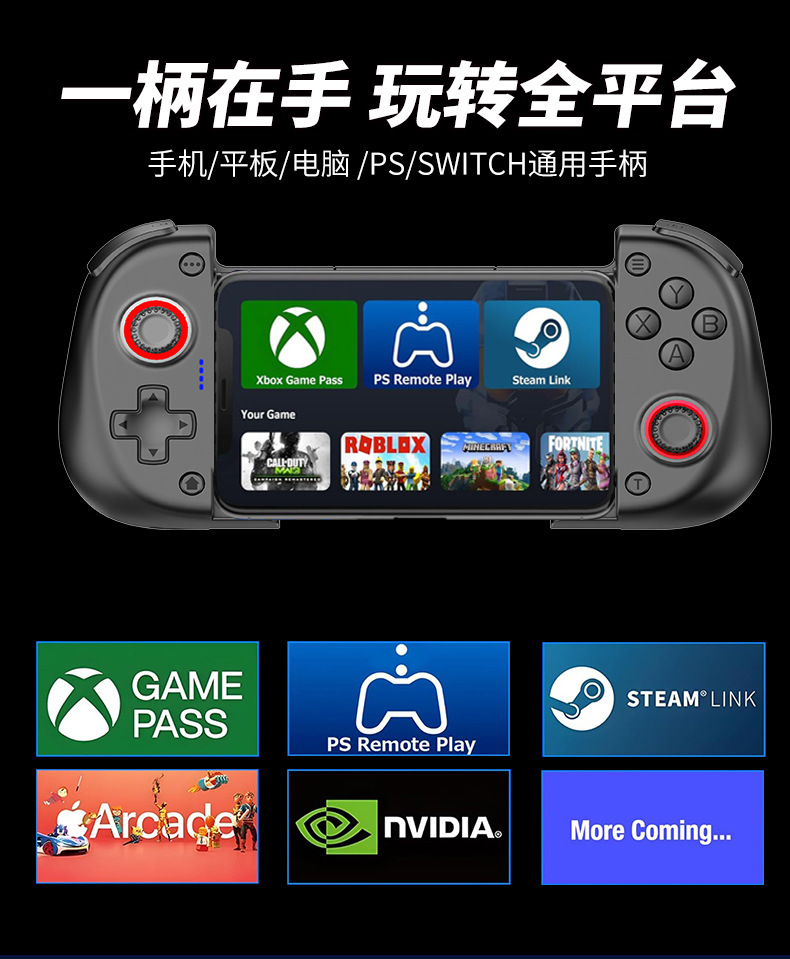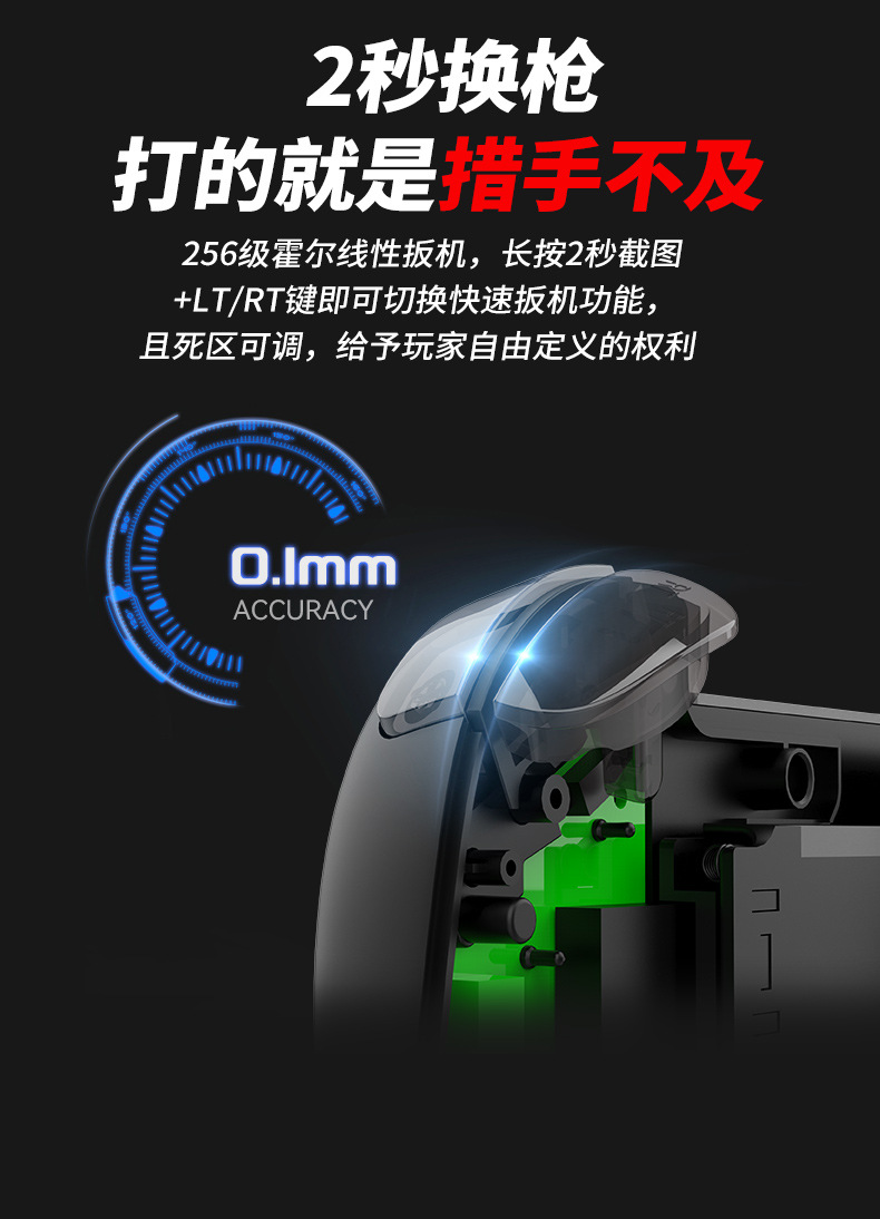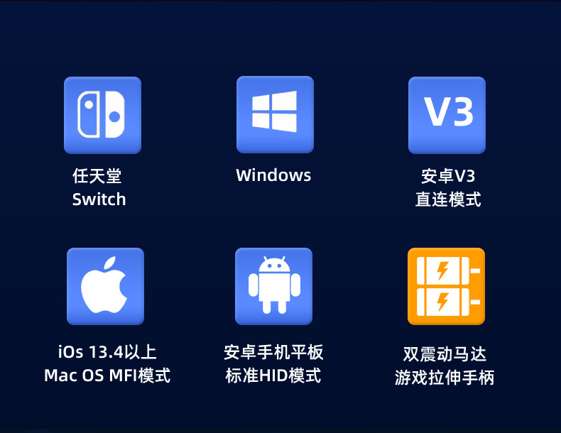 3.采用蓝牙5.2EDR/BLE 连接,手柄通过蓝牙与手机等各主机连接。