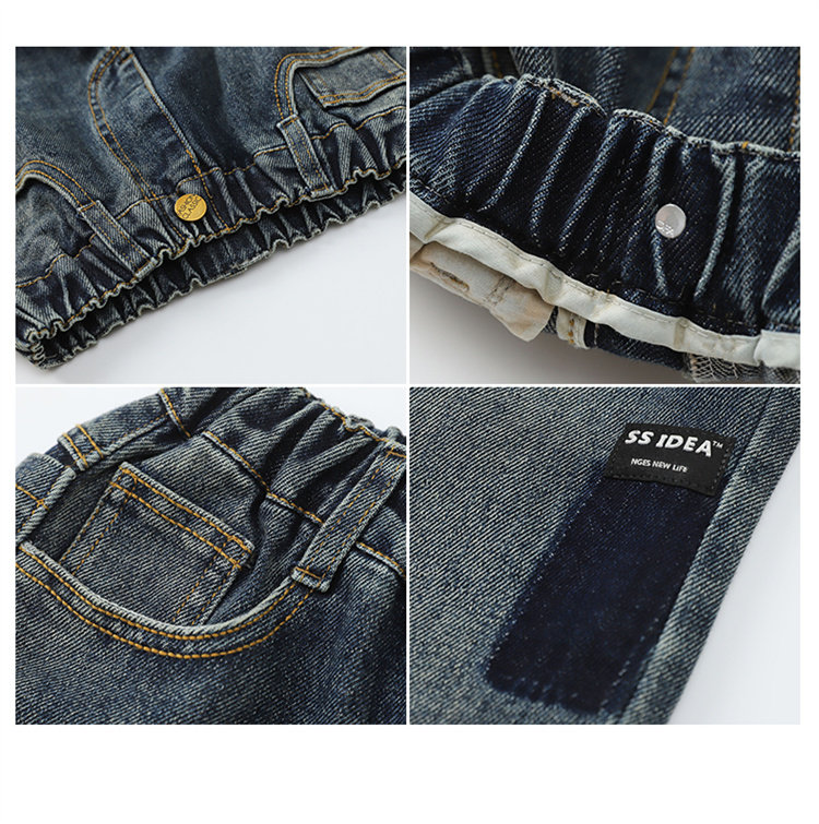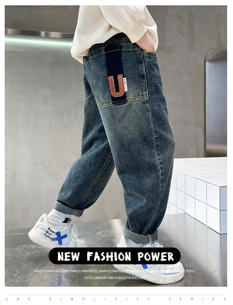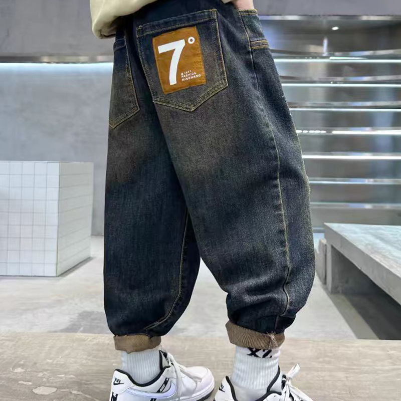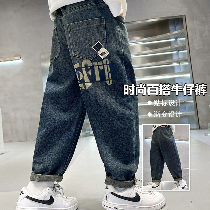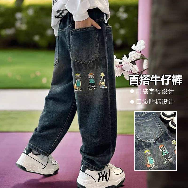 아동복 남아 바지 2025년 신상 봄 가을 스타일 중대형 아동용 루즈핏 긴바지 한국 스타일 트렌디 멋진 청바지 만화스토어 가기