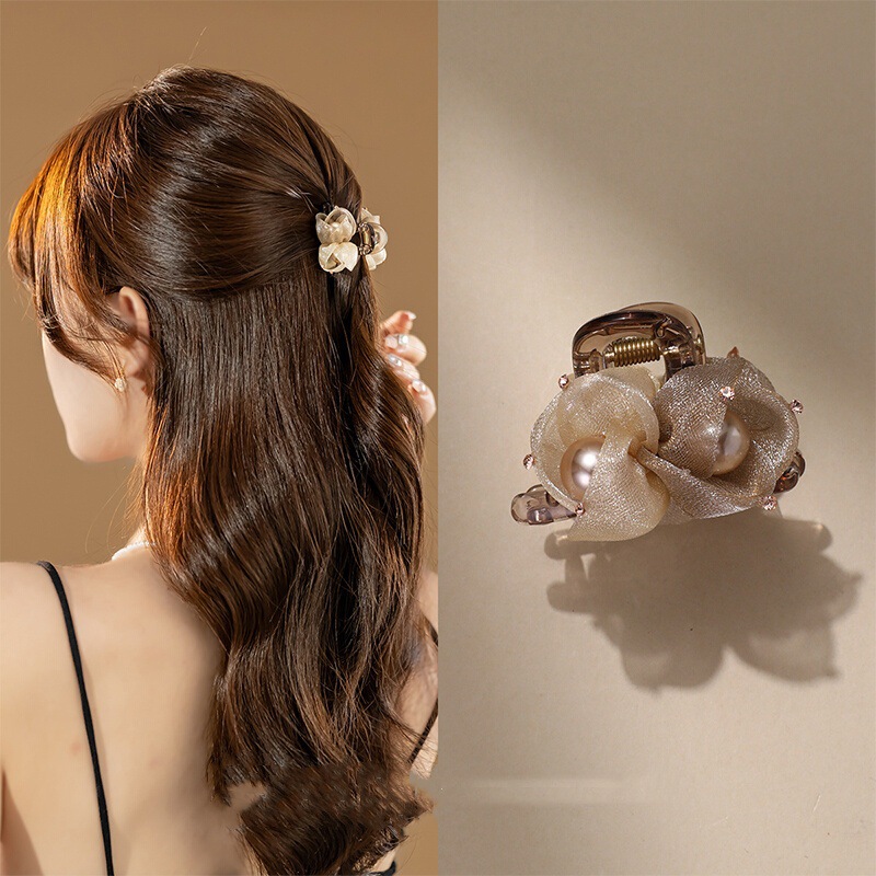 일본과 한국의 새로운 꽃 반 넥타이 헤어 클립 그랩 여성용 새로운 하이 엔드 스몰 사이즈 뱅 클립 머리 머리 그랩 헤어 클립