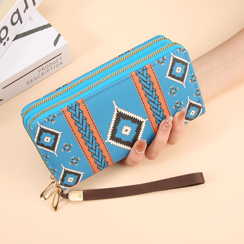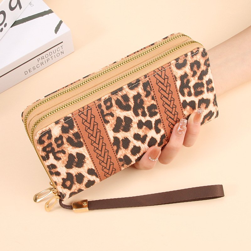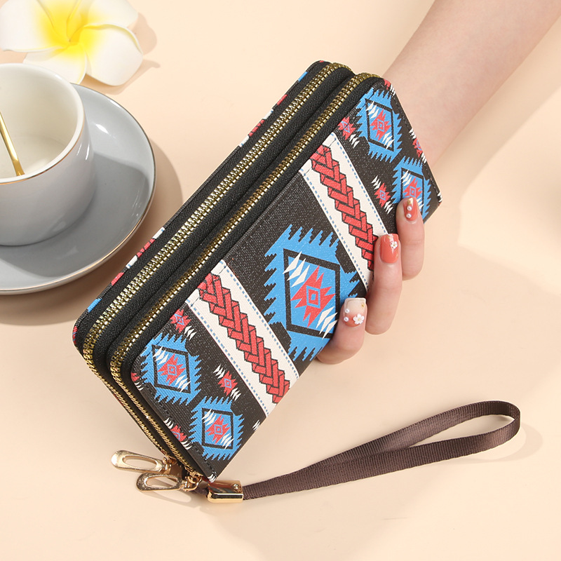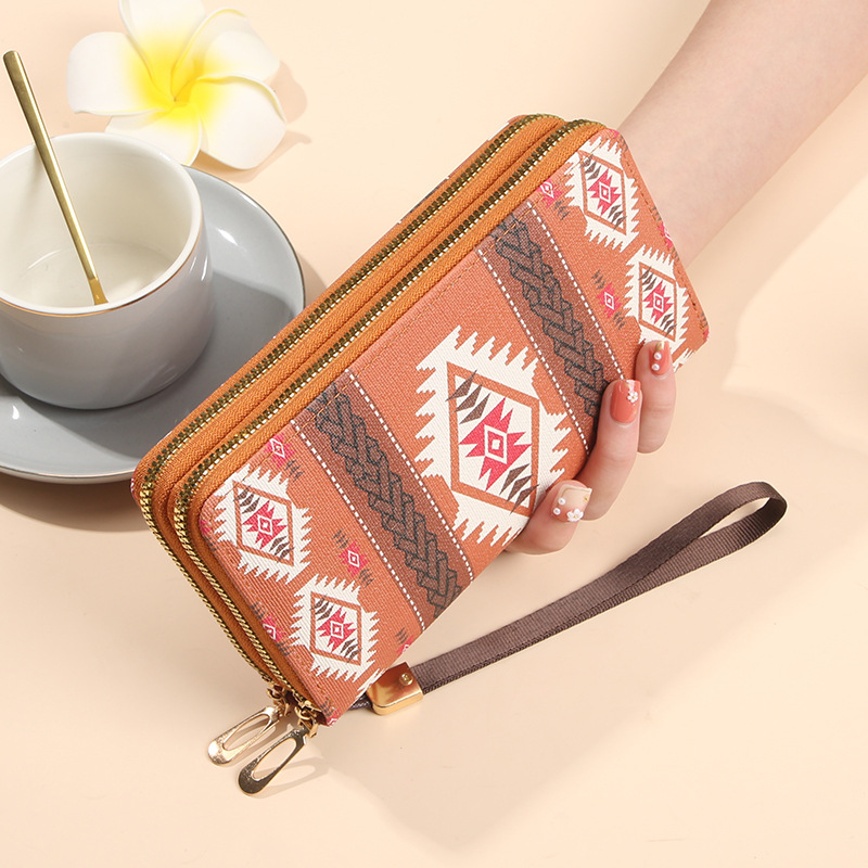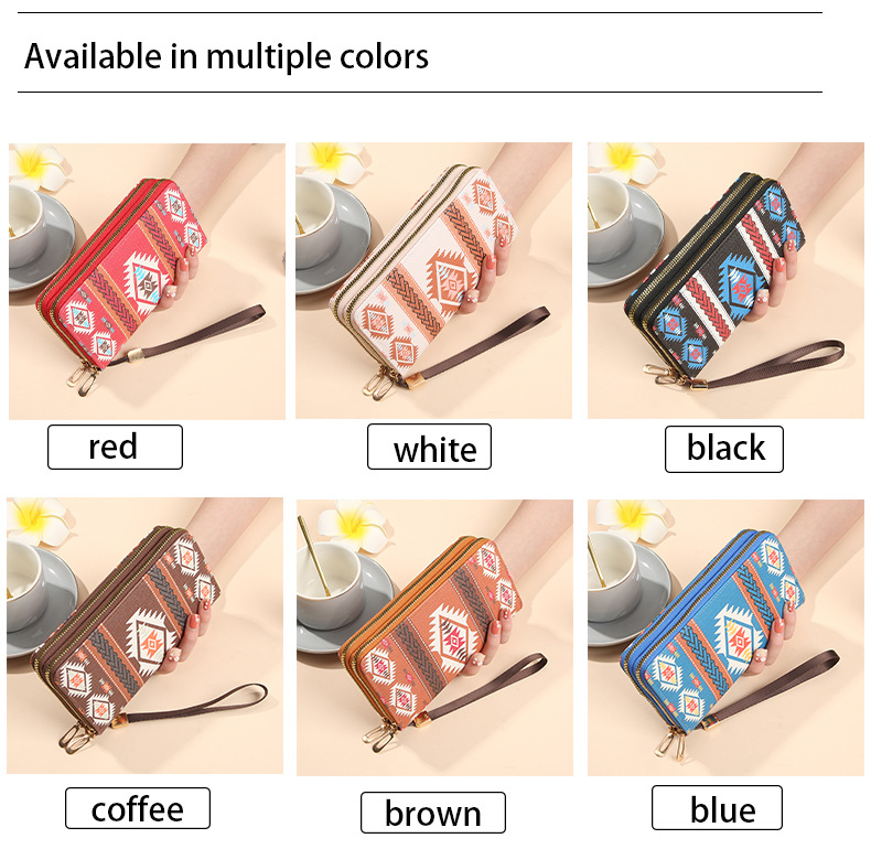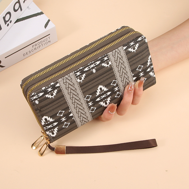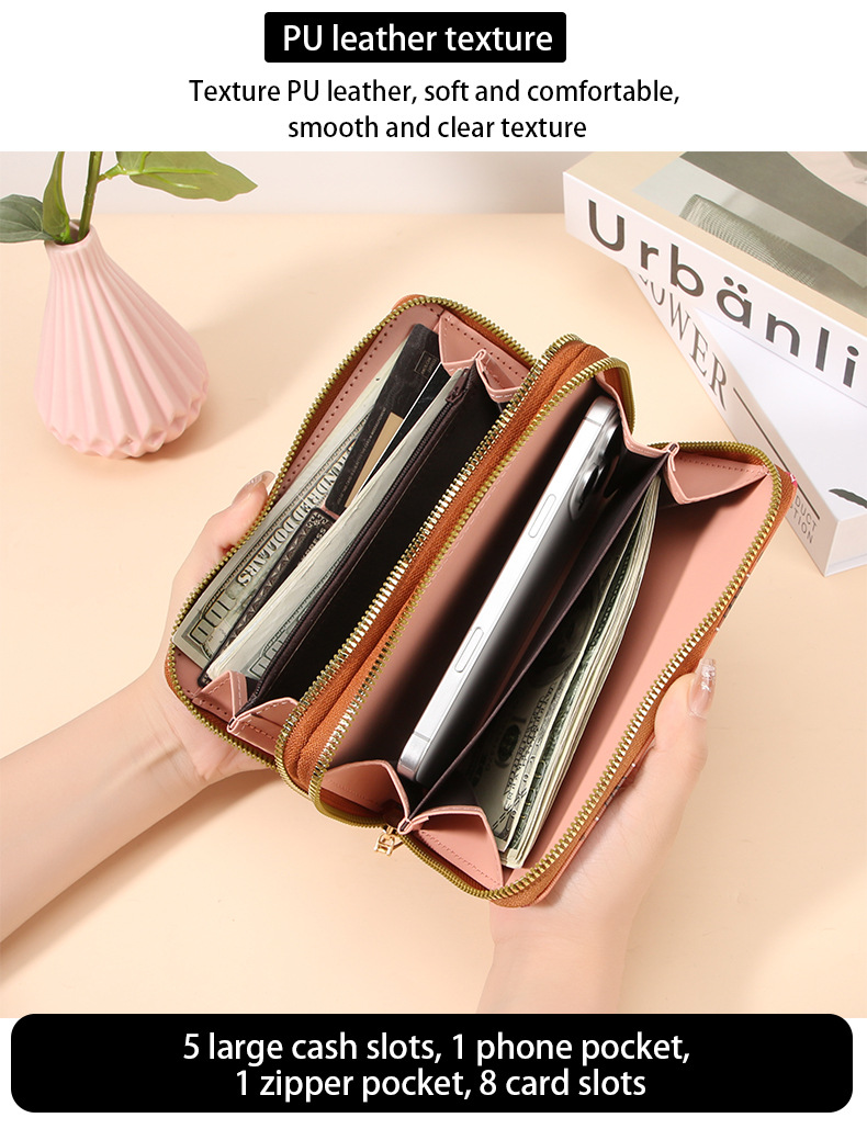 ENDAYCON 지갑 여성용 더블 지퍼 롱 클러치 백 유행 간단한 대용량 더블 레이어 코인 클립 휴대 전화 가방