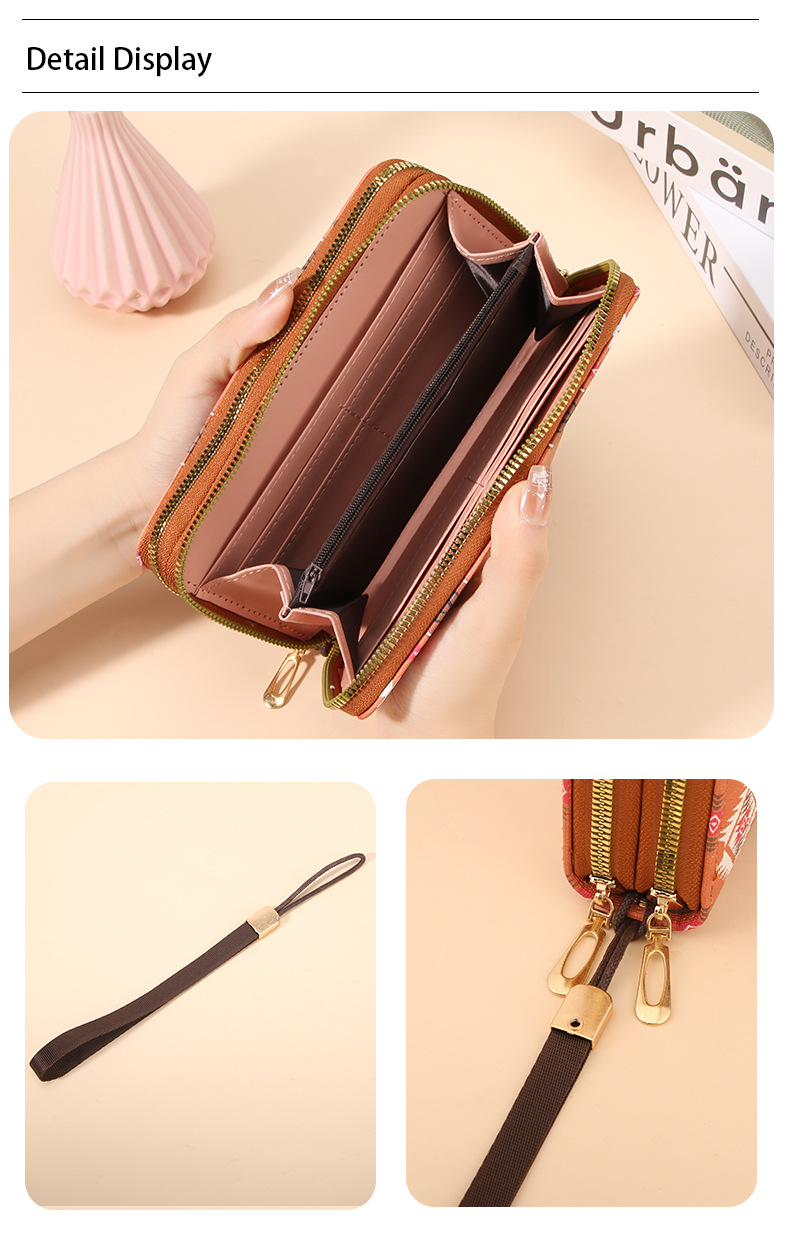 ENDAYCON 지갑 여성용 더블 지퍼 롱 클러치 백 유행 간단한 대용량 더블 레이어 코인 클립 휴대 전화 가방스토어 가기