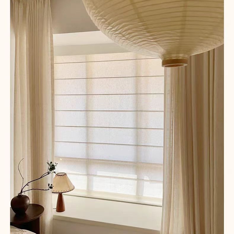 맞춤형 중국 반투명 아마사 롤업 로마 커튼 거실 침실 연구 어린이 방 음영 홈 섬유 창