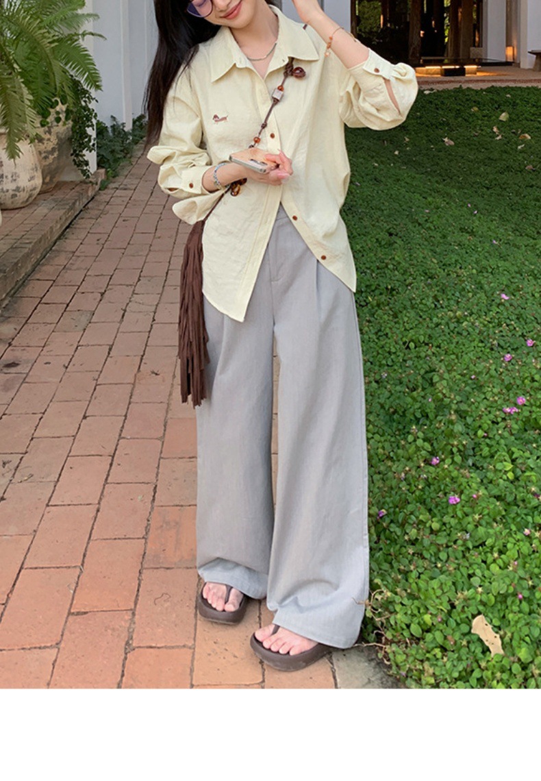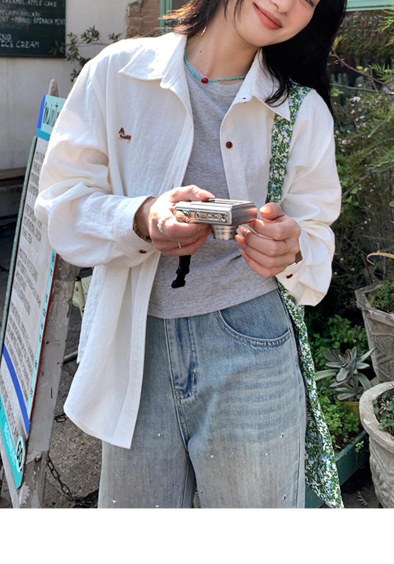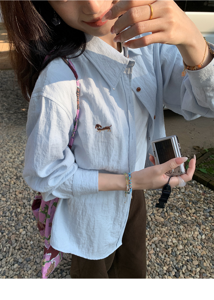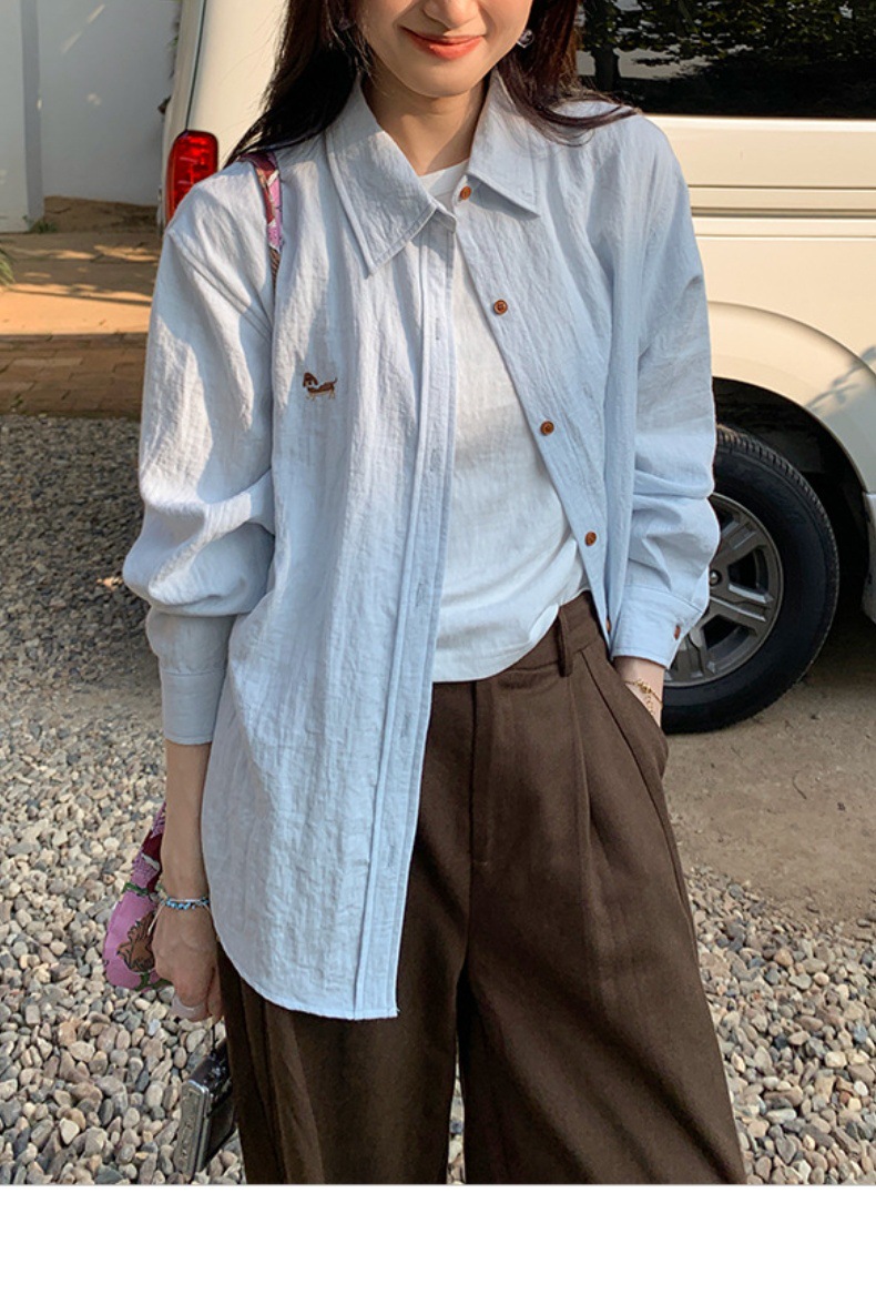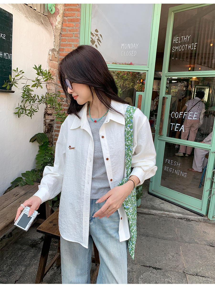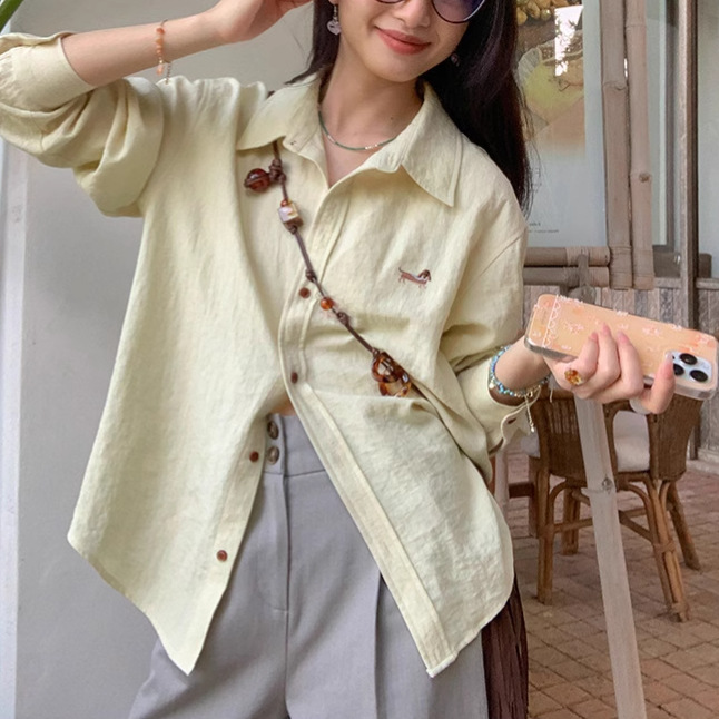 일본 여성을위한 수놓은 텐셀 셔츠 봄과 가을 새로운 부드러운 스타일 캐주얼 조커 카디건 셔츠스토어 가기