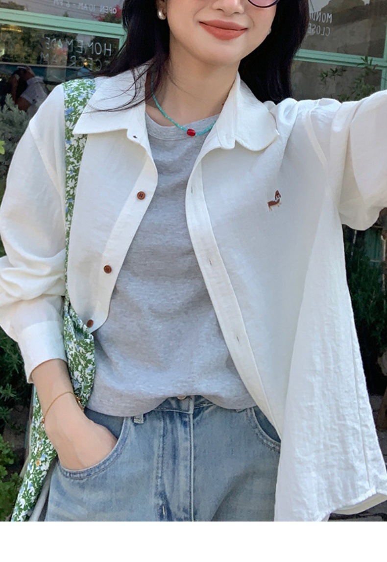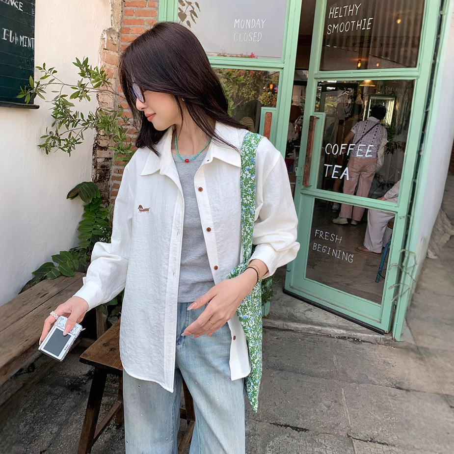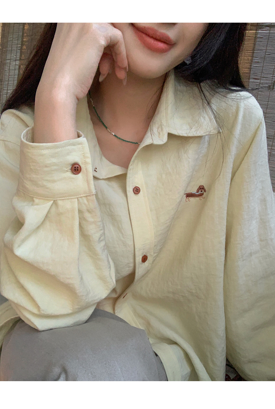 일본 여성을위한 수놓은 텐셀 셔츠 봄과 가을 새로운 부드러운 스타일 캐주얼 조커 카디건 셔츠