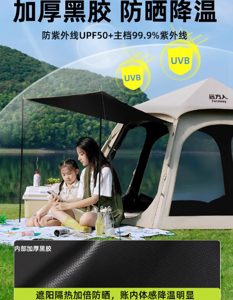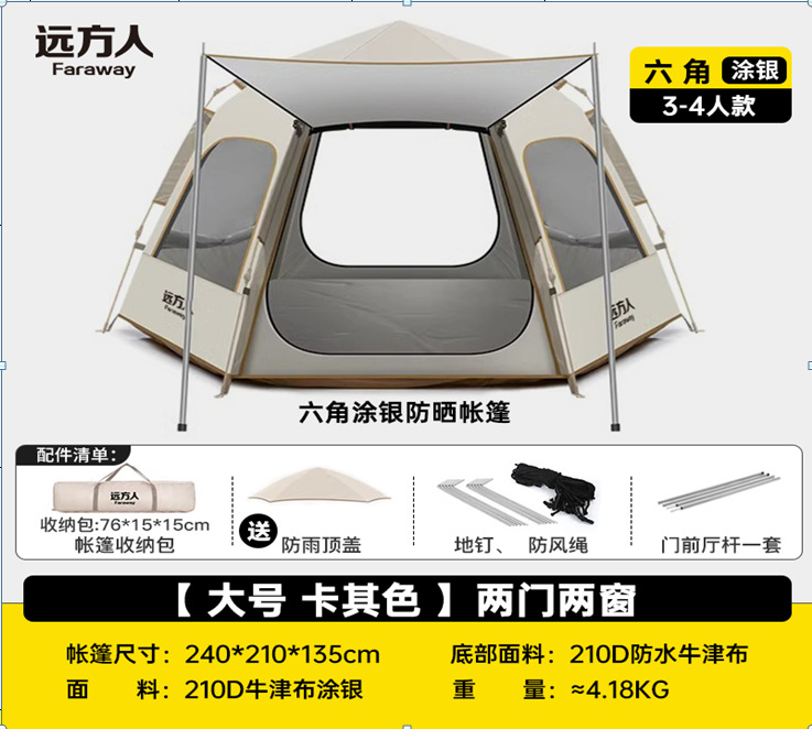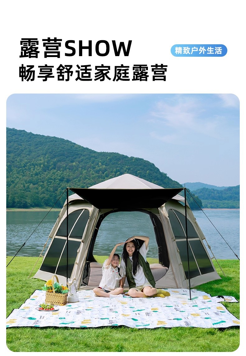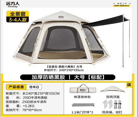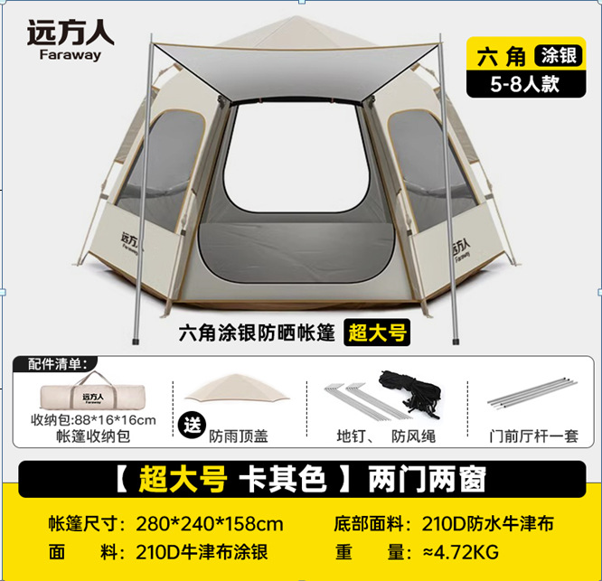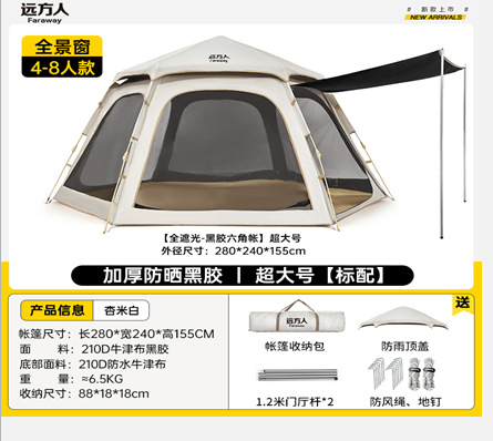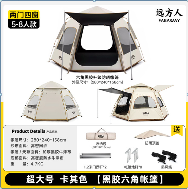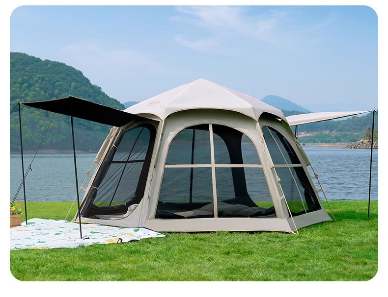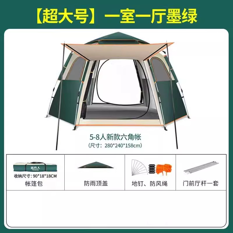 먼 야외 휴대용 접이식 텐트 캠핑 장비 두꺼운 방비 선 스크린 자동 빠른 오프닝 육각 텐트스토어 가기