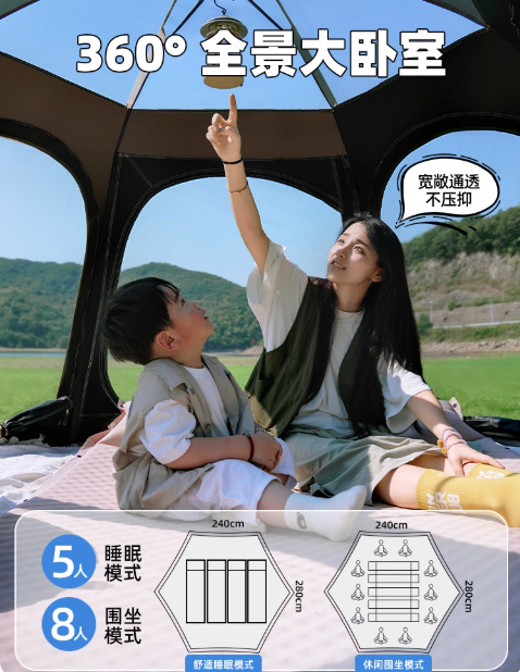 • 진한 녹색 대형 육각형 텐트