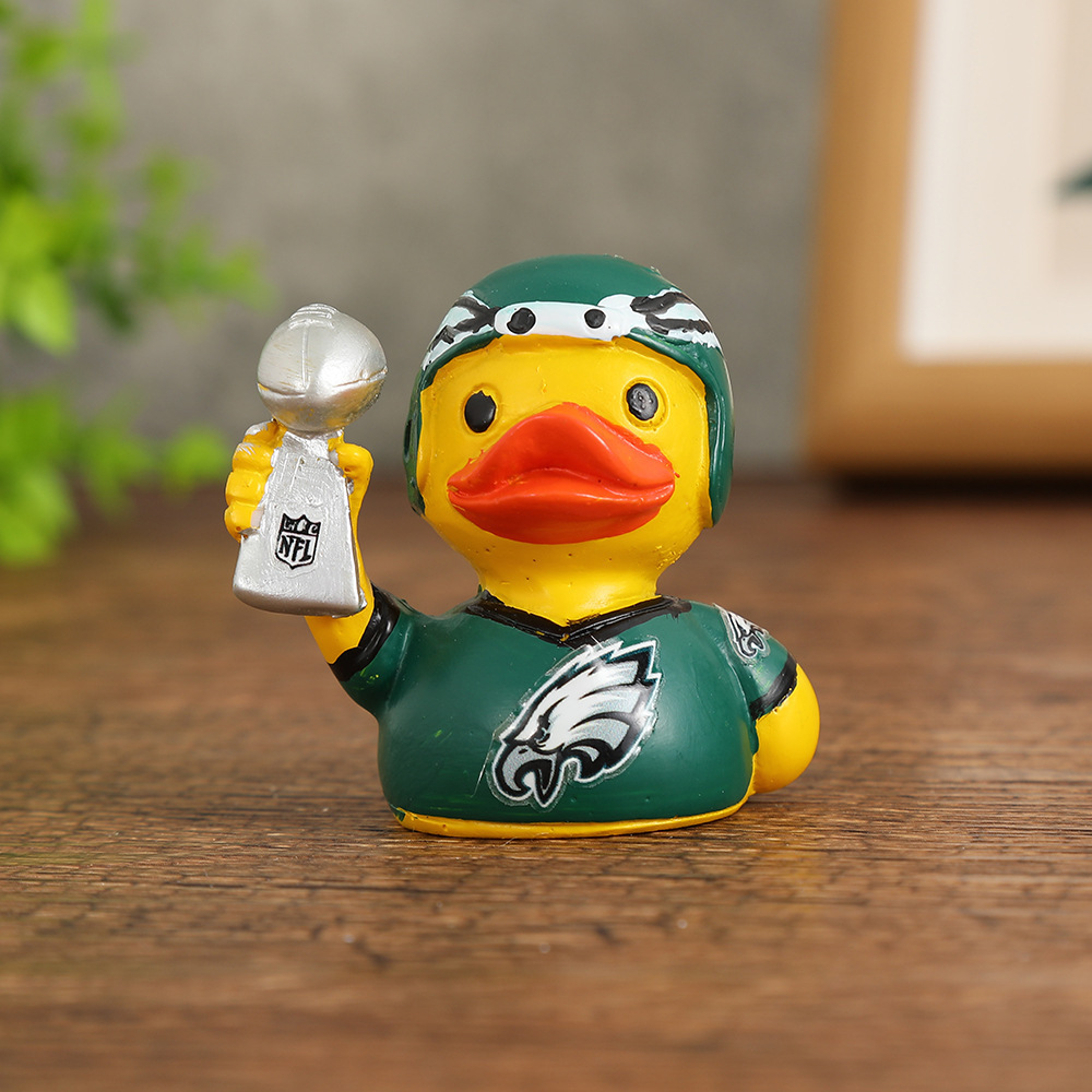 새로운 수지 공예 오리 선수 장식품 럭비 스포츠 스타일 창조적 인 노란색 오리 장식품 도매