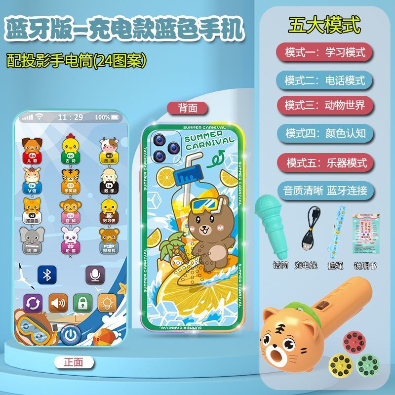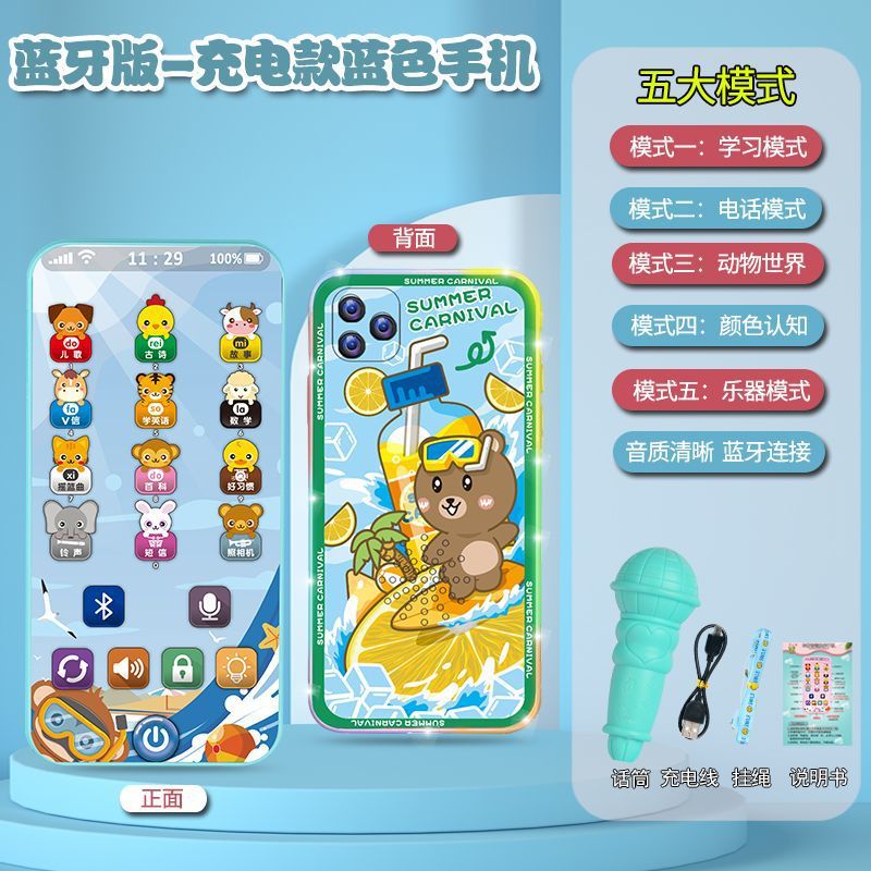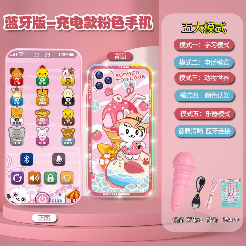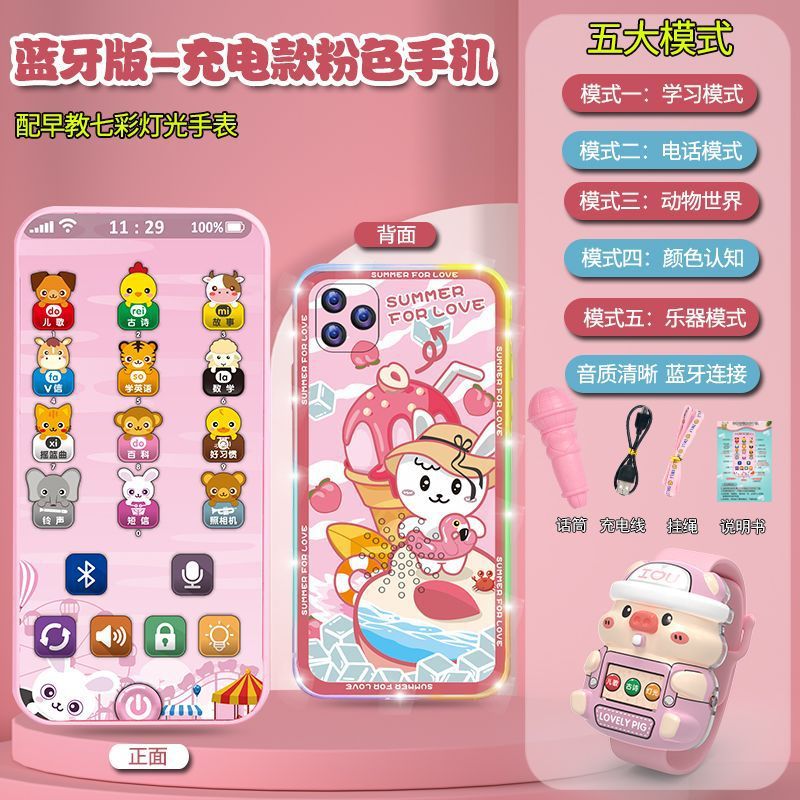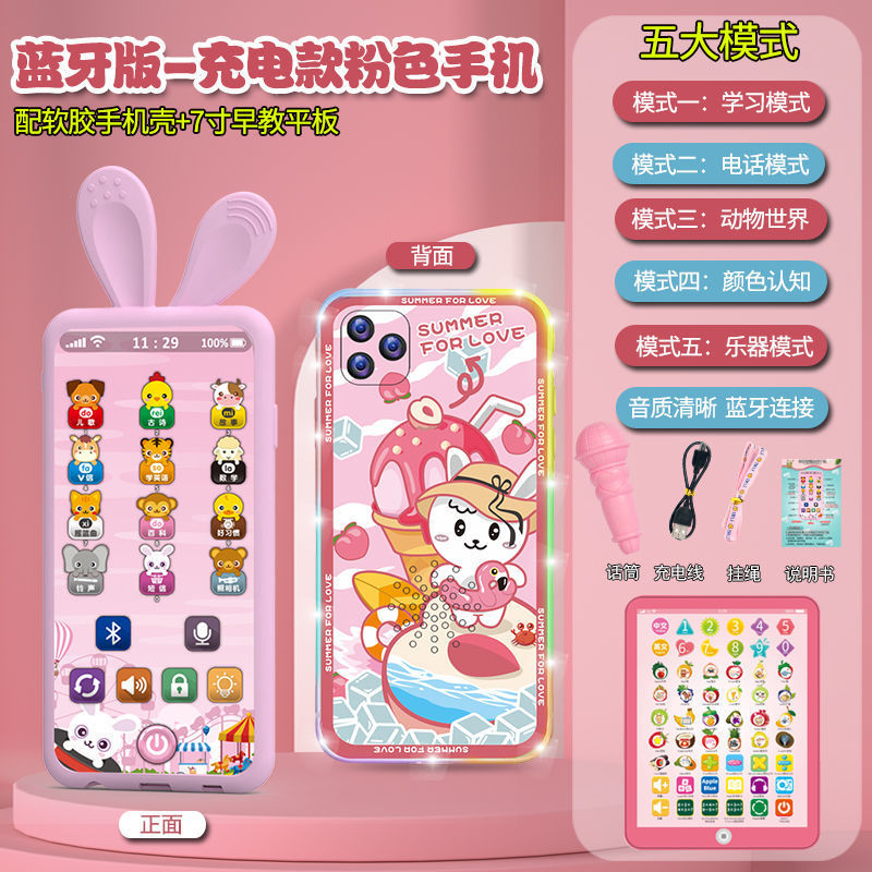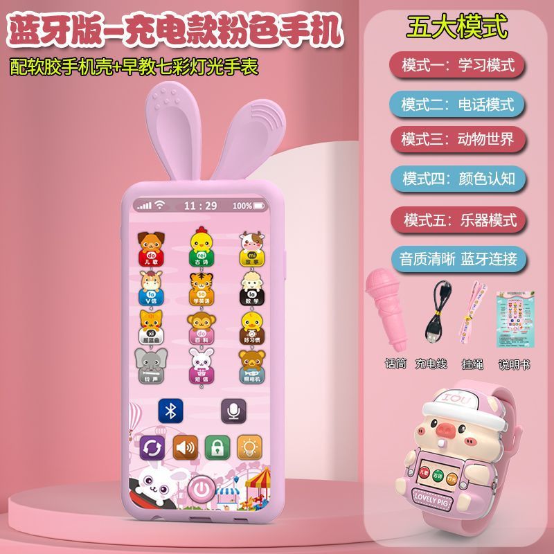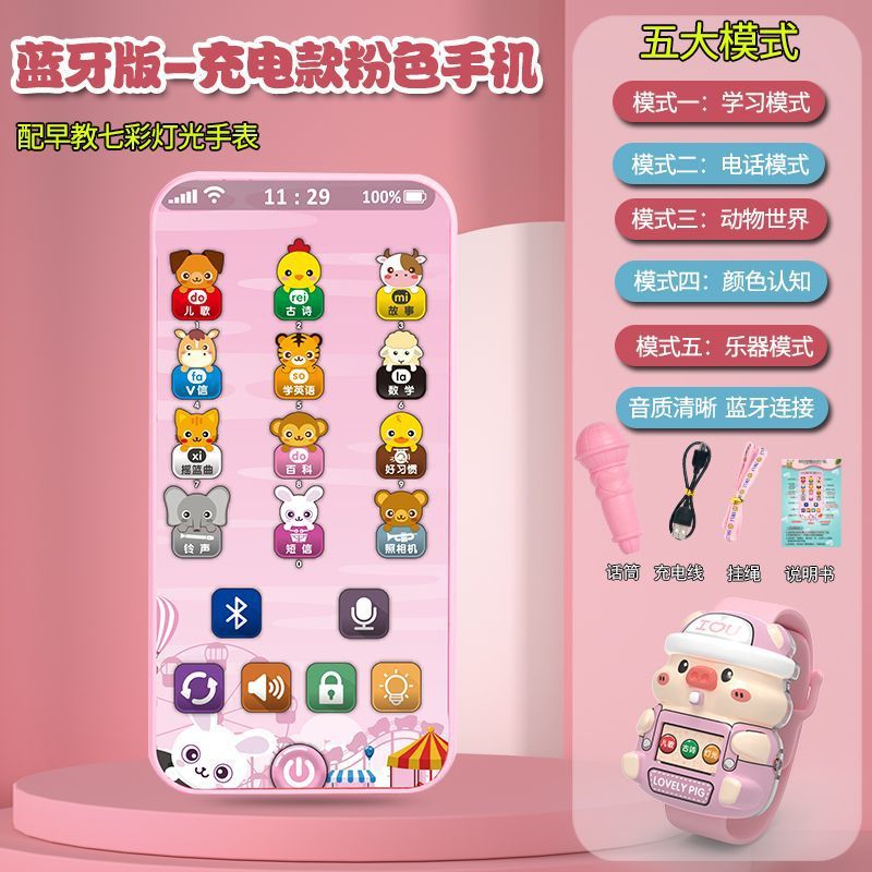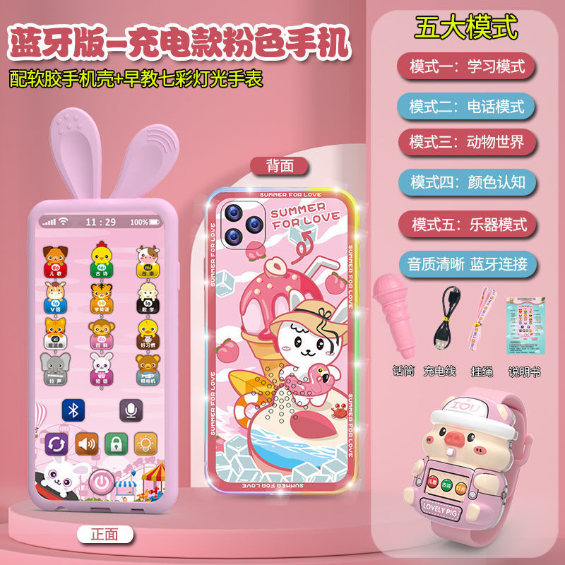 충전식 블루투스 버전 터치 스크린 어린이 조기 교육 휴대 전화 장난감 어린이 다기능 지능형 음악 전화