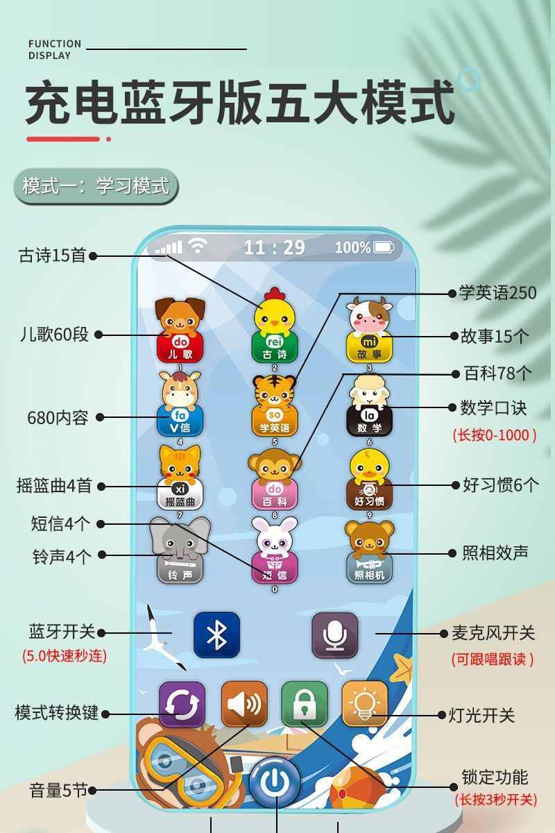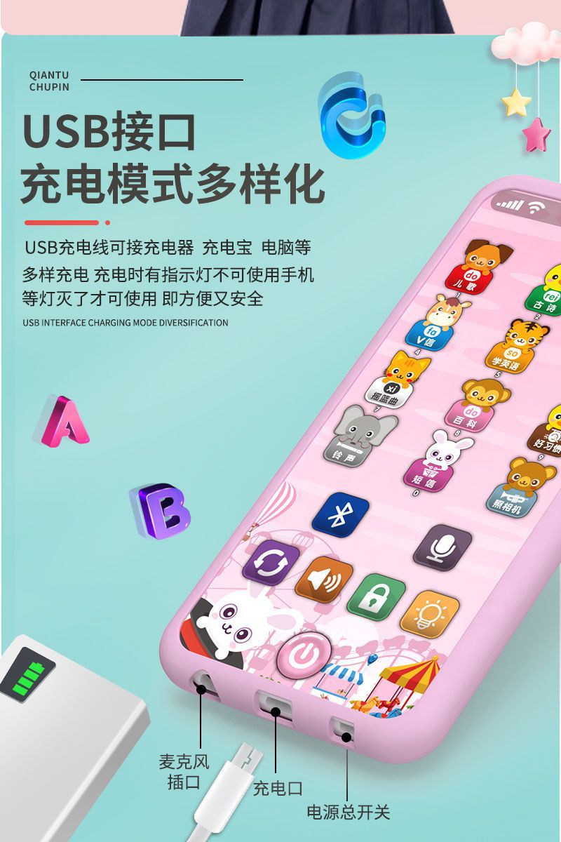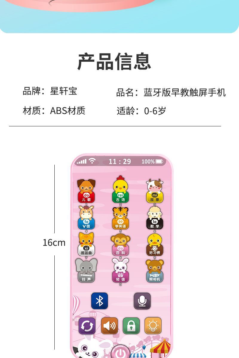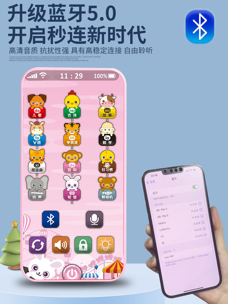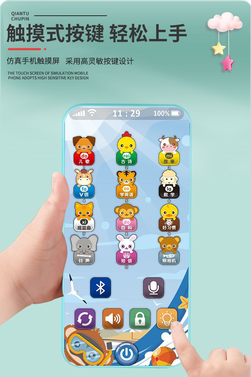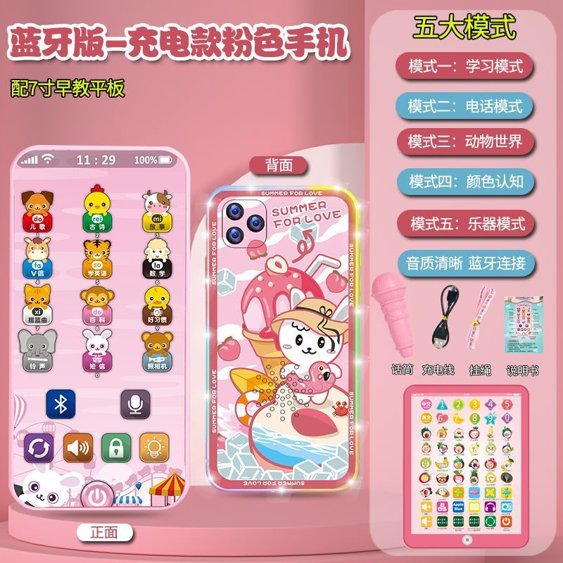 충전식 블루투스 버전 터치 스크린 어린이 조기 교육 휴대 전화 장난감 어린이 다기능 지능형 음악 전화
