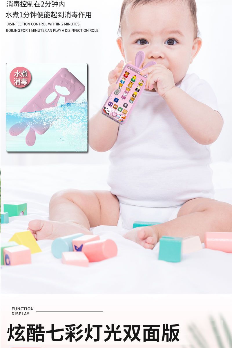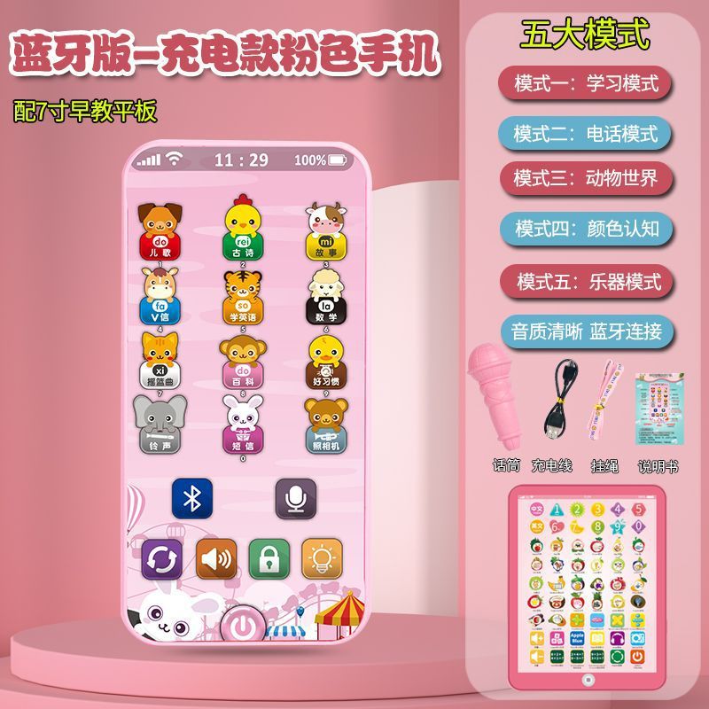 • [블루투스 다채로운 양면 버전] 5가지 모드 - 핑크색 휴대폰 - 유아 교육용 다채로운 눈 보호 램프 시계 포함 [무료 배터리]