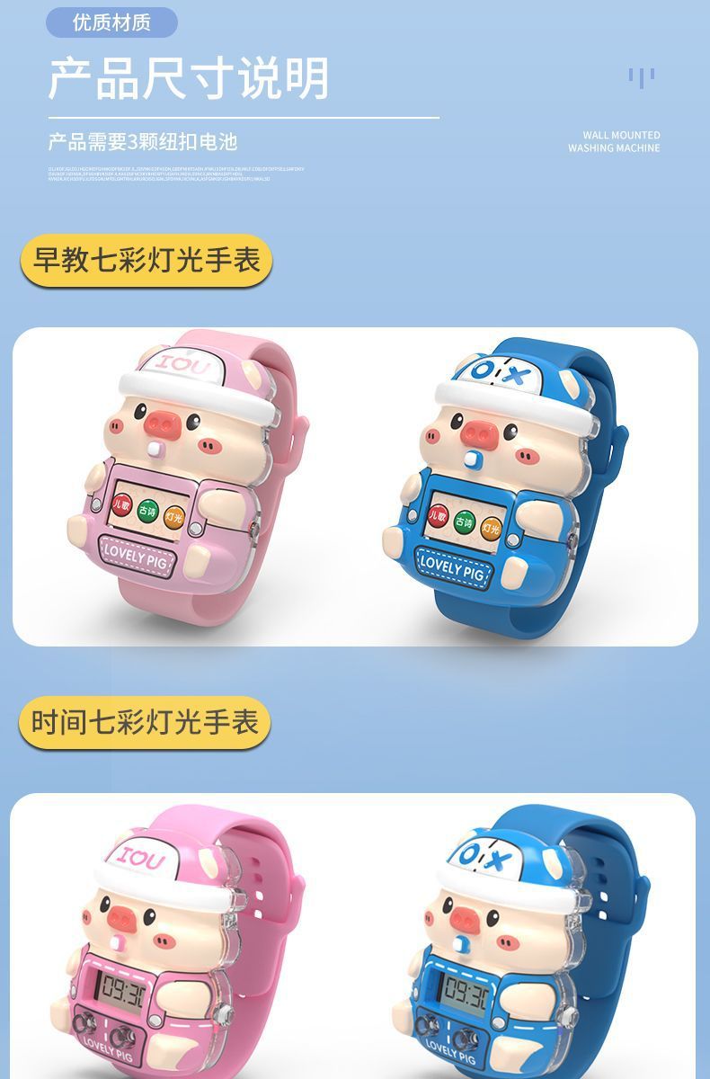 • [블루투스 단면 버전] 5가지 모드 - 핑크색 휴대폰 - 유아교육용 컬러풀한 눈 보호 램프 시계 [무료 배터리]
