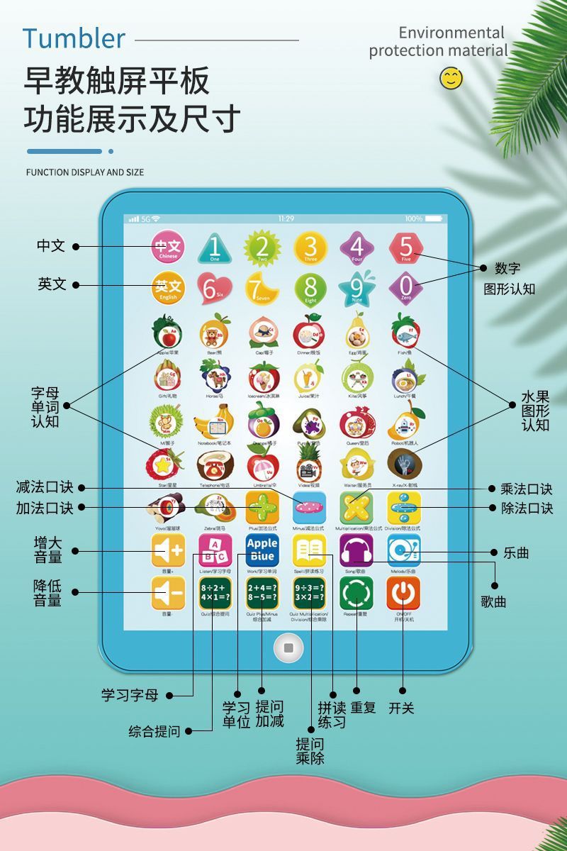 • [블루투스 다채로운 양면 버전] 5가지 모드 - 핑크색 휴대폰 - 7inch 이른 터치 스크린 태블릿 장착 [무료 배터리]