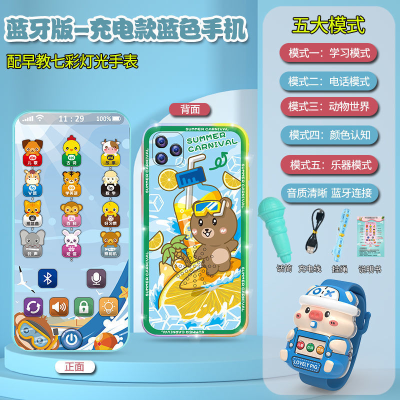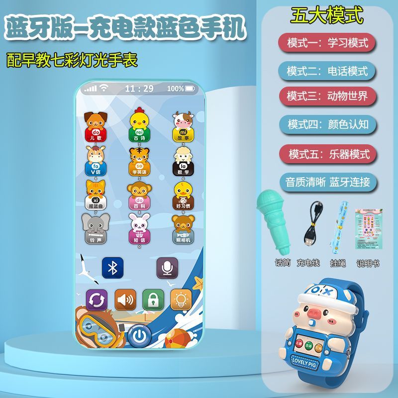 충전식 블루투스 버전 터치 스크린 어린이 조기 교육 휴대 전화 장난감 어린이 다기능 지능형 음악 전화스토어 가기