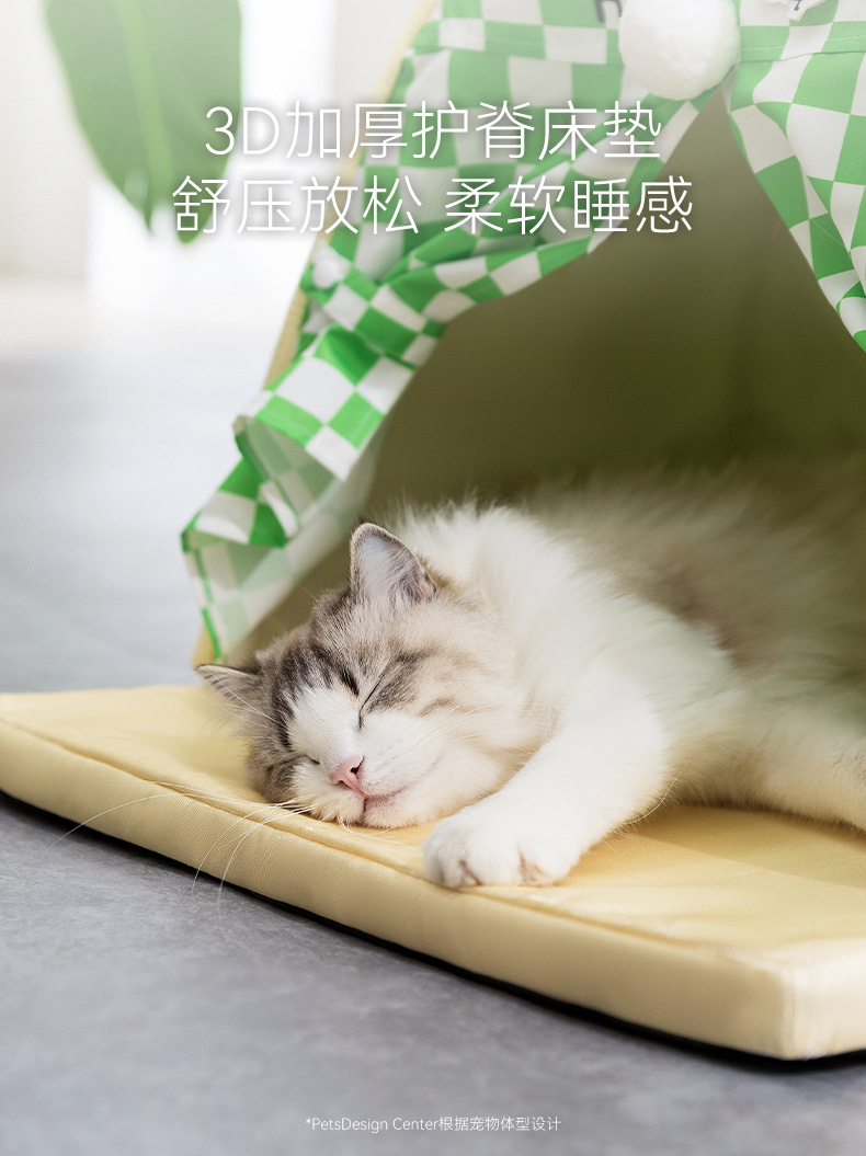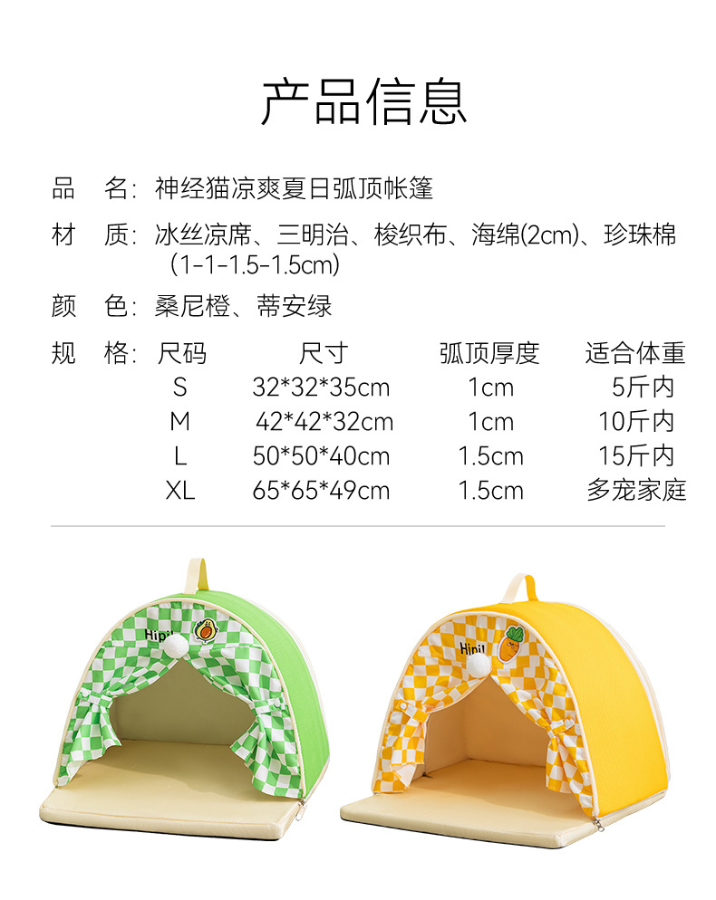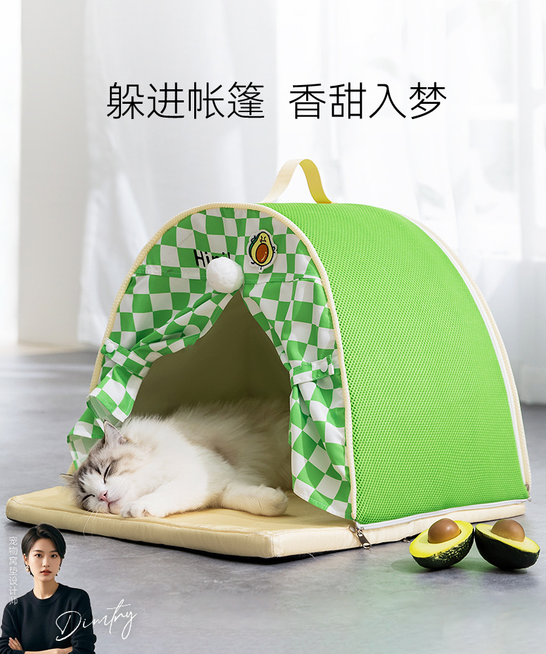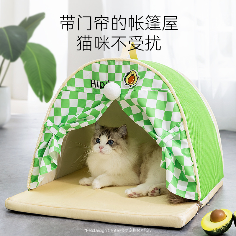 봄과 여름 고양이 텐트 둥지 문 커튼이있는 반 닫힌 시원한 통기성 고양이 침대 교란 방지 중소 규모의 개 애완 동물 둥지