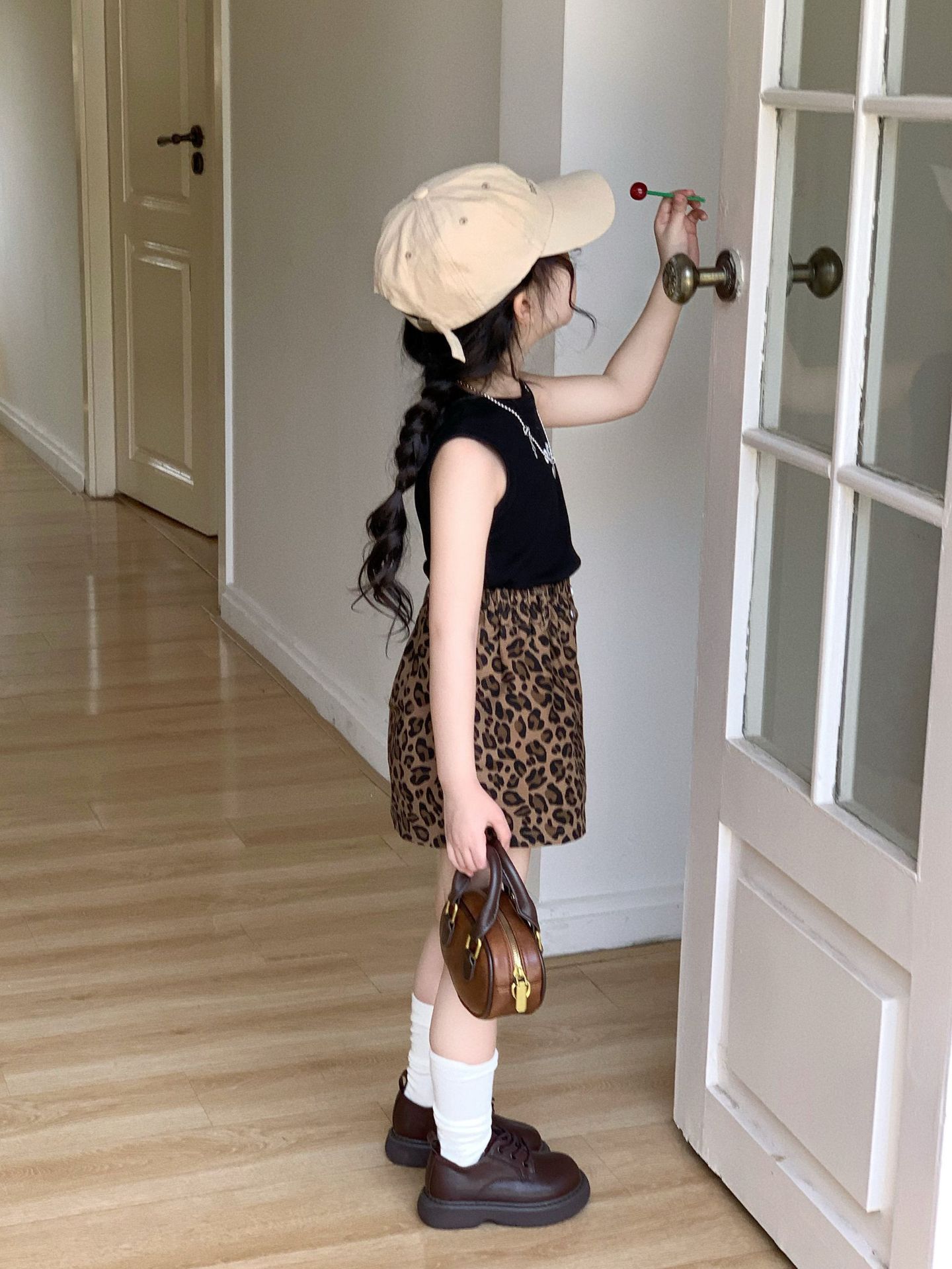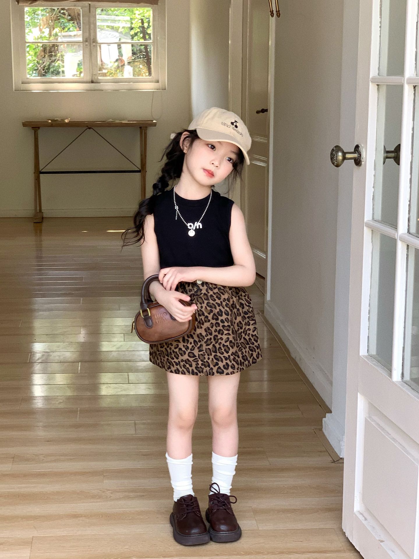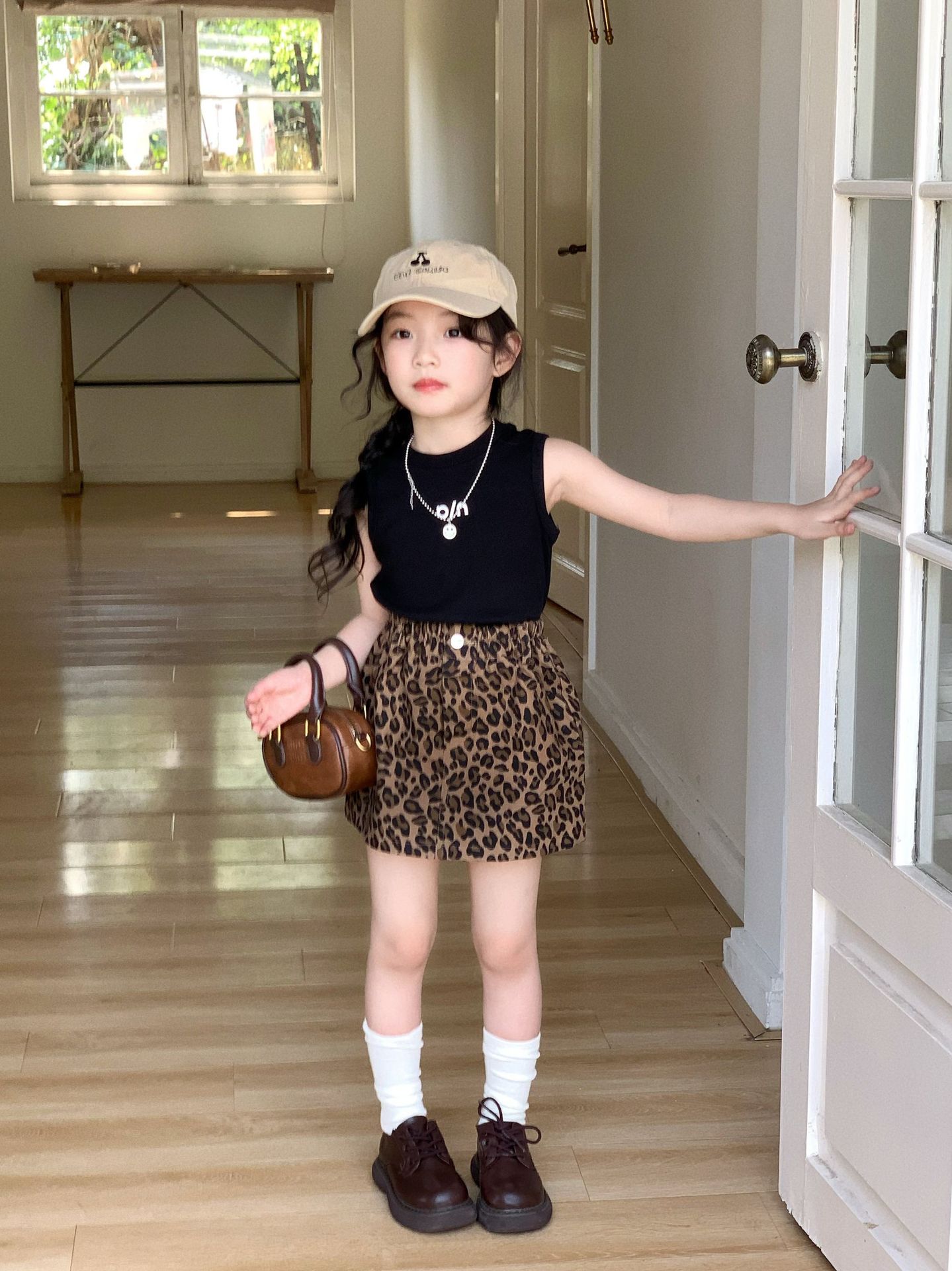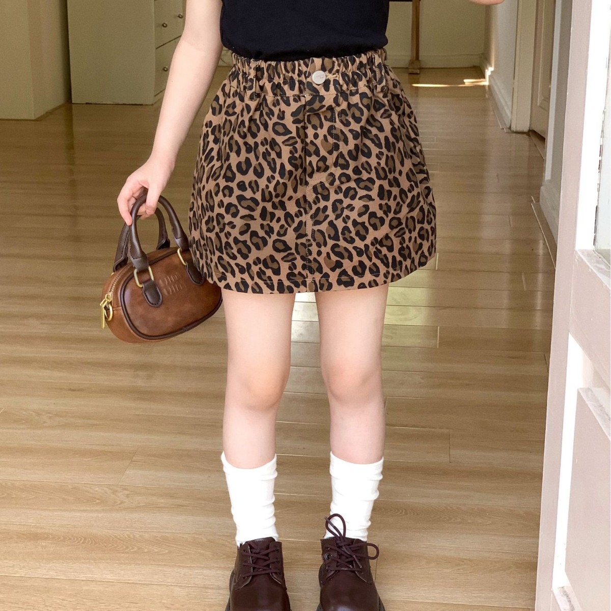 여자 치마 2025 여름 미국 스타일 뜨거운 소녀 레오파드 무늬 스커트 한국 A 라인 스커트 어린이 인쇄 달콤한 쿨 짧은 치마스토어 가기