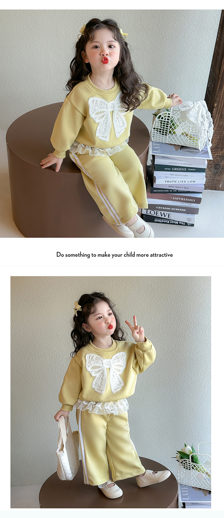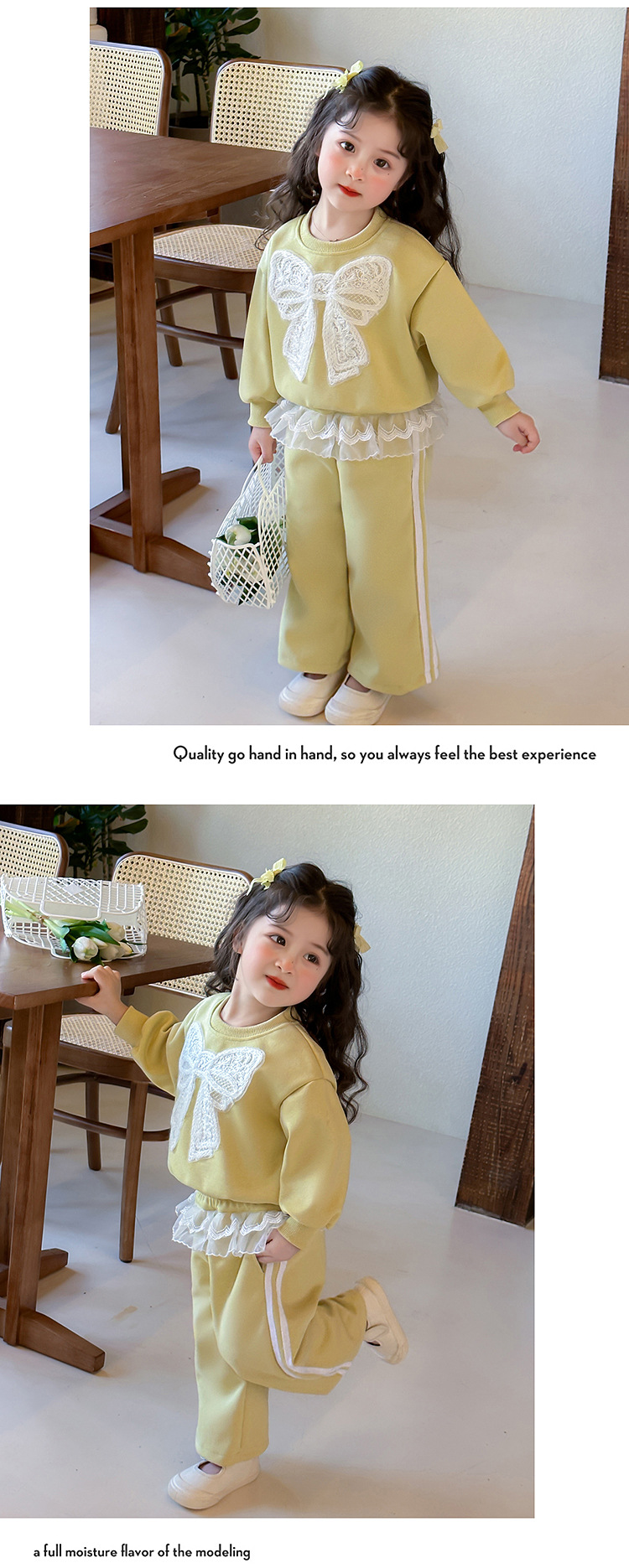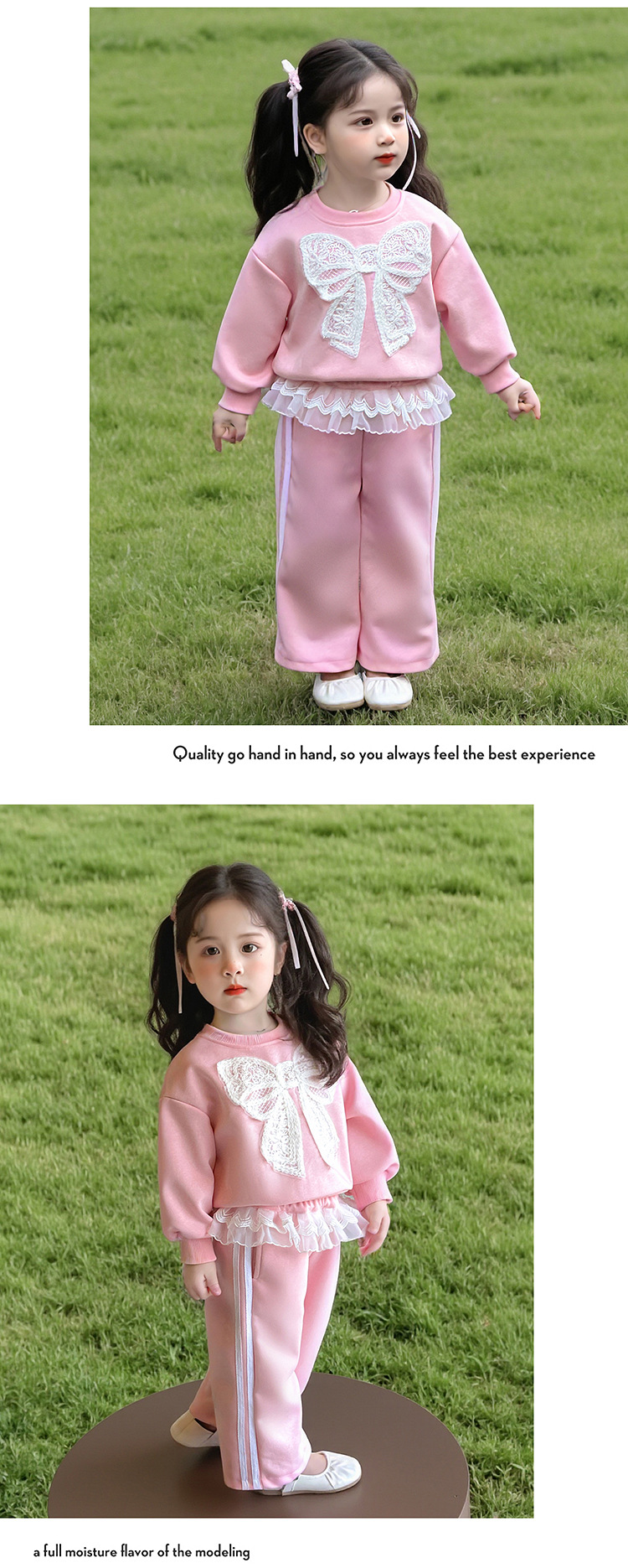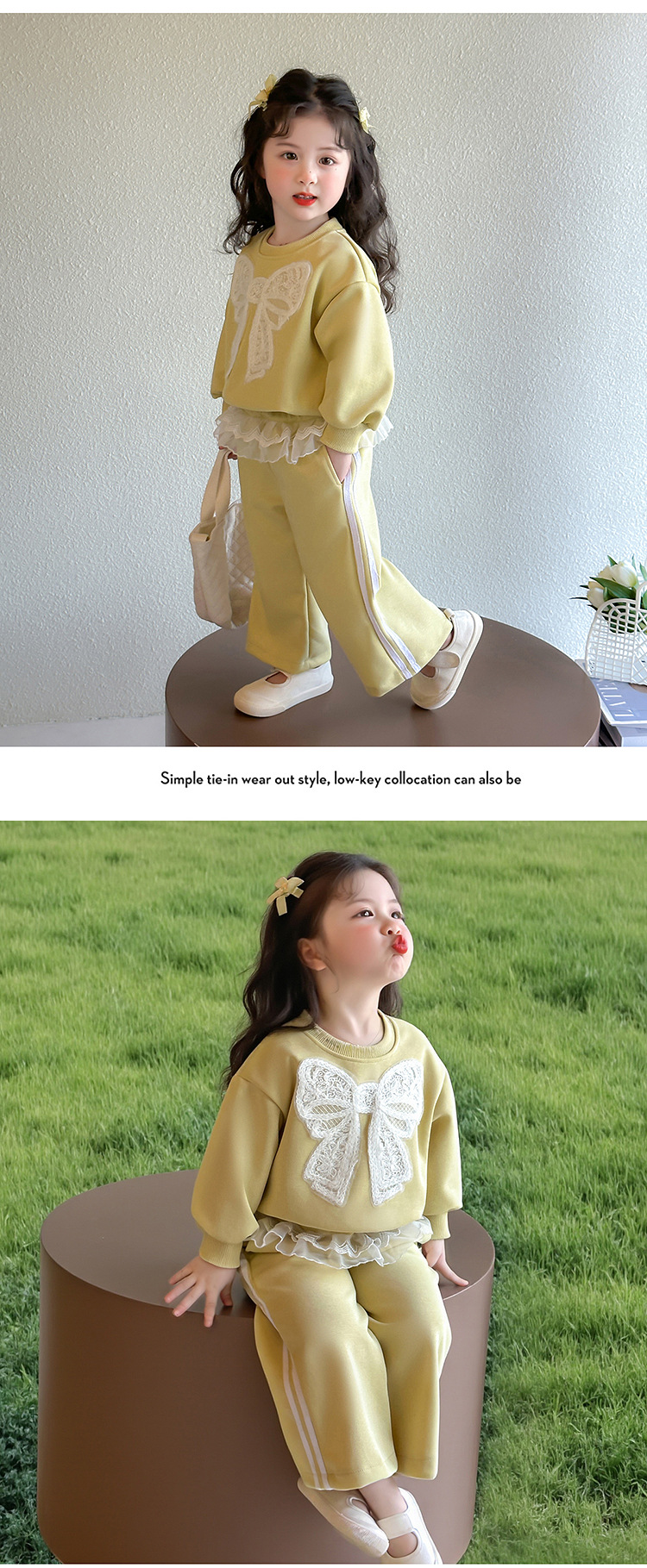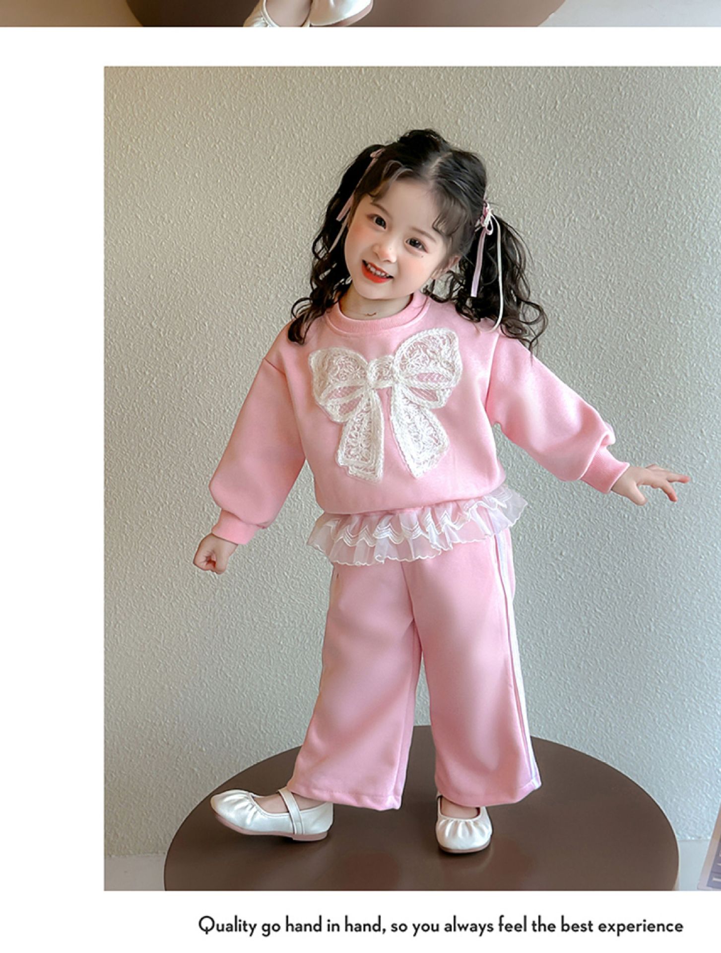 여아 정장 2025 봄 가을 새로운 스타일 여아 레이스 보우 스웨트 셔츠 중소형 어린이 투피스 세트스토어 가기