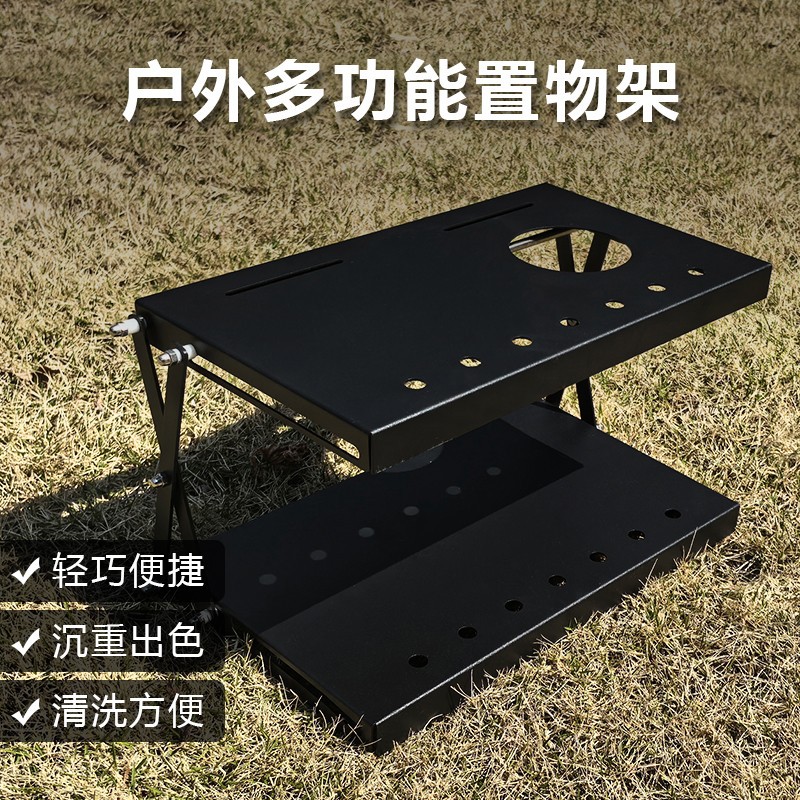 야외 캠핑 스토리지 랙 피크닉 휴대용 3층 접이식 스토리지 랙 캠핑 블랙 피니싱 피크닉 테이블