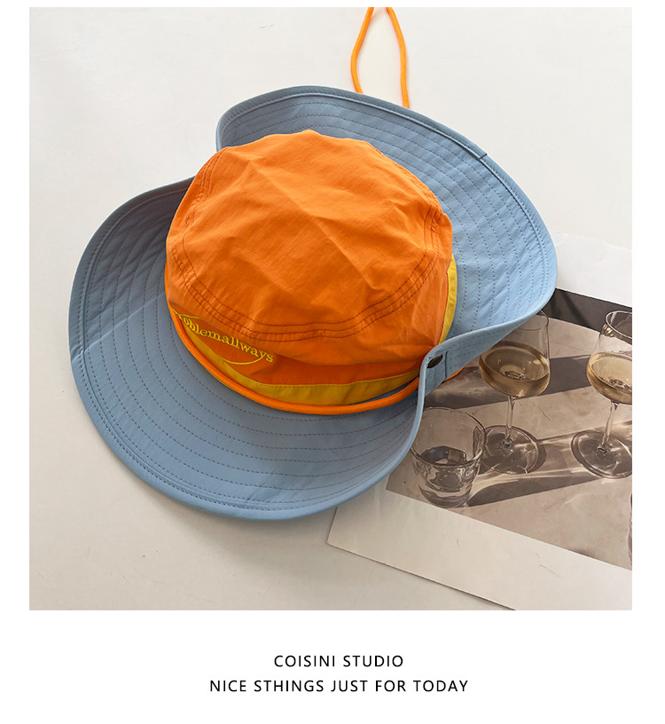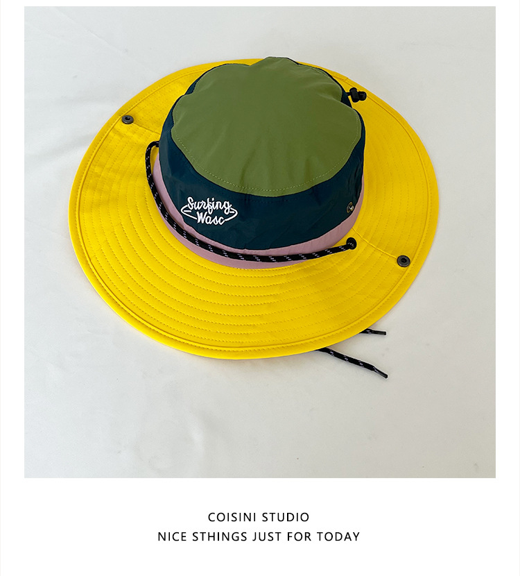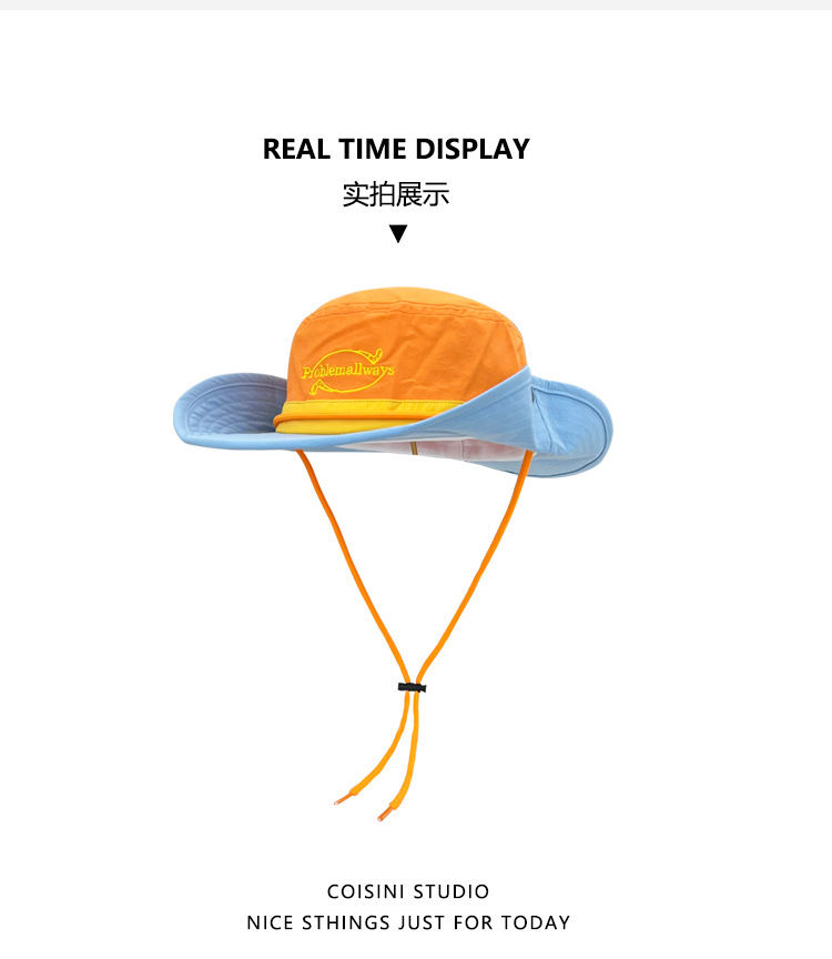 2025 새로운 복고풍 작업복 도파민 컬러 매칭 대형 챙 어부 모자 여성 봄, 여름 야외 태양 보호 하이킹 모자