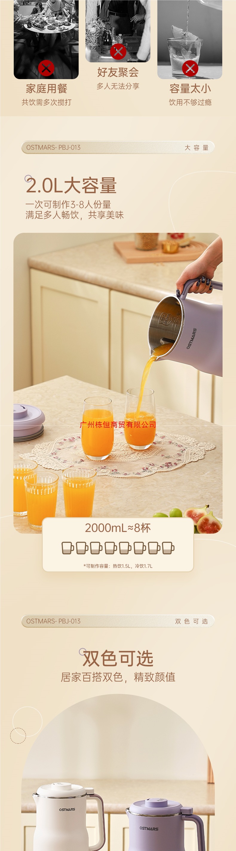 독일 OSTMARS 두유 기계 새로운 가정용 2L 대용량 완전 자동 다기능 필터 프리 조리 벽 파괴 기계