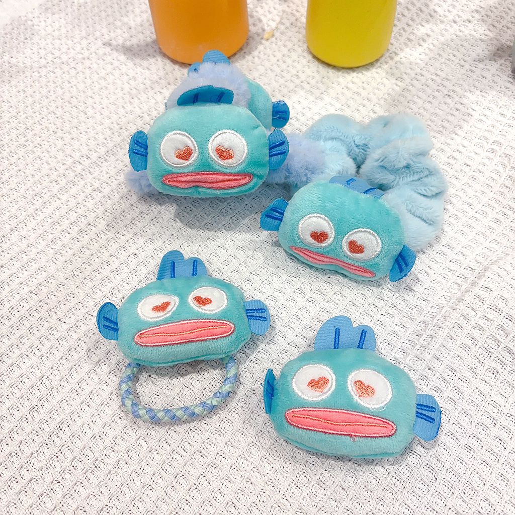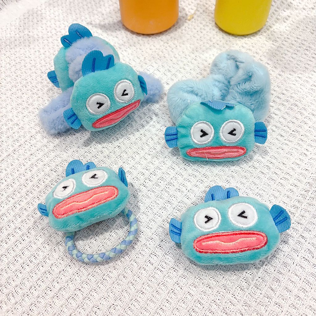 새로운 재미 있은 광대 물고기 코튼 충전 인터넷 연예인 만화 인형 클립 테리 고무 밴드 머리핀 큰 입 물고기 인형 헤어 액세서리