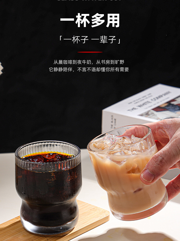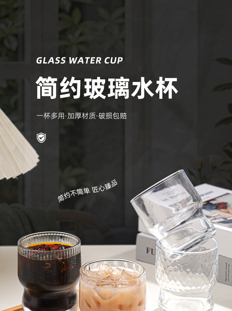 라이트 럭셔리 인스 스타일 망치 무늬 유리컵 고급스러운 커피잔 독특한 가정용 물컵 여름용 여자 우유컵스토어 가기