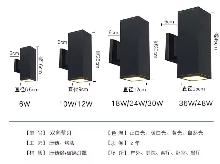 LED 실외 방수 사각형 벽등, 위아래 조명, 통로, 복도, 벽등, 싱글/더블 헤드 벽등스토어 가기