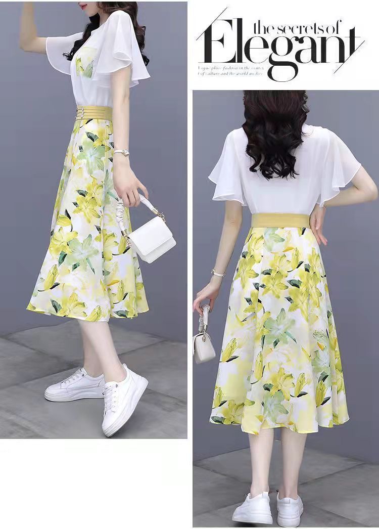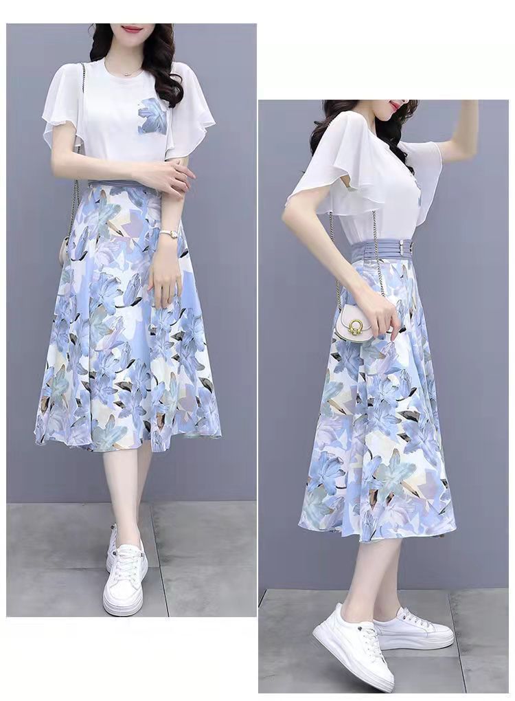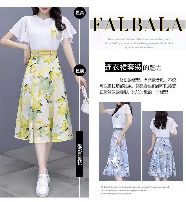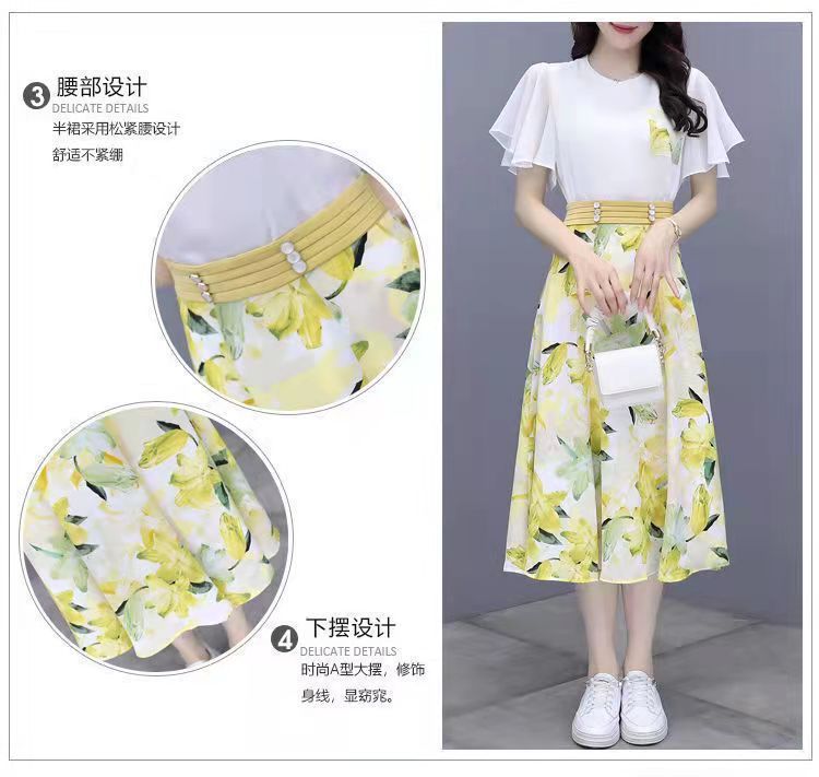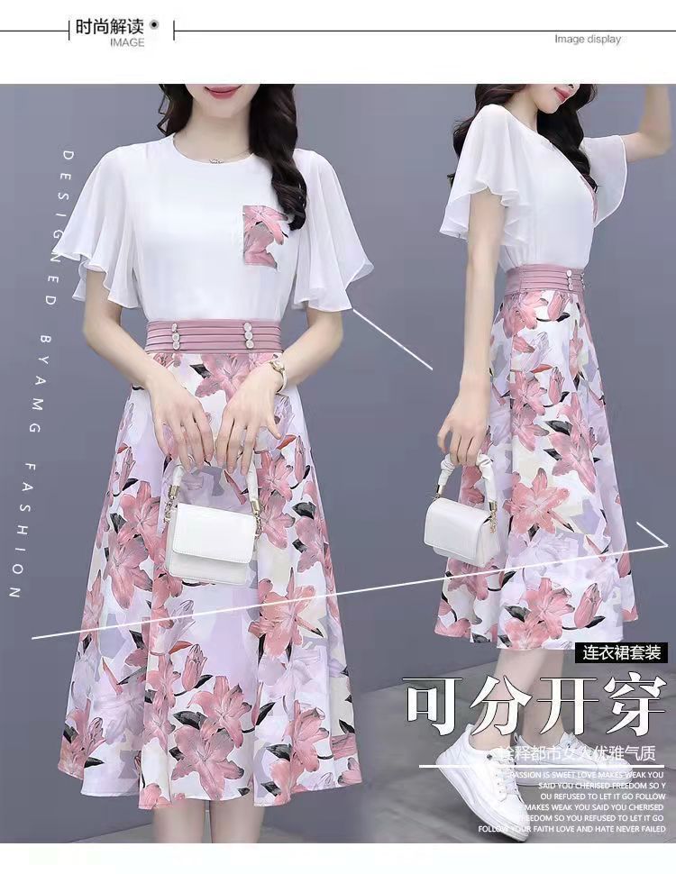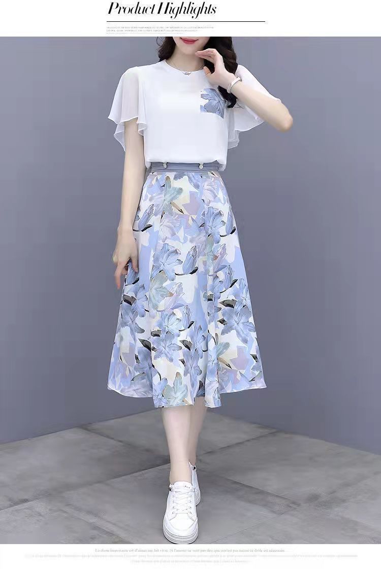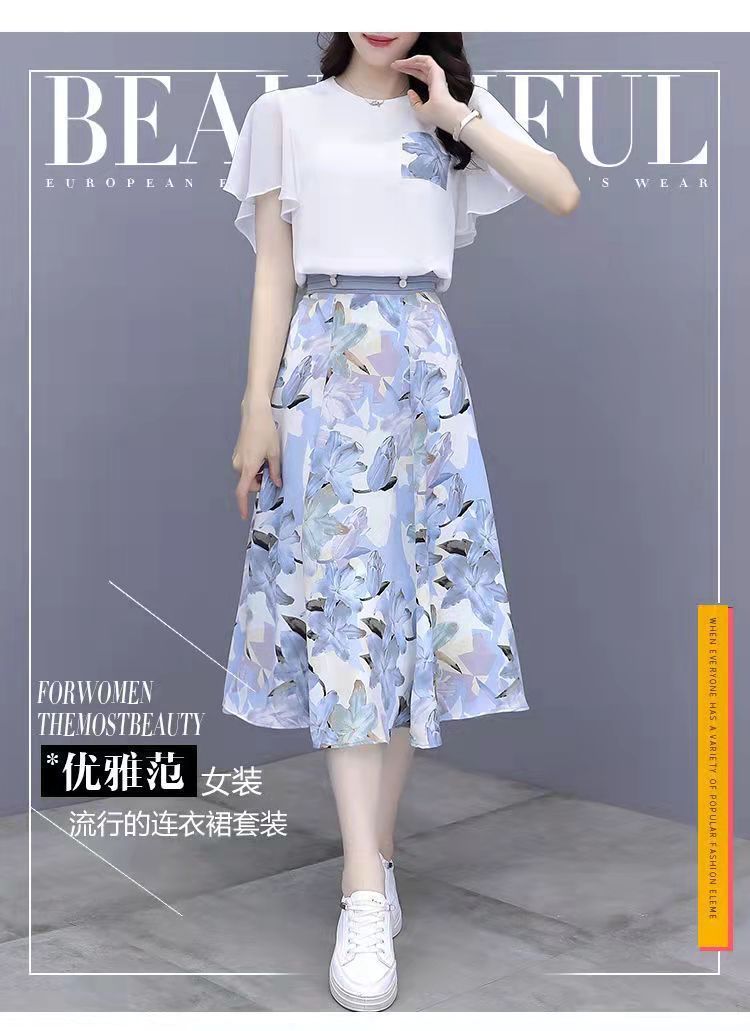 2025년 여름 여성을 위한 크로스보더 쉬폰 드레스 패셔너블하고 슬림하며 인기 있는 꽃무늬 스커트 투피스 세트스토어 가기
