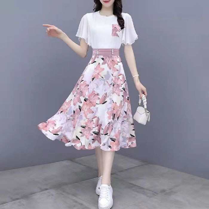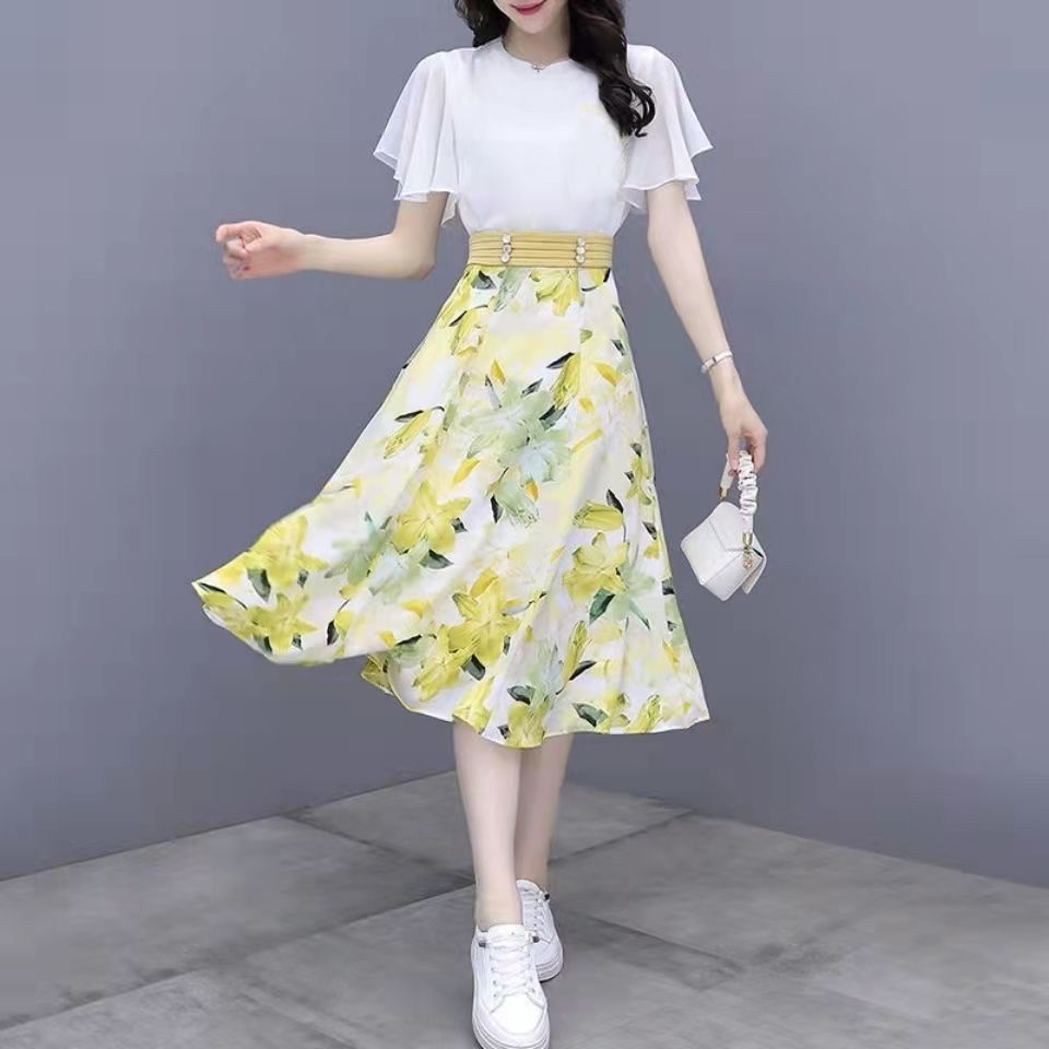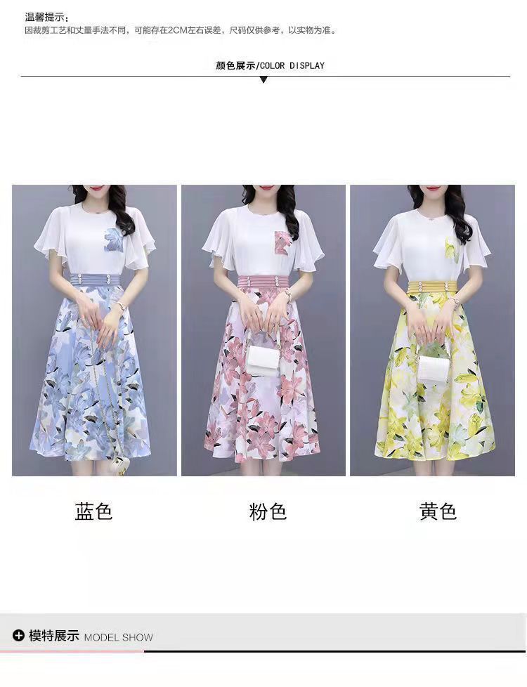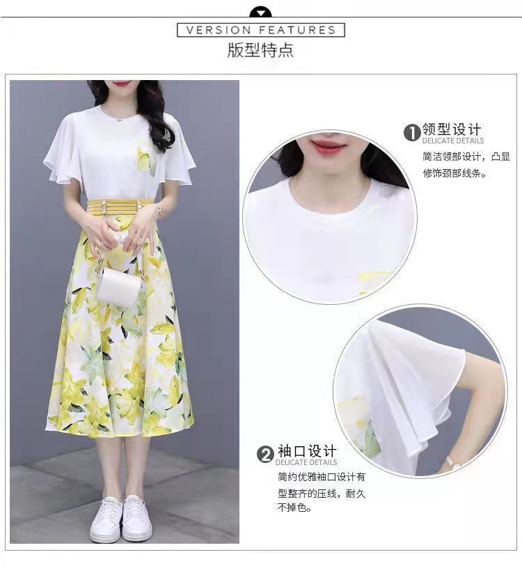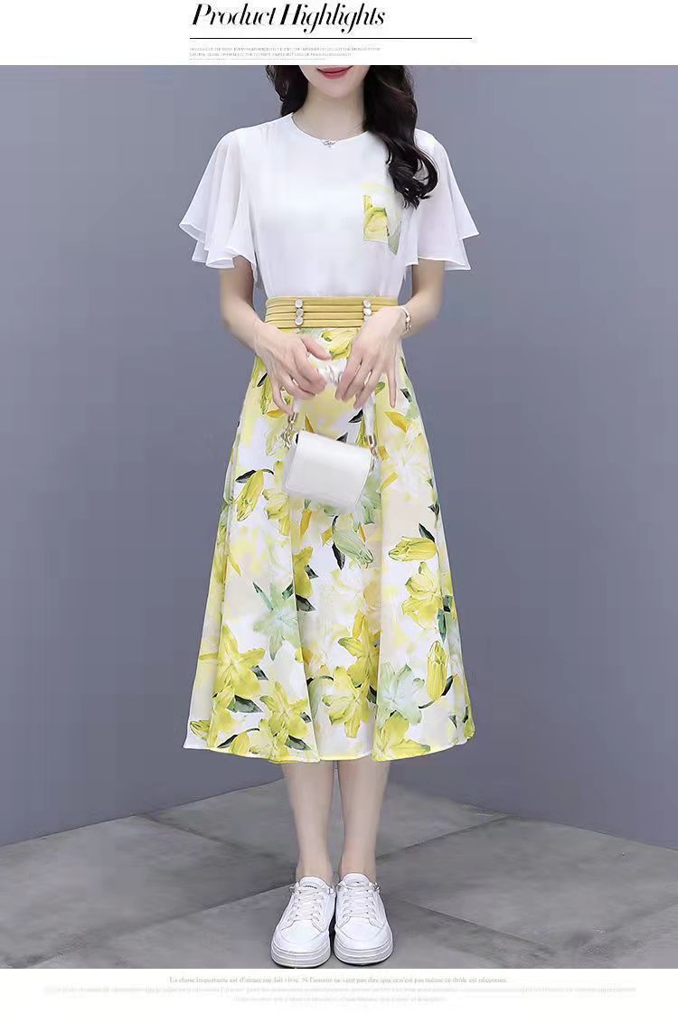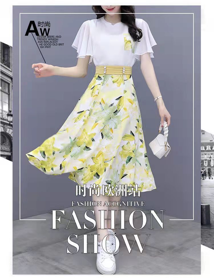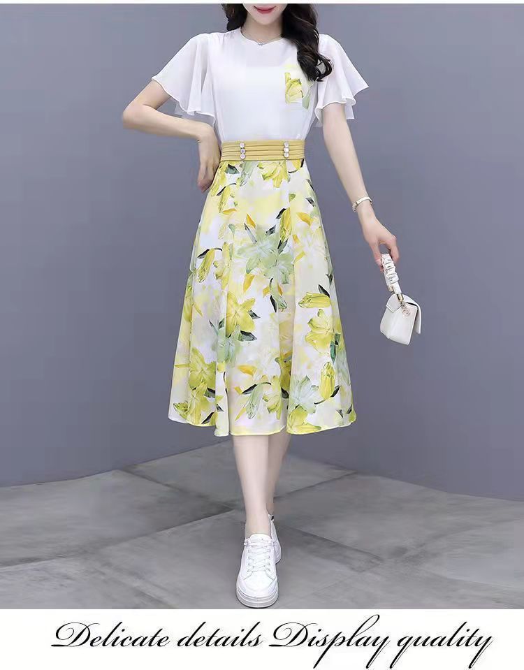 2025년 여름 여성을 위한 크로스보더 쉬폰 드레스 패셔너블하고 슬림하며 인기 있는 꽃무늬 스커트 투피스 세트스토어 가기