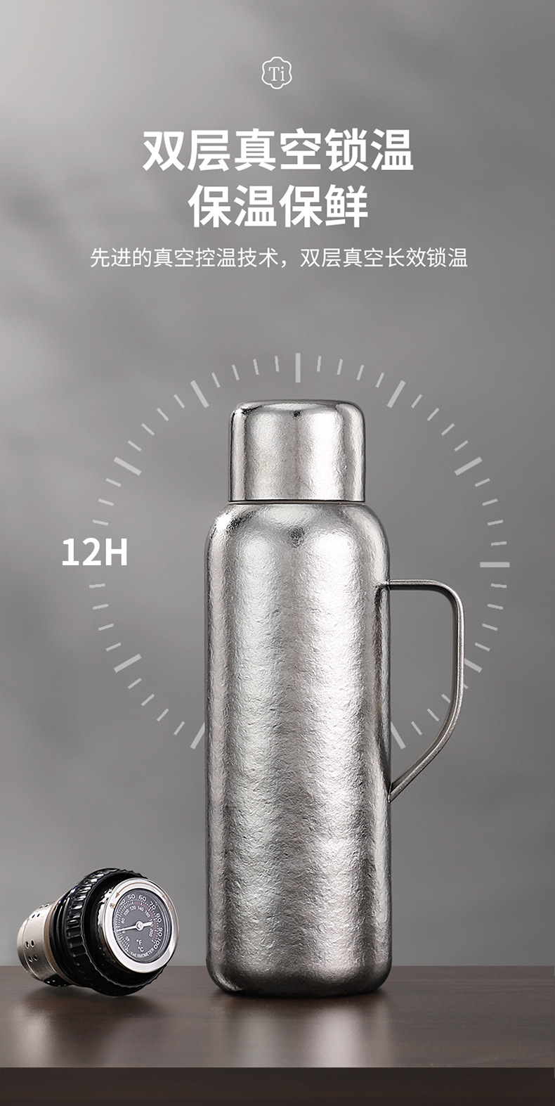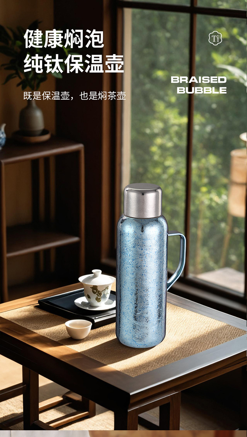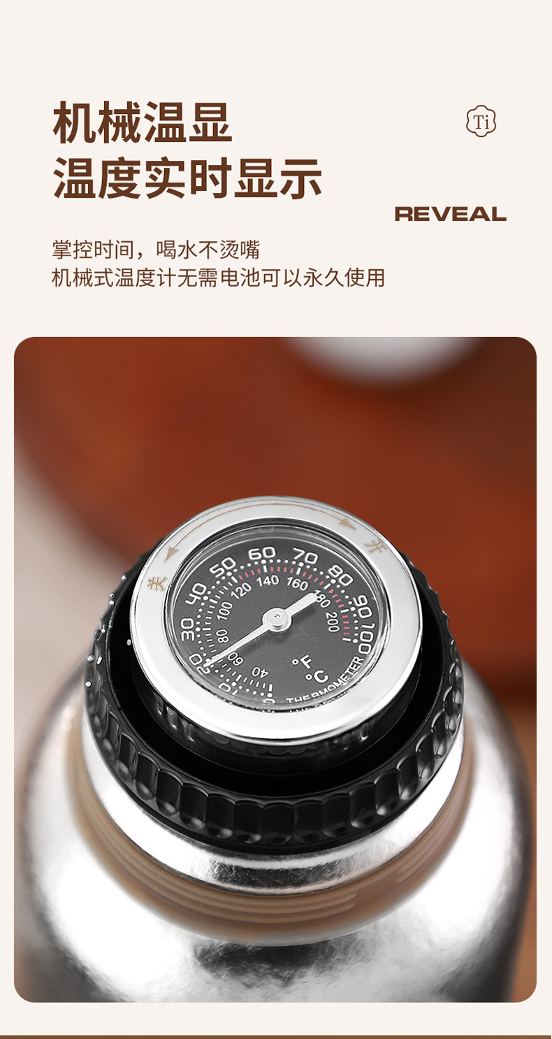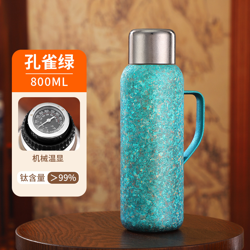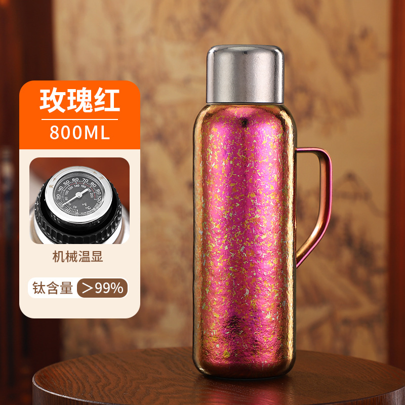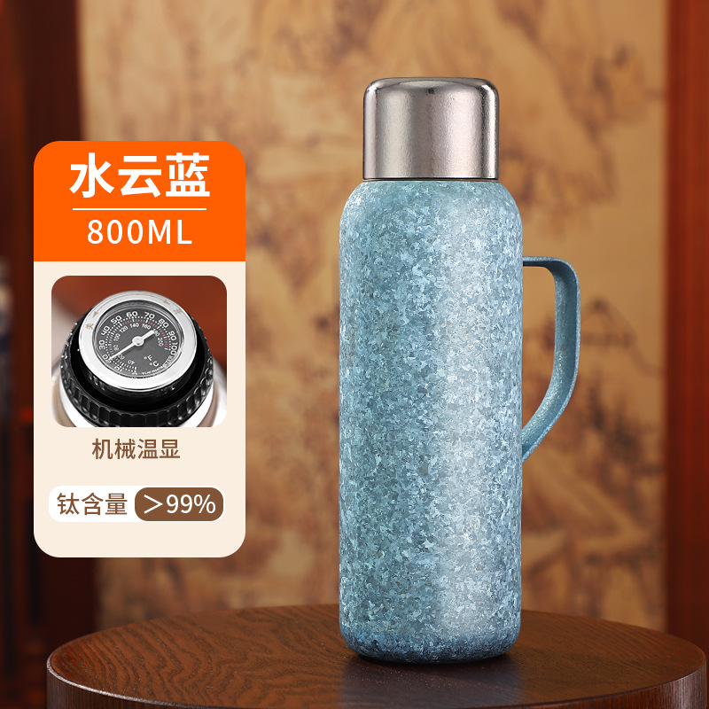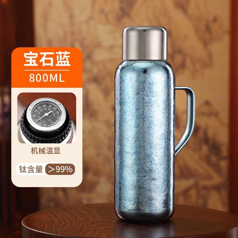 순수한 티타늄 열 보존 냄비 대용량 찐 주전자 휴대용 냄비 높은 색상 가치 가정용 야외 휴대용 티타늄 주전자 기계적 온도 디스플레이스토어 가기