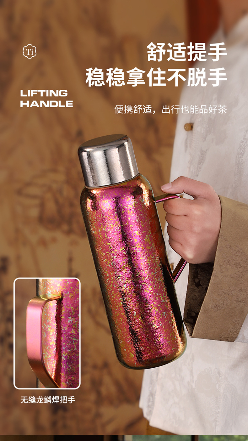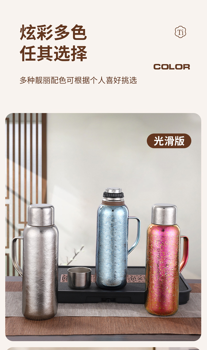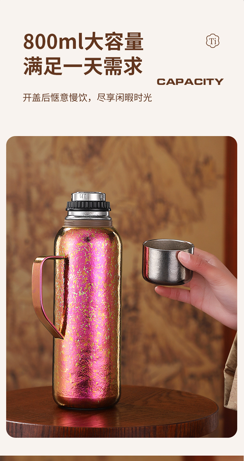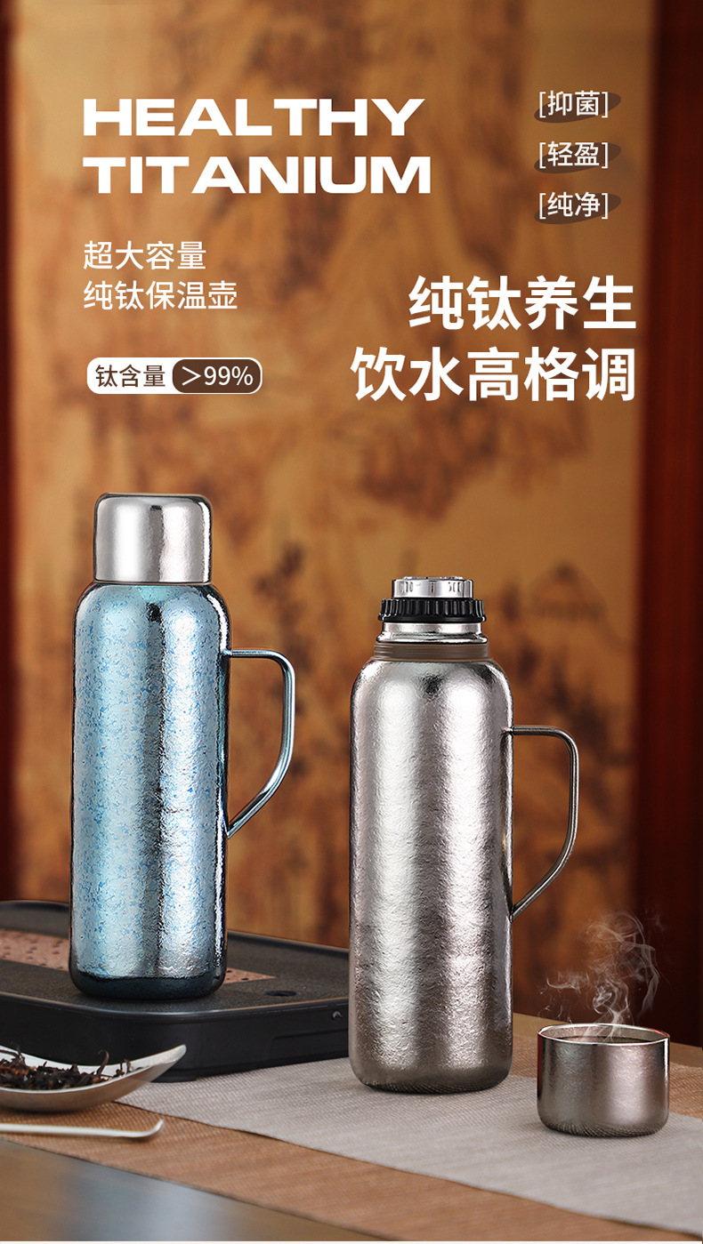 순수한 티타늄 열 보존 냄비 대용량 찐 주전자 휴대용 냄비 높은 색상 가치 가정용 야외 휴대용 티타늄 주전자 기계적 온도 디스플레이