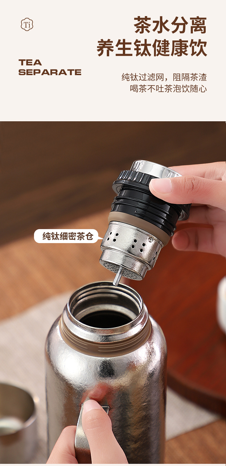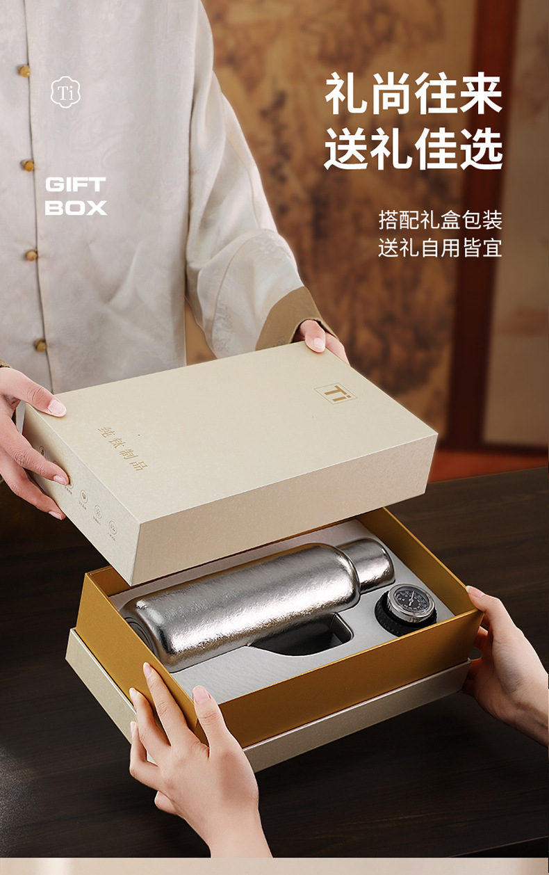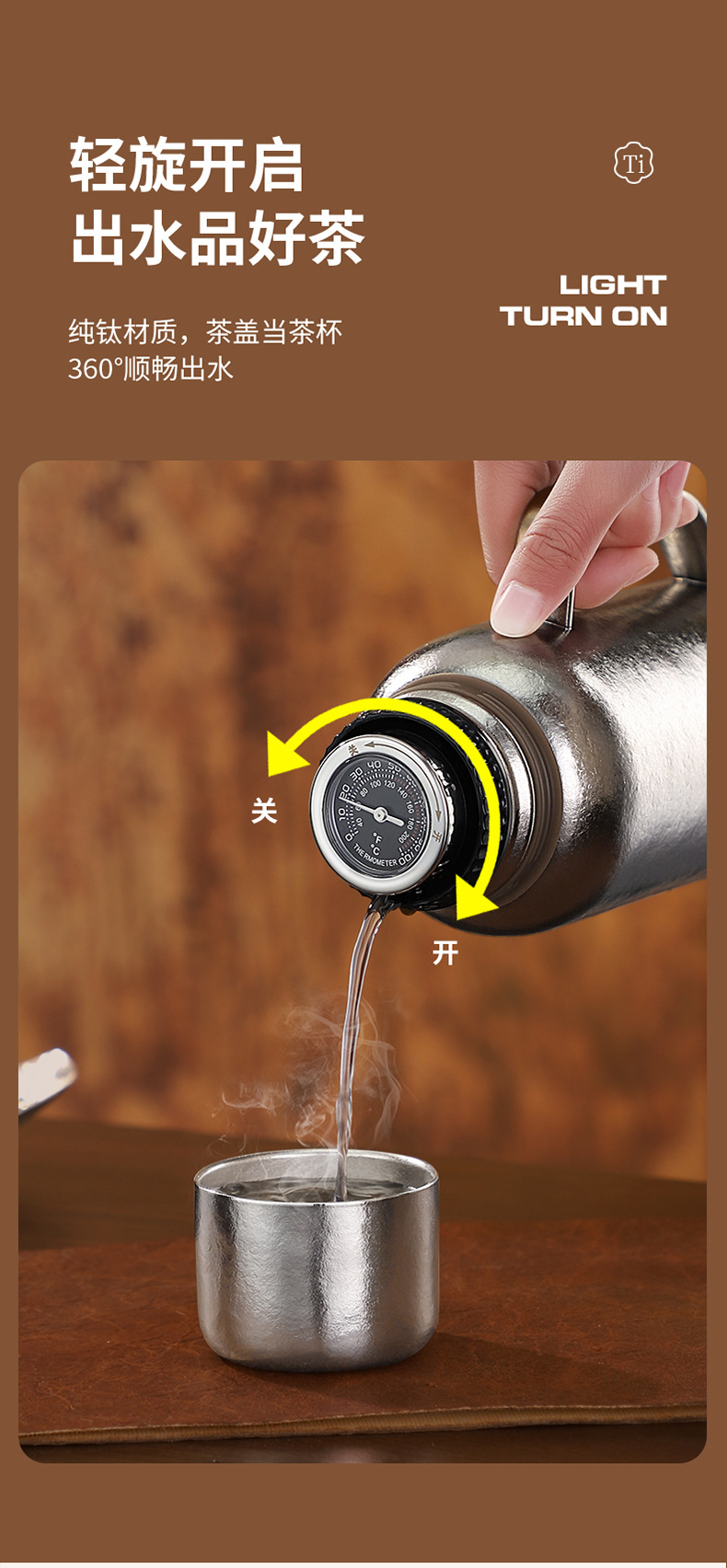 순수한 티타늄 열 보존 냄비 대용량 찐 주전자 휴대용 냄비 높은 색상 가치 가정용 야외 휴대용 티타늄 주전자 기계적 온도 디스플레이