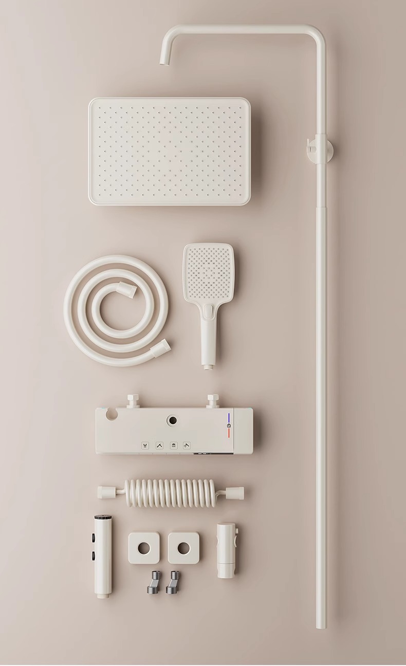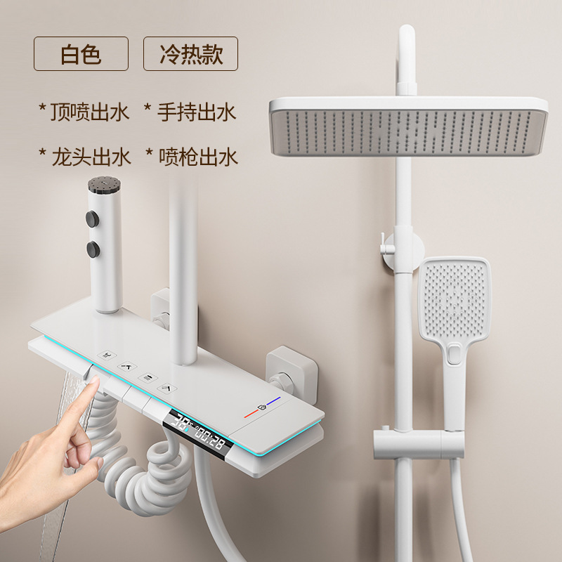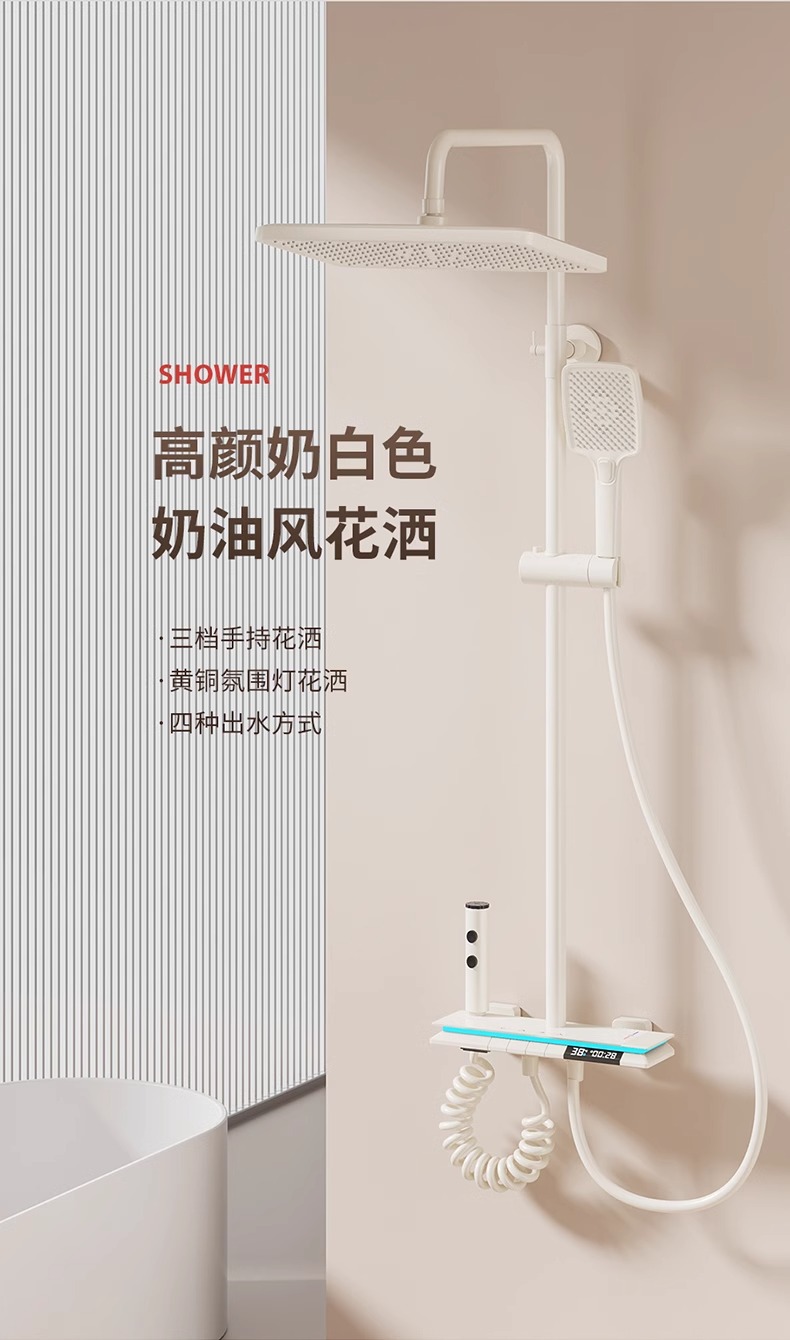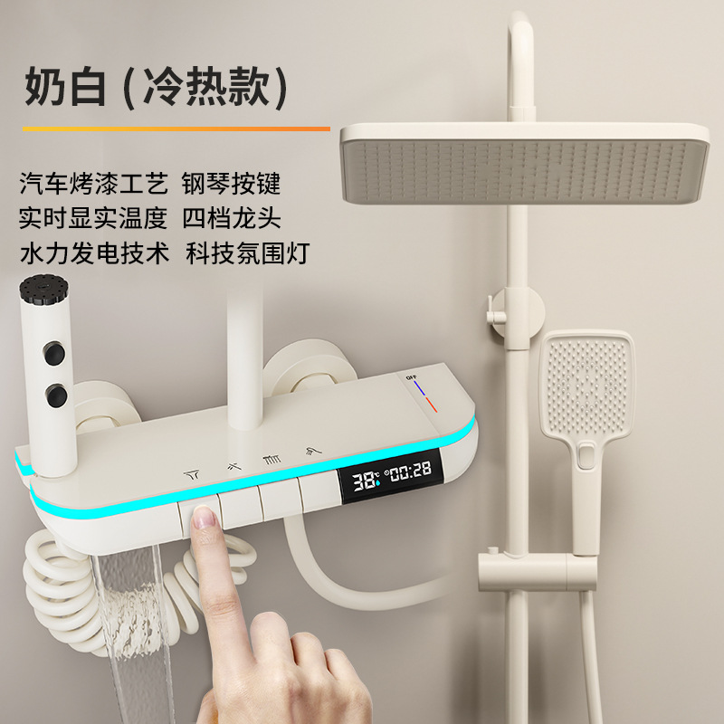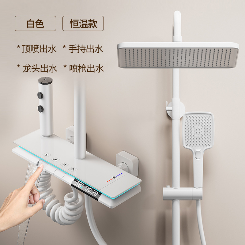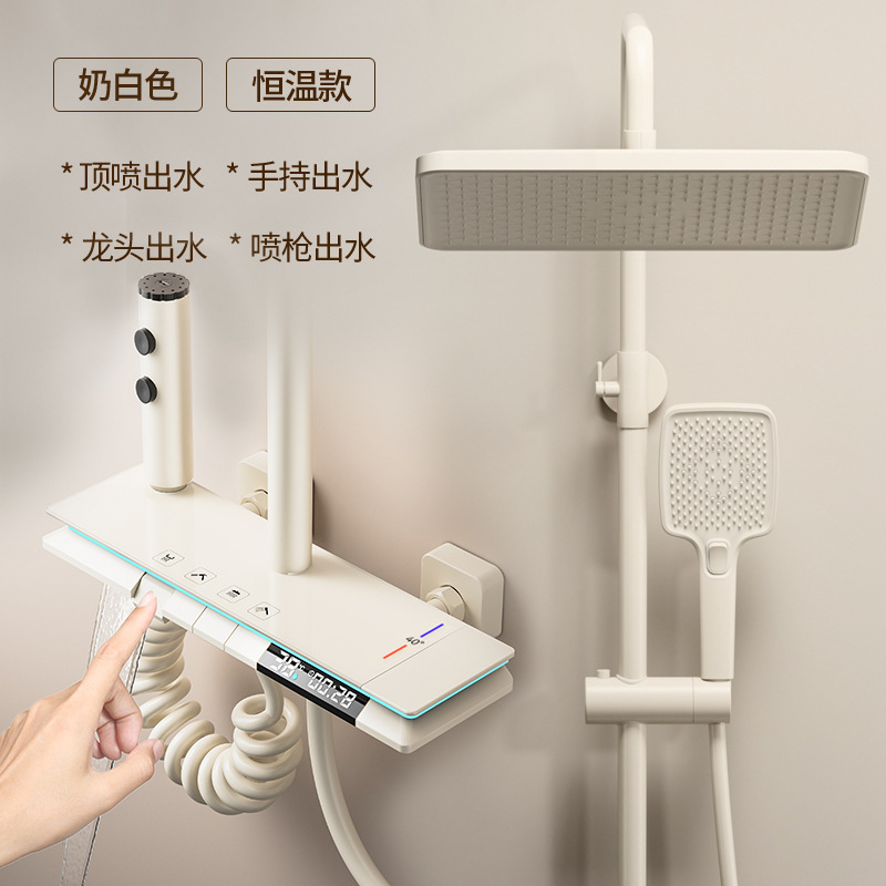 크림 스타일 흰색 항온 샤워 세트 샤워 욕실 홈 피아노 키 레인 샤워기 꽃 샤워 헤드 스프레이 노즐