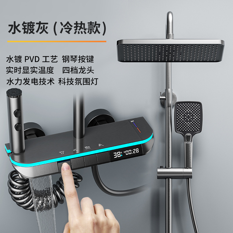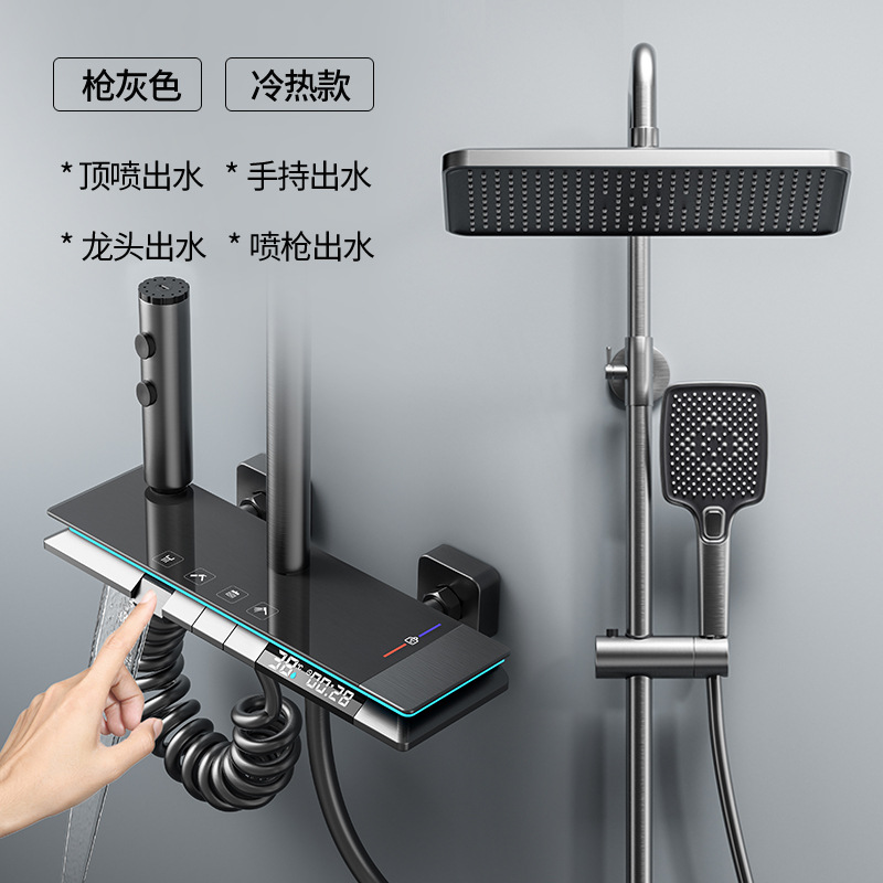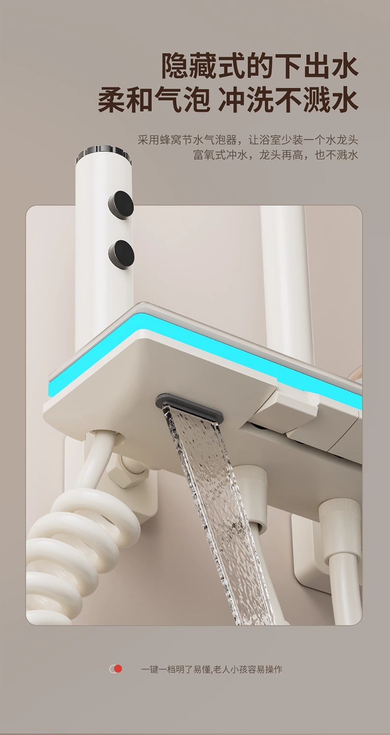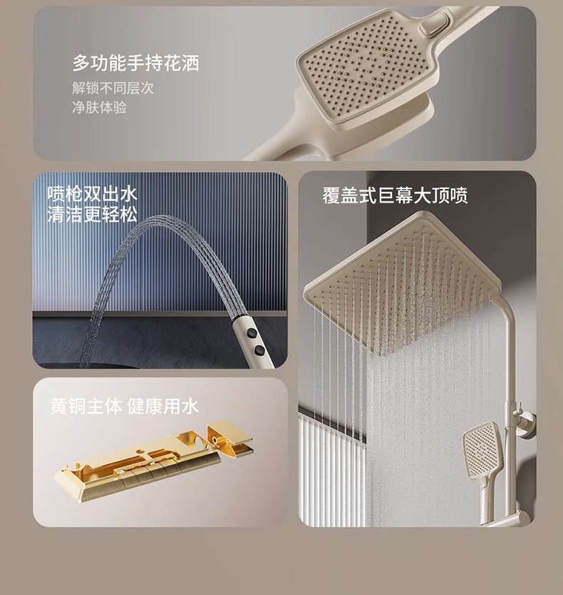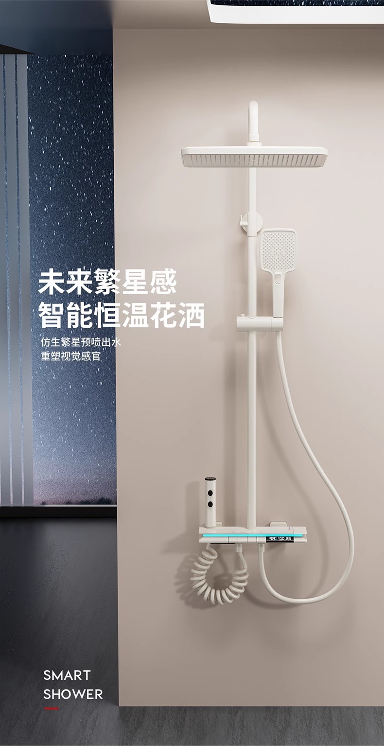 크림 스타일 흰색 항온 샤워 세트 샤워 욕실 홈 피아노 키 레인 샤워기 꽃 샤워 헤드 스프레이 노즐
