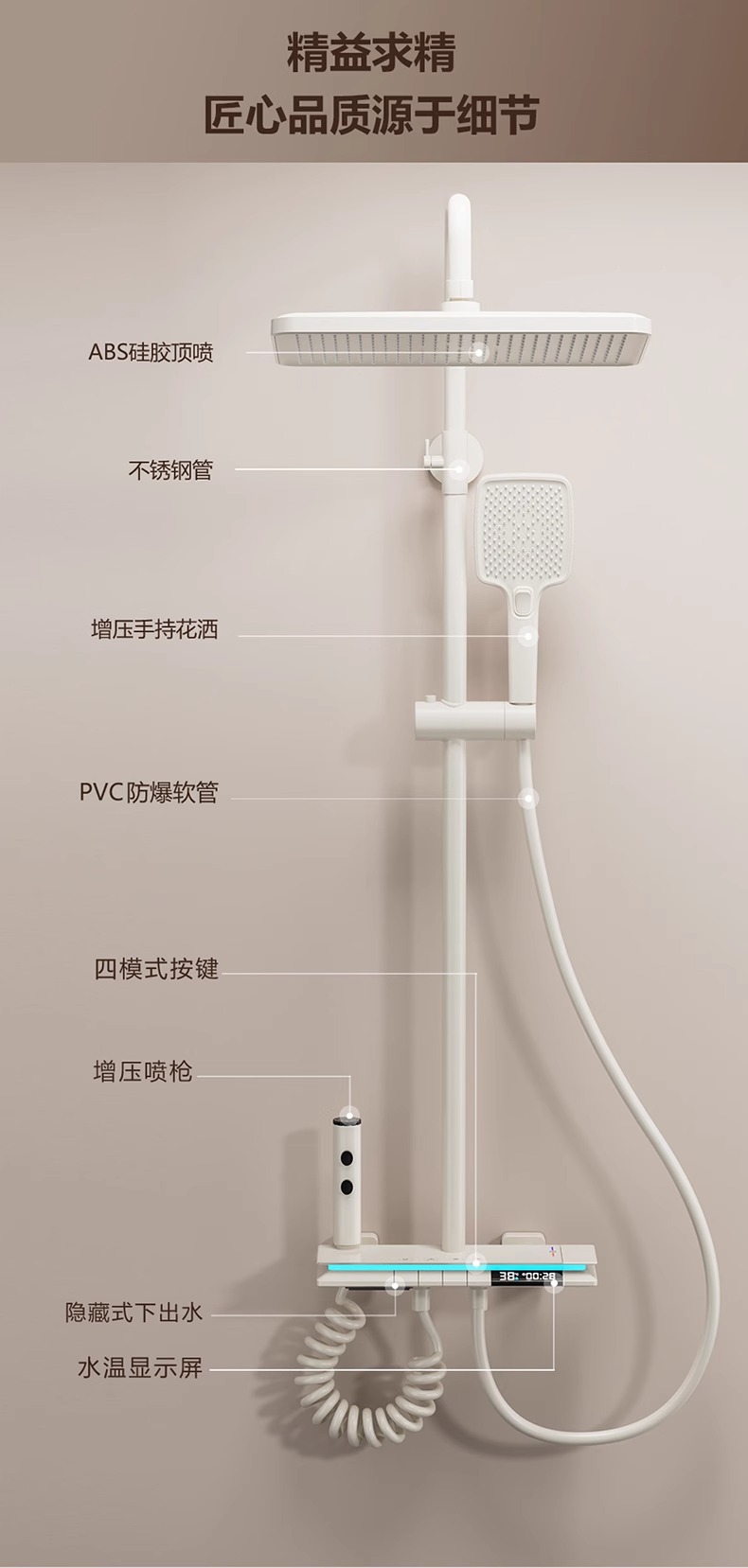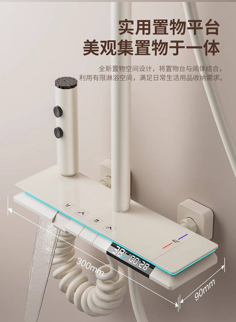 크림 스타일 흰색 항온 샤워 세트 샤워 욕실 홈 피아노 키 레인 샤워기 꽃 샤워 헤드 스프레이 노즐스토어 가기