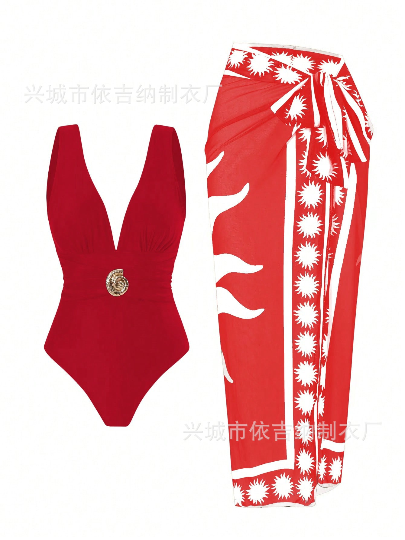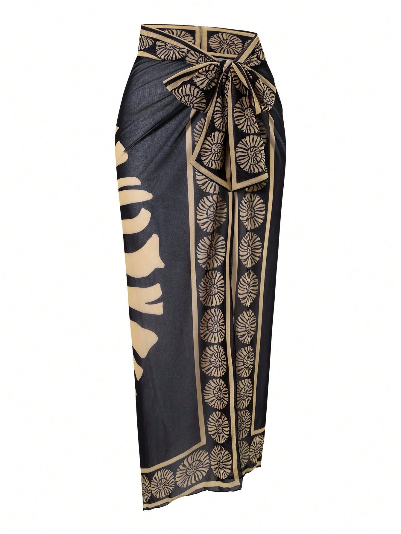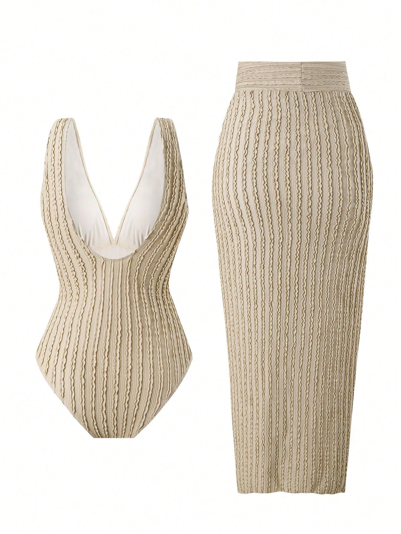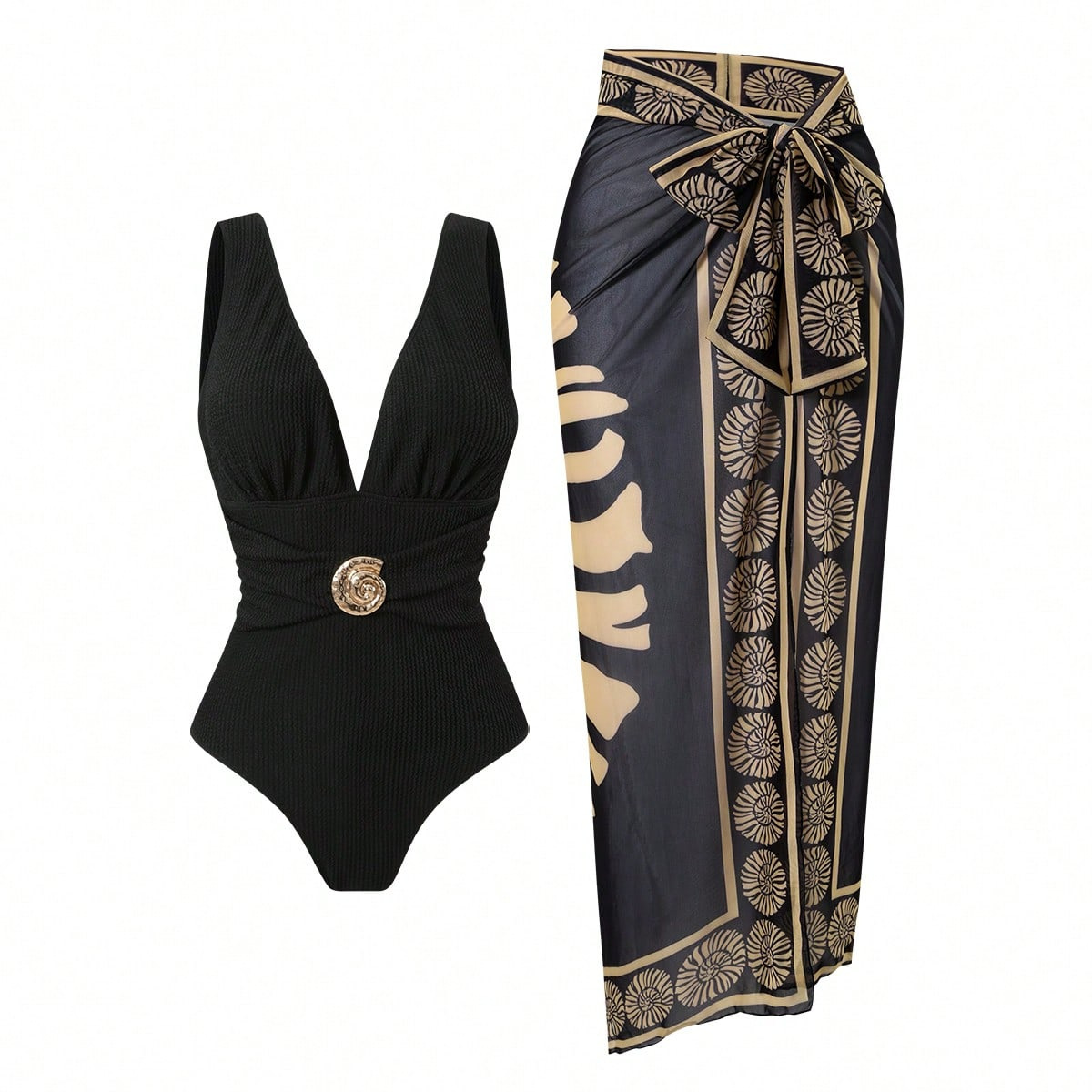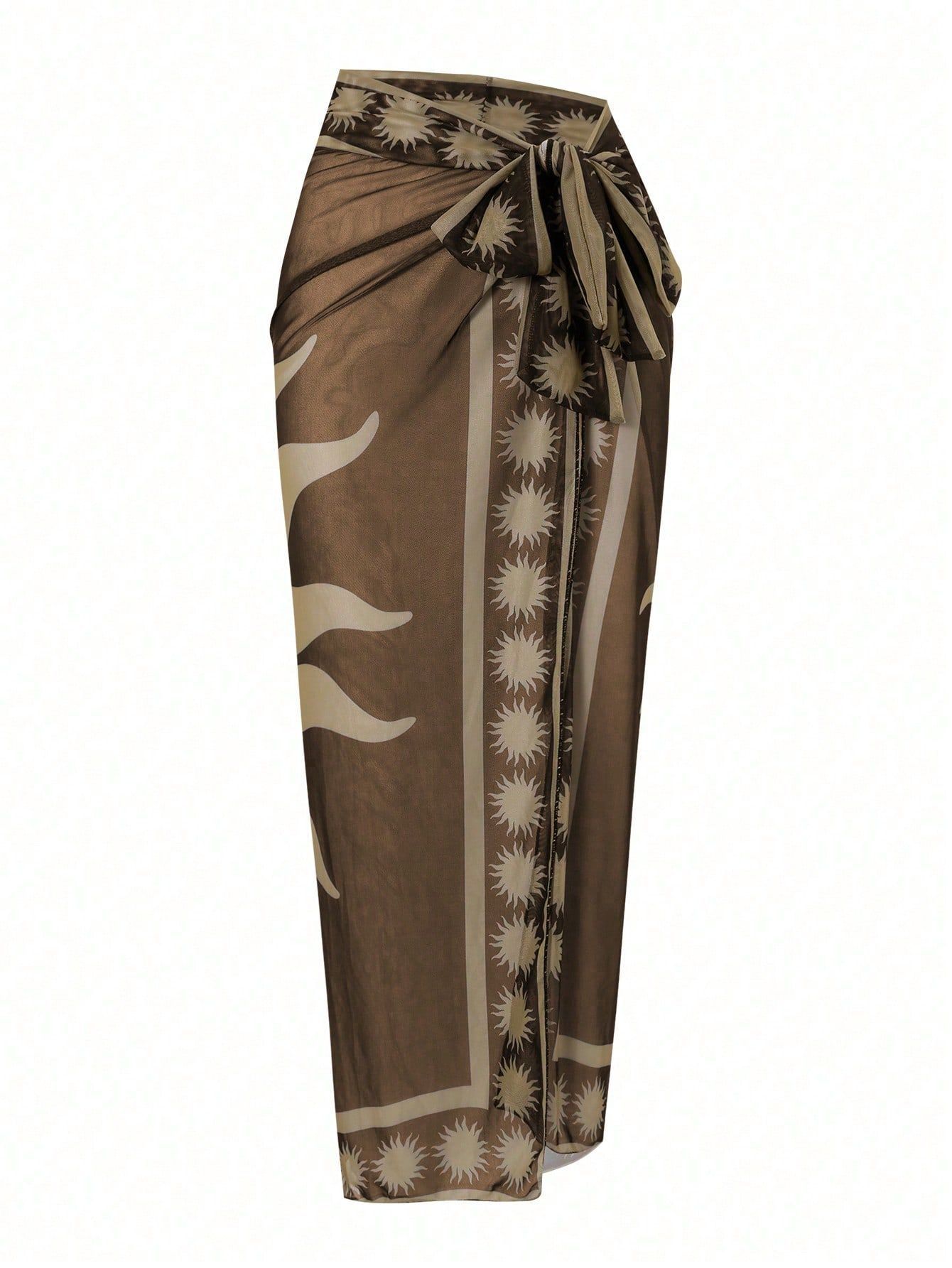 2025 Amazon 새로운 원피스 딥 V 섹시한 수영복 프렌치 레트로 프린트 온천 리조트 비치 스커트 슈트