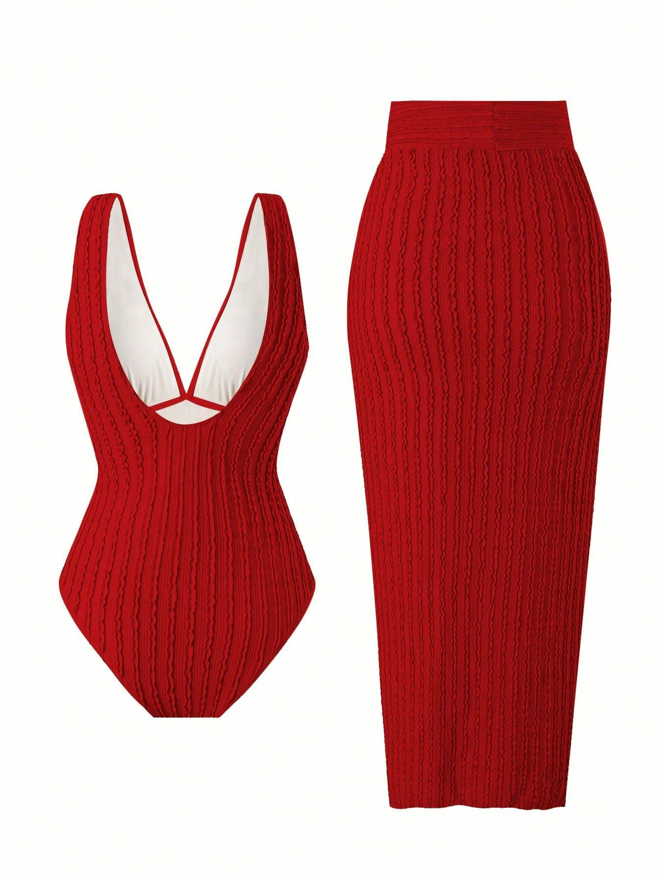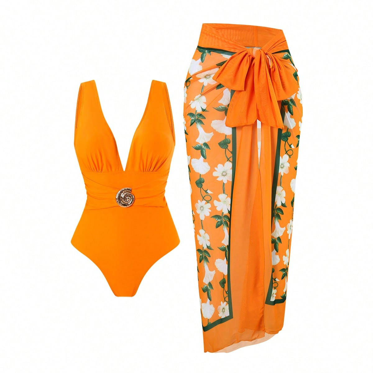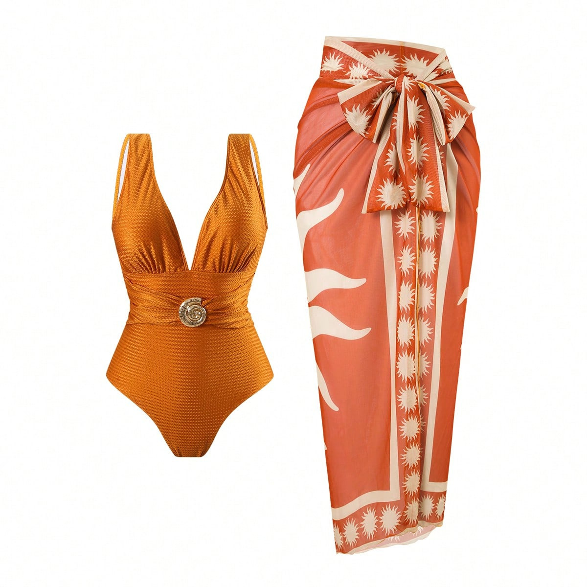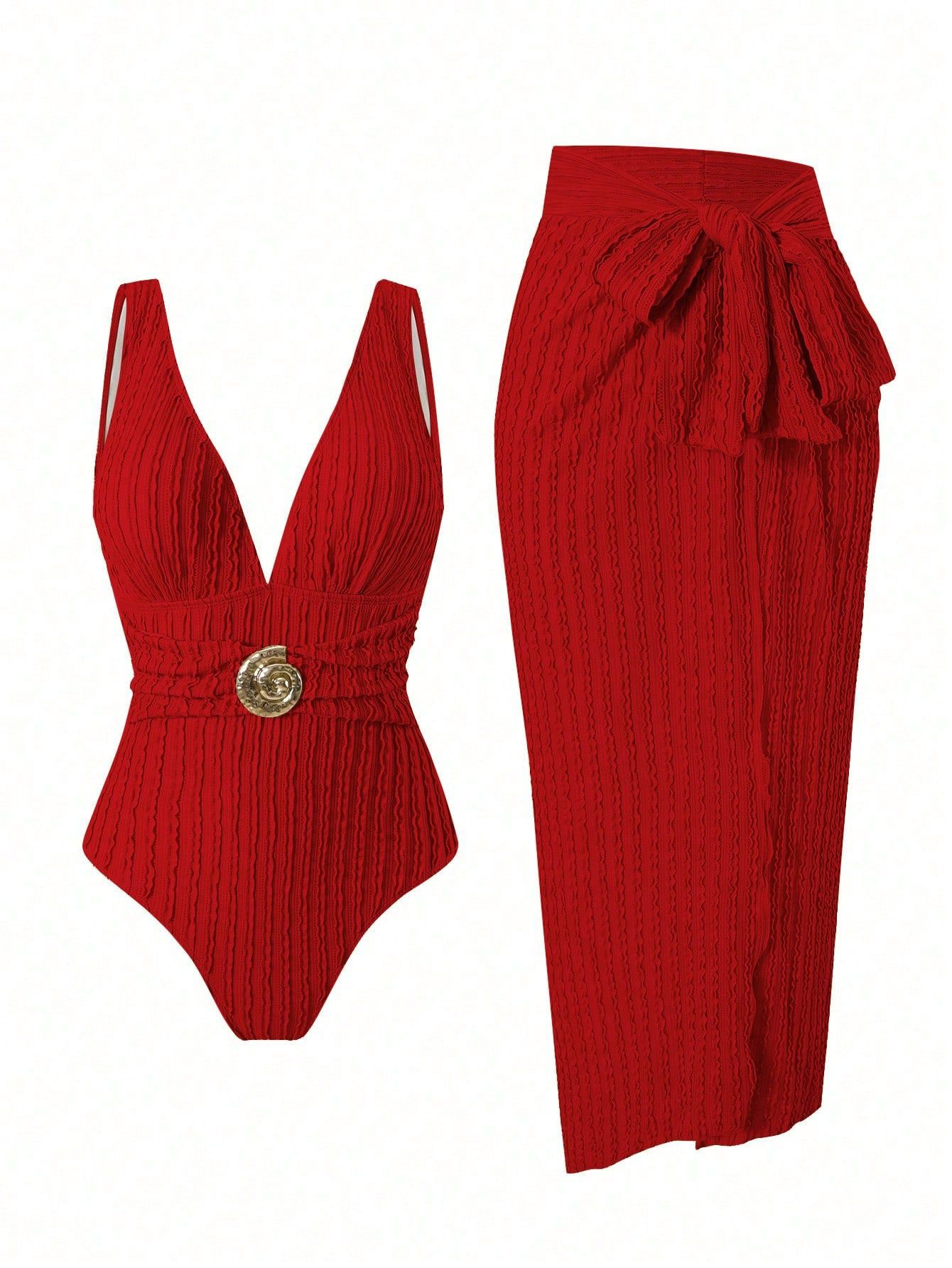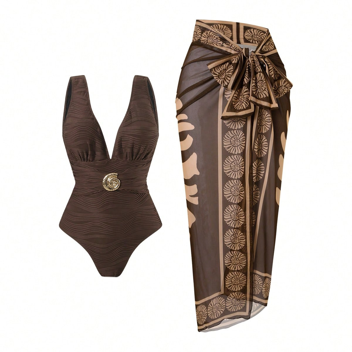 2025 Amazon 새로운 원피스 딥 V 섹시한 수영복 프렌치 레트로 프린트 온천 리조트 비치 스커트 슈트
